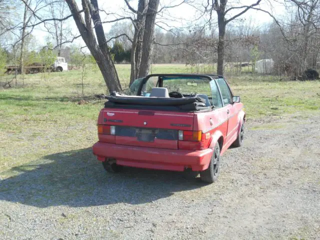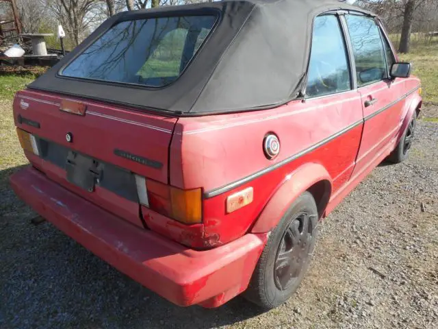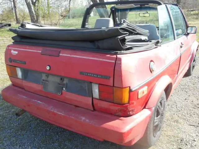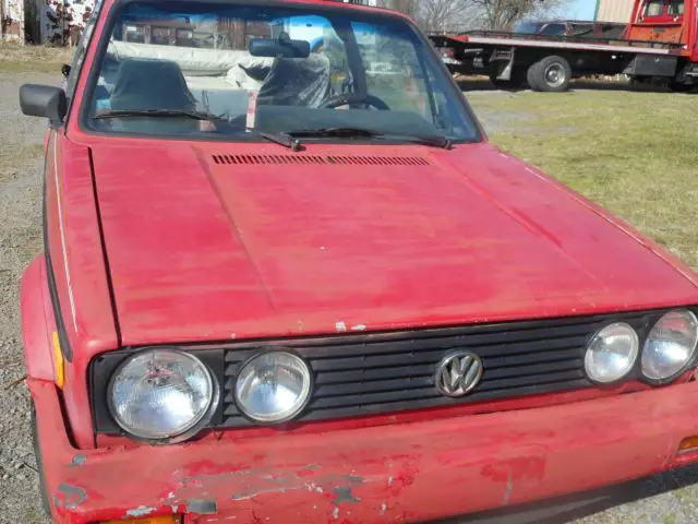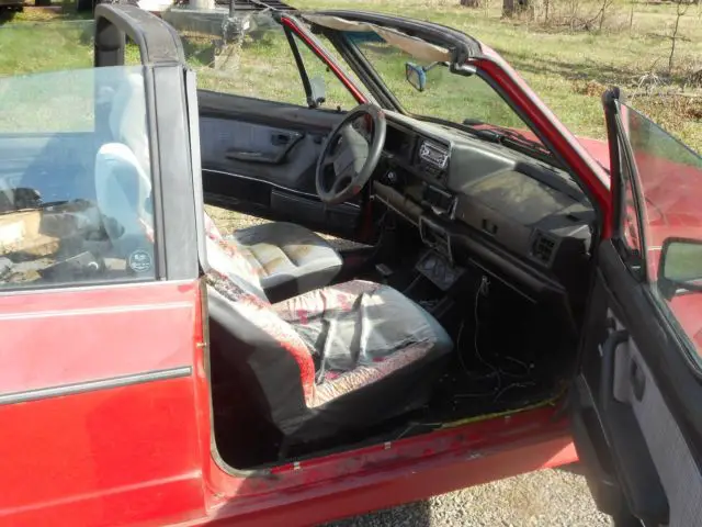 For sale is a 1988 VW Karmann Convertible (great restoration project) that has been sitting for a while.Title is clear.No warranties are expressed or implied.Keys are missing.Car appears to be complete with minor damage and somemissing parts. Right door does not open from outside. I was told engine will run, but I have not tried to start car. I was told reverse is bad.As shownin picture, there is a dent on right rear body panel.Please look at pictures and ask questions before you bid.