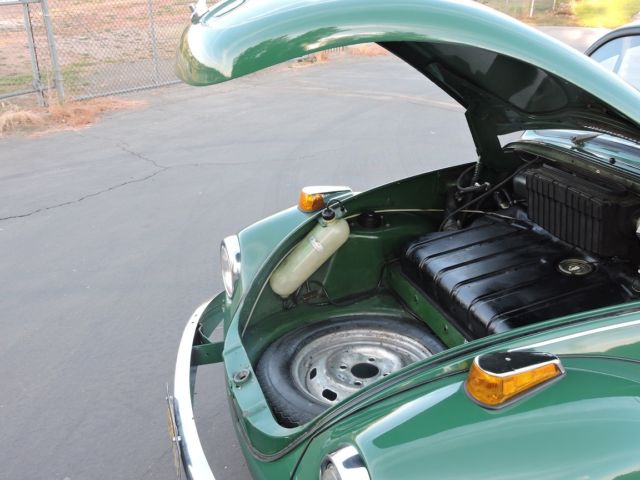The multiple year restoration started with a rust free complete, running car. Every section, top-to-bottom has been completely restored or replaced. There are too many new parts to list. The 1600cc engine has been completely rebuilt and has a new carburetor, the 12 volt system has a new distributor, new coil, new wiring and all new seals. The engine starts at the touch of the key every time and delivers good power off the line! There is no seepage or signs of unusual grime under the car. The brakes have been totally re-done with all new parts and assemblies. The wheels have been restored, with new chrome trim, center caps, and new tires installed. The body and paint was completed in a beautiful, correct, green and could potentially win at any VW show. The roof rack is brand new, with real wood slats.The interior is all redone and new. The new carpet has been installed, plush seats with multiple adjustments (I am 6'2'' and I fit with room to spare. These seats are much more comfortable on road then 67 low backs), stereo has been reworked with amplifier and AUX input, the gauges and dash lights are in complete working order and work as they should.