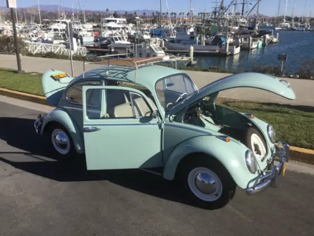 This is one gorgeous VW. Professionally restored a couple years ago by Vdub Classics of Ventura ca. This car has approximately 4000 miles on a brand new engine and transmission and drives beautifully. It was converted over to a 12v electrical system and a larger dual port 1600cc engine which provides plenty of pep and makes it a joy to drive. Steering, brakes, etc are excellent and near new tires as well. This is a beautiful show piece that would do well at any car show and drives every bit as good as it looks, just turn the key and go! New TMI interior, fresh re paint in its original Bahama blue, all new rubber window, door, and body seals, good glass, rear pop out side windows, upgraded stereo, little to no rust found on this car. This is an excellent example Tastefully restored to near original look with some nice mechanical upgrades to improve drivability. Please come see in person if at all possible, you won’t be disappointed.