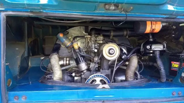 Originally 6 volt, it was upgraded to a 12 volt electrical system approx 30 yrs ago including battery, lights, charging system, etc. The 6 volt flywheel/starter was retained with a large ceramic resistor in-line to limit the cranking speed during starting. New battery just installed. Original ignition switch failed and was replaced with an aftermarket switch about 5 yrs ago. Door locks all use the original VW key. Original gas gauge and float replaced by 12 volt aftermarket, but originals are included in the spare parts. An electric squirrel cage fan was added in the heating system with a switch under the dash to help bring hot air forward and distribute it on ski trips.