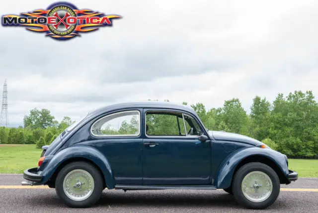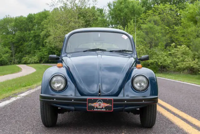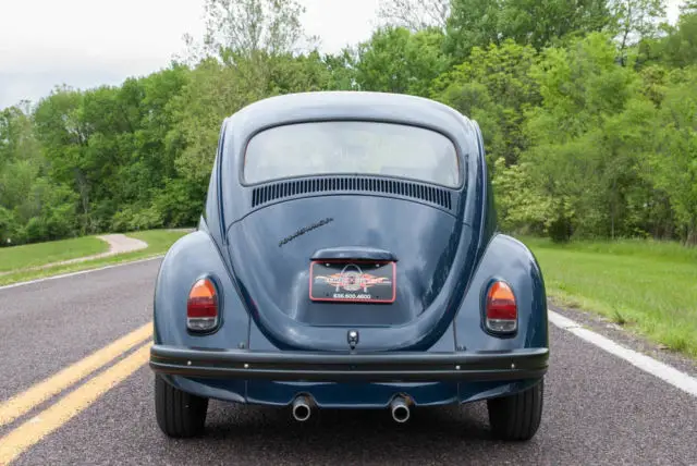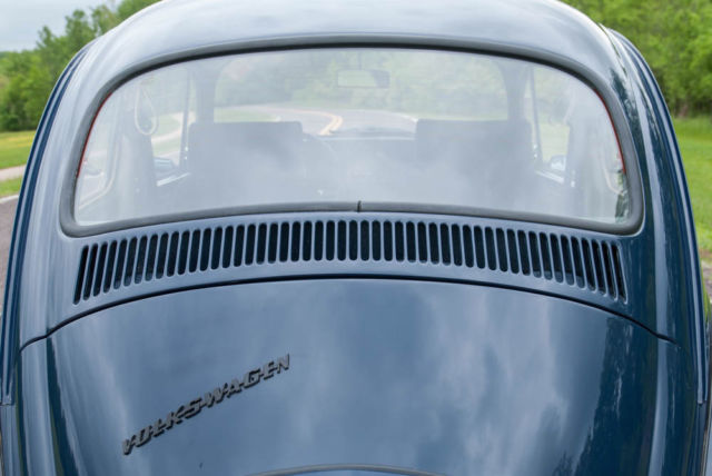 Finished in a Colbalt Blue, this Beetle shows well with only very minor imperfections visible upon close inspection. The headlights and tail lights are in excellent condition and perform their intended function. All the trim is present and complete (sporting a period correct “black-out” treatment). The side mirrors are Vitoloni which are highly desirable and in very good shape. The polished aluminum Centerline 15-inch wheels present well and add to the period look of the Bug.