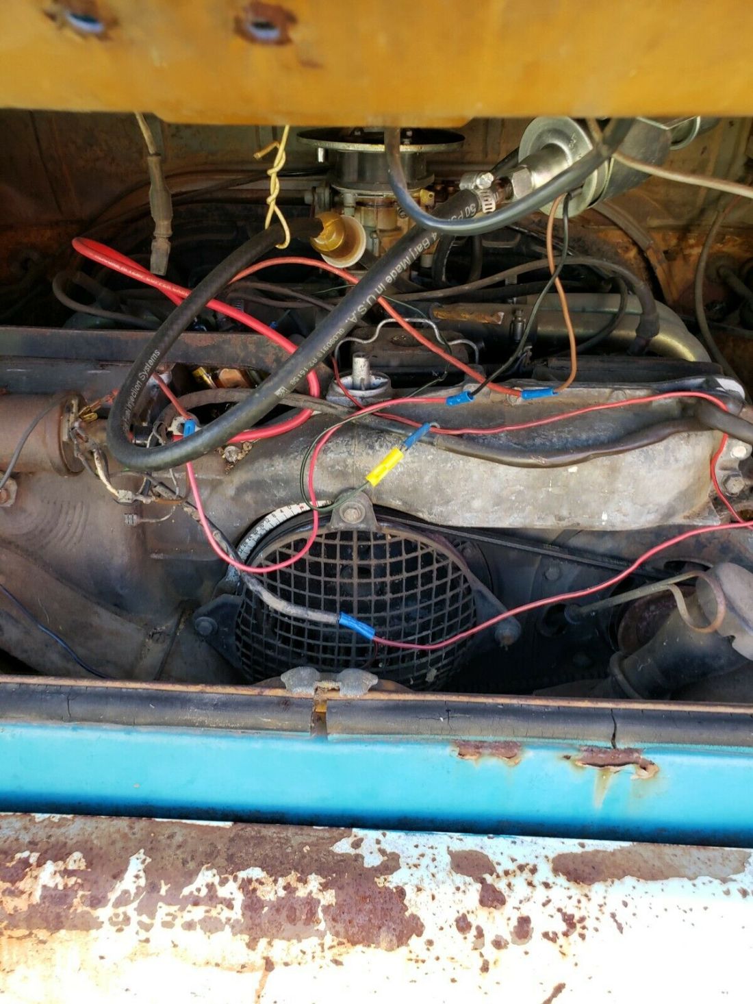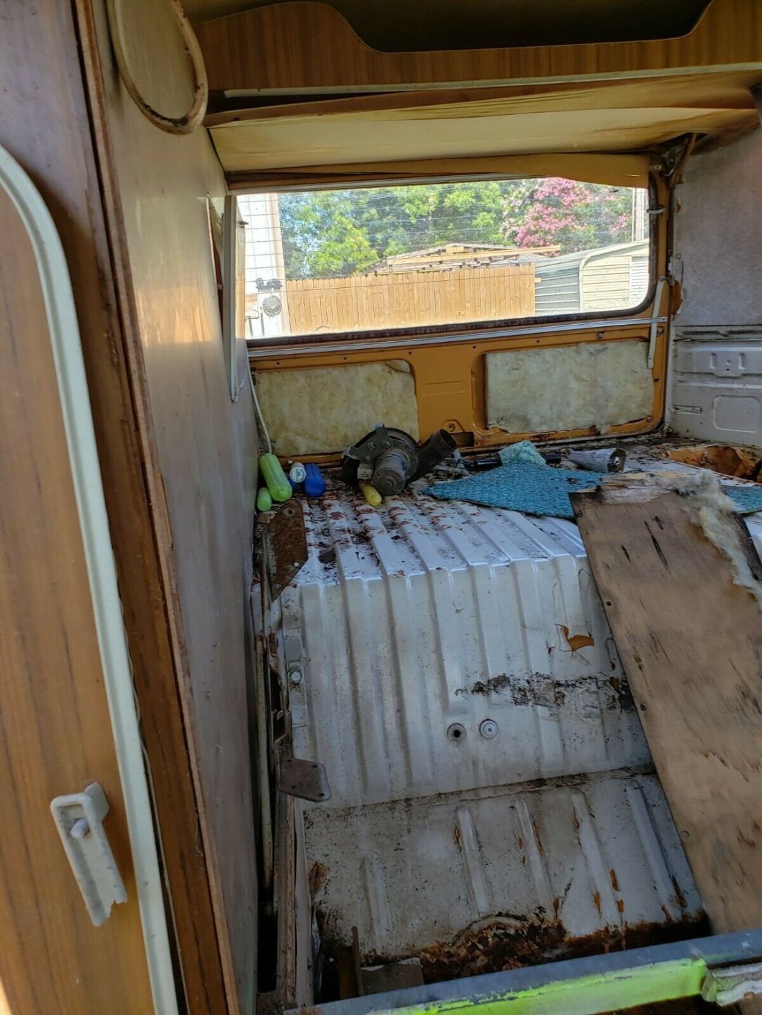 Exterior fair condition. Interior ruff condition. cloth and string all need to be replaced. top raise up and down easy. Some rust on the flow board and some hole in the camper part of the floor board. Engine starts and runs good. Drives out fair. Can be driven now. Tires need replacing. Brakes are good. Windows good rock peck on windshield. Doors open and close good the sliding door is especial easy to open and close.