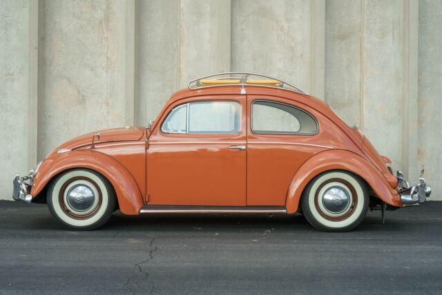 This example was built on September 18, 1957, and it left the Wolfsburg, West Germany factory on September 20, 1957. It left the factory with the following options six-volt electrical system, whitewall tires, Brown-Grey leatherette upholstery and US-equipment. Its original destination was San Francisco, California.