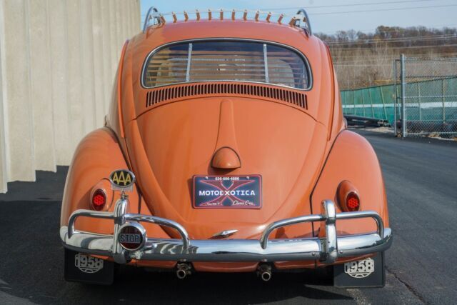 For 1958, the Beetle received a revised instrument panel and a larger rectangular rear window replaced the previous oval design.