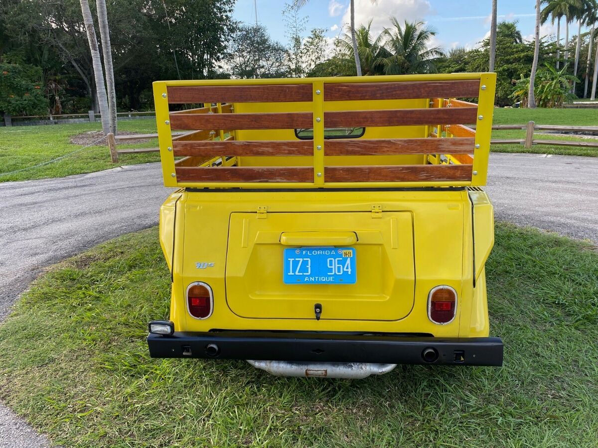 Based on the contemporary Type 181, the pickup was reportedly produced for the Mexican market in limited numbers. This example was refinished in its current shade of yellow under prior ownership and features a single-cab roof cover, a fold-up bed floor panel, and metal bed stakes with wood slats that were replaced under current ownership. Exterior details include black side curtains, black-painted bumpers, and driving lights.