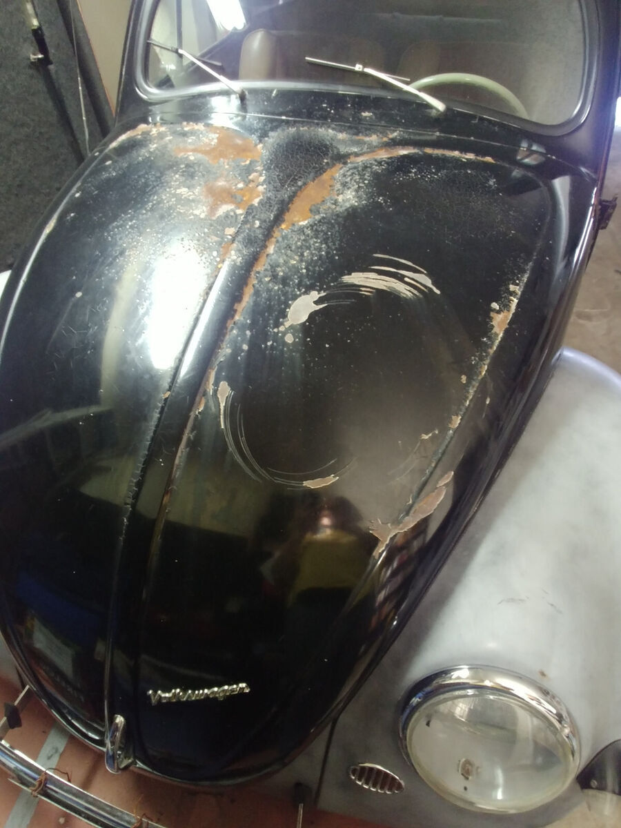Was a show car when I got it, but had a 2180 cc engine that was blown up and non-1955 fenders/lights, etc. I put the 1600 cc engine in, replaced fenders/lights, etc. with originals. Never got around to repainting it. The transmission was put in by the previous owner to go with the engine size, for racing. I no longer remember the details of that. So the car shifts a lot faster than a typical 1600 cc.