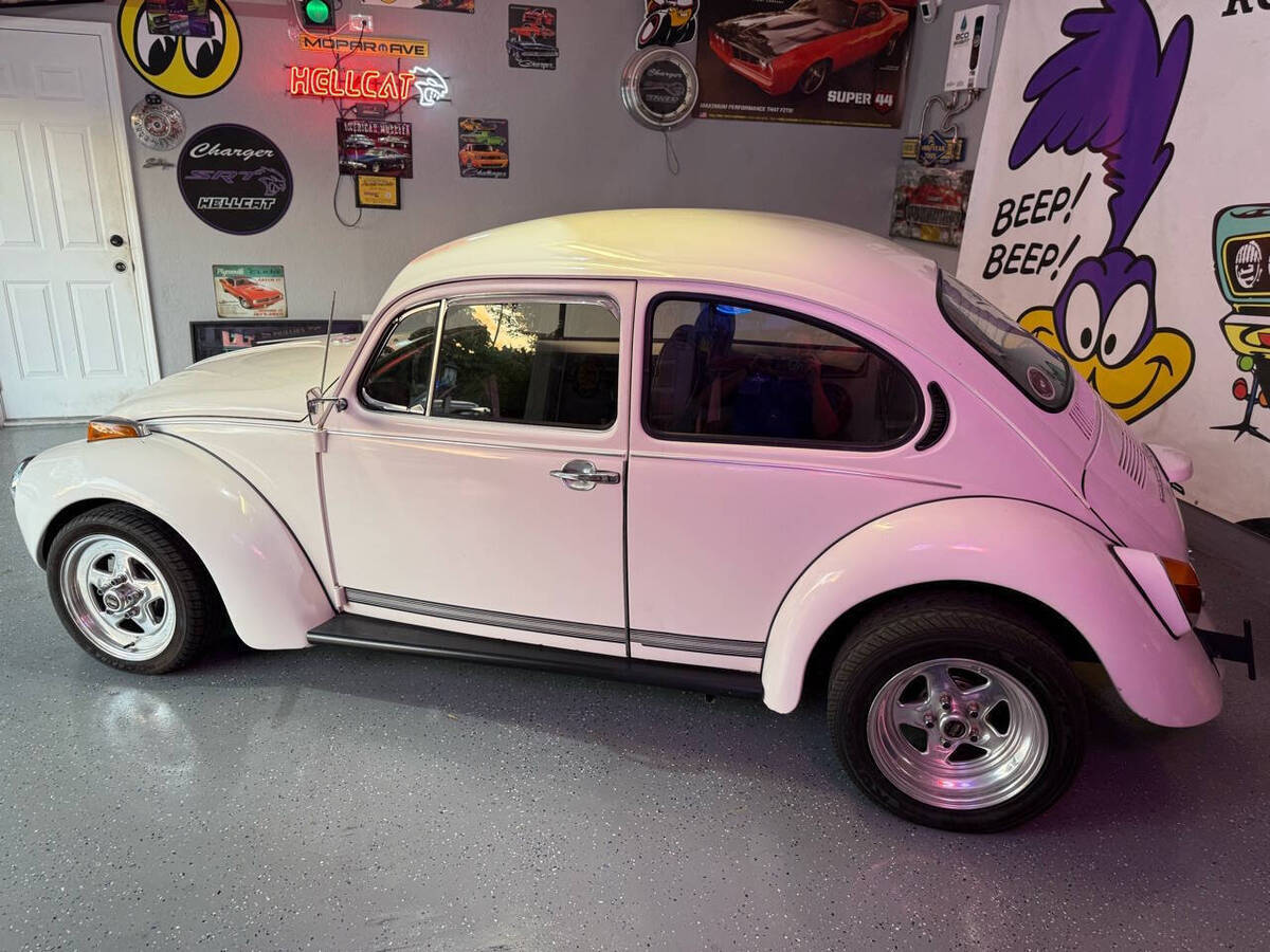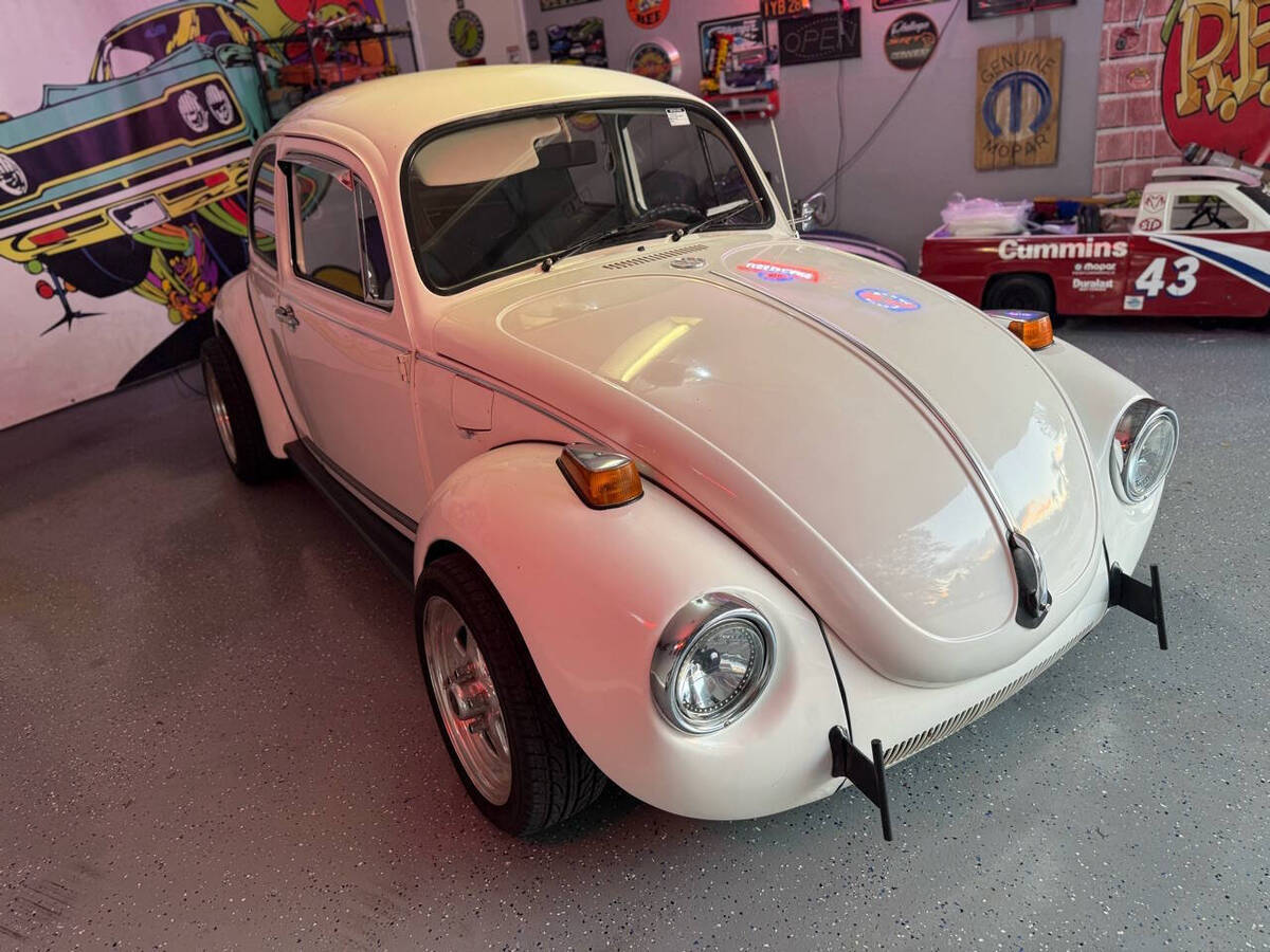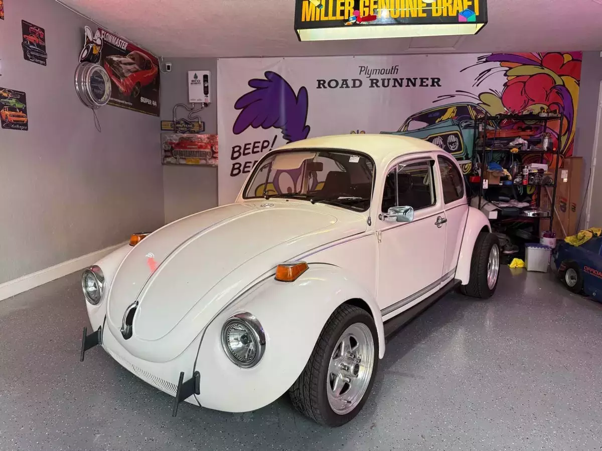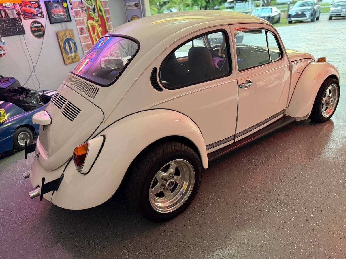 Flat 4-cylinder engine 4-speed manual transmission White exterior with Black interior Dual exhaust Modified suspension Engine dress-up accessories Black bumper T-bars Chrome trim Custom wheels Super Nice Solid Volkswagen!