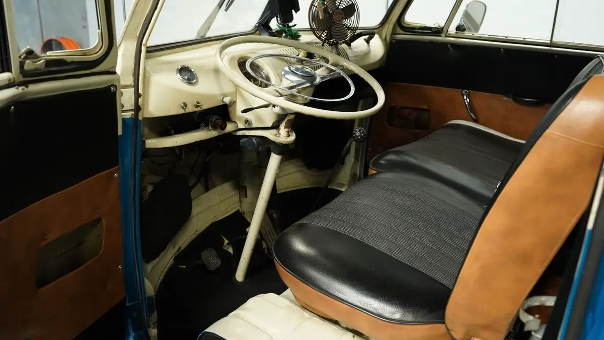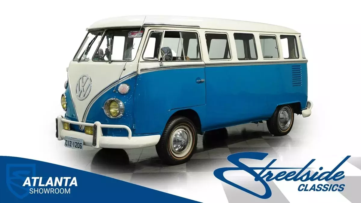Vehicle Original VIN : BH245923• 1600cc 4-cylinder Engine • 4-Speed Manual Transmission • Single-Barrel Carburetor • Independent Front Suspension • Independent Rear Suspension • VW Bus Transaxle • Four-Wheel Drum Brakes • Dual-to-Single Exhaust System • Bosch Coil • Two-Tone Blue and Cream Paint • 14-inch Steel Wheels in 185/70R14 Tires • 15 Windows • Split Windshield Design • Four-Door Configuration • Black/Brown Interior with Cream Accents • Bench Seats • Floor-Mounted Shifter • AM/FM/AUX RetroSound Stereo • Brazilian-Built Model
