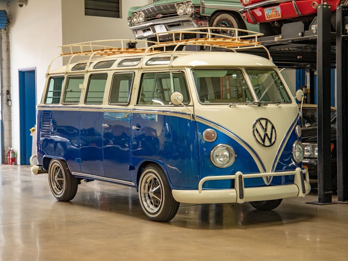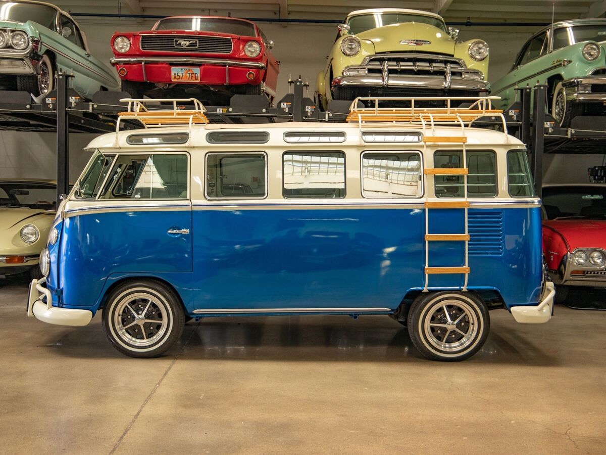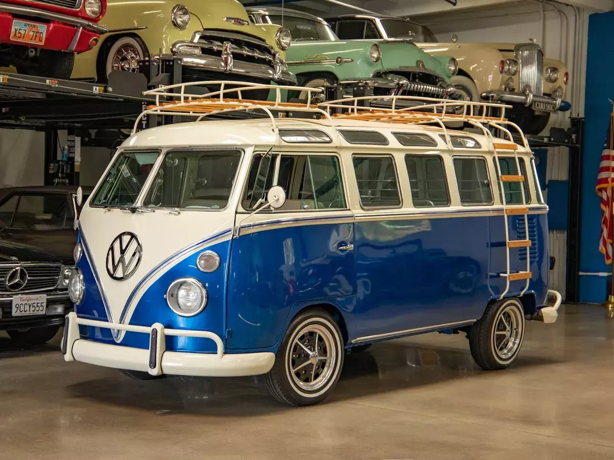 West Coast Classics are proud to present an attractively restored example of this 1970 Volkswagen conversion tribute 23 Window Deluxe Samba Microbus 1500cc air cooled 4 cylinder engine matched to a 4 speed manual transmission with skylight windows and cloth sunroof!The bus is finished in two-tone colors with of Blue with an Ivory White top and a matching interior. It features safari front windows, two sets of pop-out windows on each side, a full center retractable ragtop sunroof, double cargo side doors and seating for nine. The rear wooden roof rack provides for additional storage. a 1500cc 4-cylinder engine mated to a 4-speed manual transmission, the complete drivetrain has been rebuilt, including the engine, transmission, and transaxle. The rebuilt engine with a new carburetor was installed and a new distributor, ignition coil, spark plugs and wires. The suspension, steering and braking systems have also been rebuilt with new parts throughout. The electrical system was completely redone, from the wiring harness to the generator, voltage regulator and battery.This a highly desirable conversion tribute to a collectible Type 24 Bus (Deluxe 9 passenger Microbus). Most Deluxe Microbuses were ordered as Samba models (a $160 option) that included a sliding canvas sunroof flanked by 4 skylight windows on each side of the roof (that's a 23 window bus through model 1963 and a 21 window bus starting in model year 1964). The deluxe Microbus was Volkswagens top-of-the-line transporter.This iconic Type 24 Bus (Deluxe 9 passenger Microbus) were originally marketed for touring the Alps with small skylight windows embedded into the roof for added viewing capabilities and were manufactured with the highest trim level available which included trim strips along the beltline and a dash clock! Most Deluxe Microbuses were ordered as Samba models (a $160 option) that included a sliding canvas 'Golde' sunroof flanked by the 4 skylight windows on each side of the roof.The Type 2 was sold in many combinations. As a panel van without windows, a double-door panel with cargo doors on both sides, with a raised roof, with removable rear seats, as a flatbed pickup, crew cab pickup, Westfalia converted camper van (the ones with the pop-up roof and a stove), and the Samba. Also knows as the Sunroof Deluxe, this was the luxury model. It had more windows, designed to improve sightseeing for passengers in the back. It also had a massive fabric sunroof that opened up nearly the entire roof.When it comes to the Type 2, the number of windows is a huge part of it's attraction and status. Like having a numbers matching big block in a muscle car, more is better. The basic Kombi was an 11-window. The Deluxe got 15 panels. But the Samba ruled the roost. 23 windows with a split windshield and eight skylight panels in the roof. In 1964, the rear door was widened and two rear panes went away with bus reduced to 21 windows. So the rarest and most desirable for collectors bus was, and will always be, the 23-window Samba, built only from 1951 to 1963.The body is straight and all the door and panel fits are as they should be and the bus is fitted with highly desirable 'original German' Safari front windows. The 1500 single carb 4 cylinder engine was completely rebuilt and is matched to a 4 speed manual transaxle. During the restoration, the complete drivetrain was refurbished, including the engine, gearbox, differential and reduction boxes as well as a new carburetor was installed along with a vacuum advanced electronic ignition distributor, ignition coil, spark plugs and wires. The suspension, steering and braking systems were also refurbished with new parts as well as the 12-volt electrical system. It features eight chrome framed panoramic samba windows, a retractable ragtop canvas sunroof, a split windshield with safari windows, a wider trunk lid and a roof rack and ladder that combines stainless steel and wood.This bus must be seen and driven to be fully appreciated - the engine is extremely strong and responsive with excellent oil pressure and no oil leaks and which sounds absolutely magnificent, the original factory 4 speed transmission shifts smoothly through all the gears, the van brakes great and the engine temperature always remains cool.