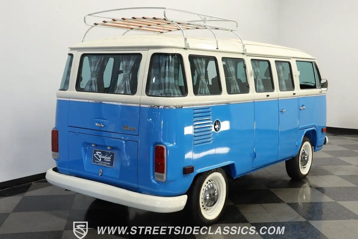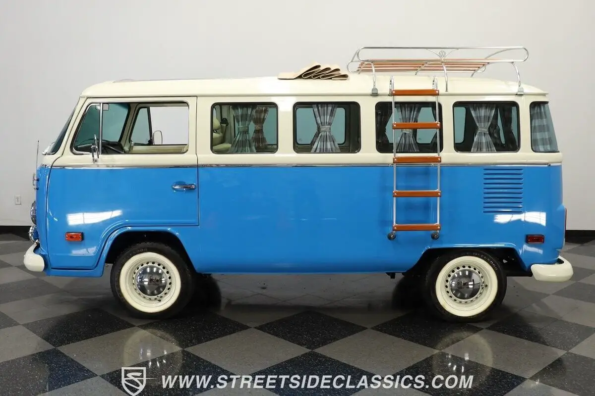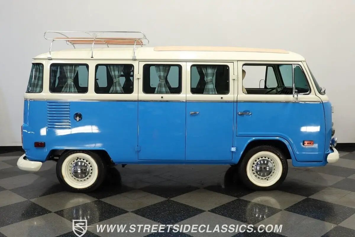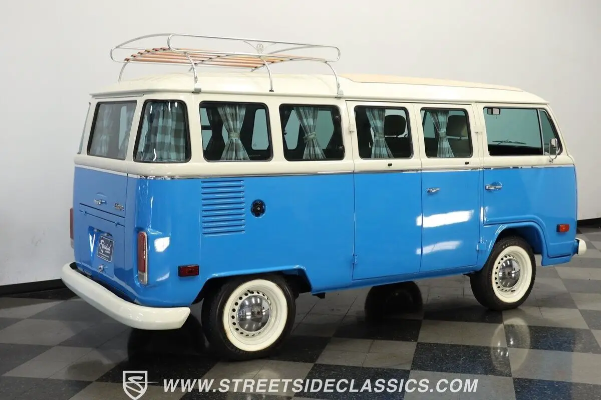 Vehicle Original VIN : 9BWZZZ23ZRP0214144717-TPA 1994 VOLKSWAGEN TYPE 2 13 WINDOW DELUXE BUS HIGHLIGHTS: • 1600cc gasoline engine • Dual Solex single-barrel carburetors • 4-speed manual transmission (upgraded to 5-speed) • Power Front disc brakes • Brake booster under cab • Light blue and cream two-tone paint • 14-inch wheels in 185R14 tires • Long vinyl sunroof • Wood and aluminum roof rack with ladder • Fog lights • Minimal chrome trim • Bumpers painted to match body • Tan vinyl upholstery • Black dashboard with clear gauges • Cream vinyl headliner • Upgraded high-stick shifter • Seat belts on all three benches • Plaid cloth curtains • Spare tire behind front split bench • South American model (Brazilian-built) • Wraparound rear glass (13-window configuration) • 60,720 kilometers on odometer