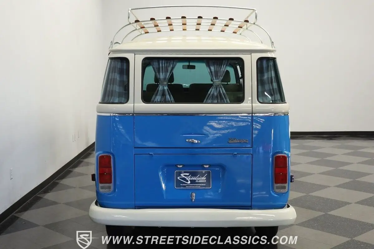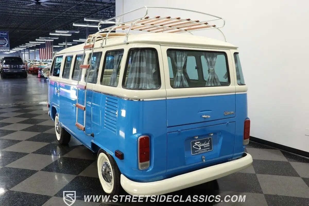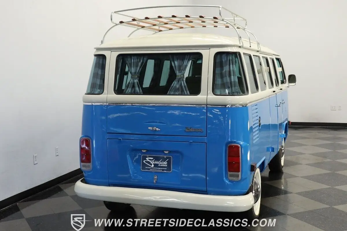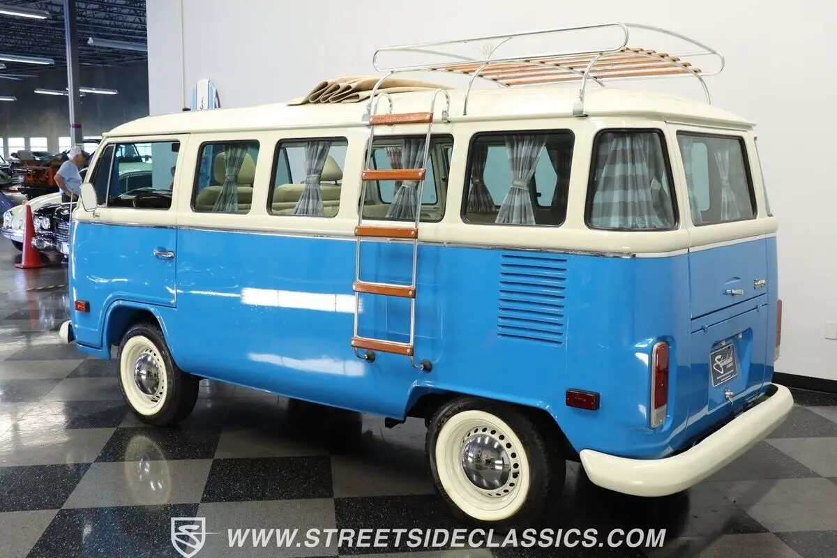 Vehicle Original VIN : 9BWZZZ23ZRP0214144717-TPA 1994 VOLKSWAGEN TYPE 2 13 WINDOW DELUXE BUS HIGHLIGHTS: • 1600cc gasoline engine • Dual Solex single-barrel carburetors • 4-speed manual transmission (upgraded to 5-speed) • Power Front disc brakes • Brake booster under cab • Light blue and cream two-tone paint • 14-inch wheels in 185R14 tires • Long vinyl sunroof • Wood and aluminum roof rack with ladder • Fog lights • Minimal chrome trim • Bumpers painted to match body • Tan vinyl upholstery • Black dashboard with clear gauges • Cream vinyl headliner • Upgraded high-stick shifter • Seat belts on all three benches • Plaid cloth curtains • Spare tire behind front split bench • South American model (Brazilian-built) • Wraparound rear glass (13-window configuration) • 60,720 kilometers on odometer