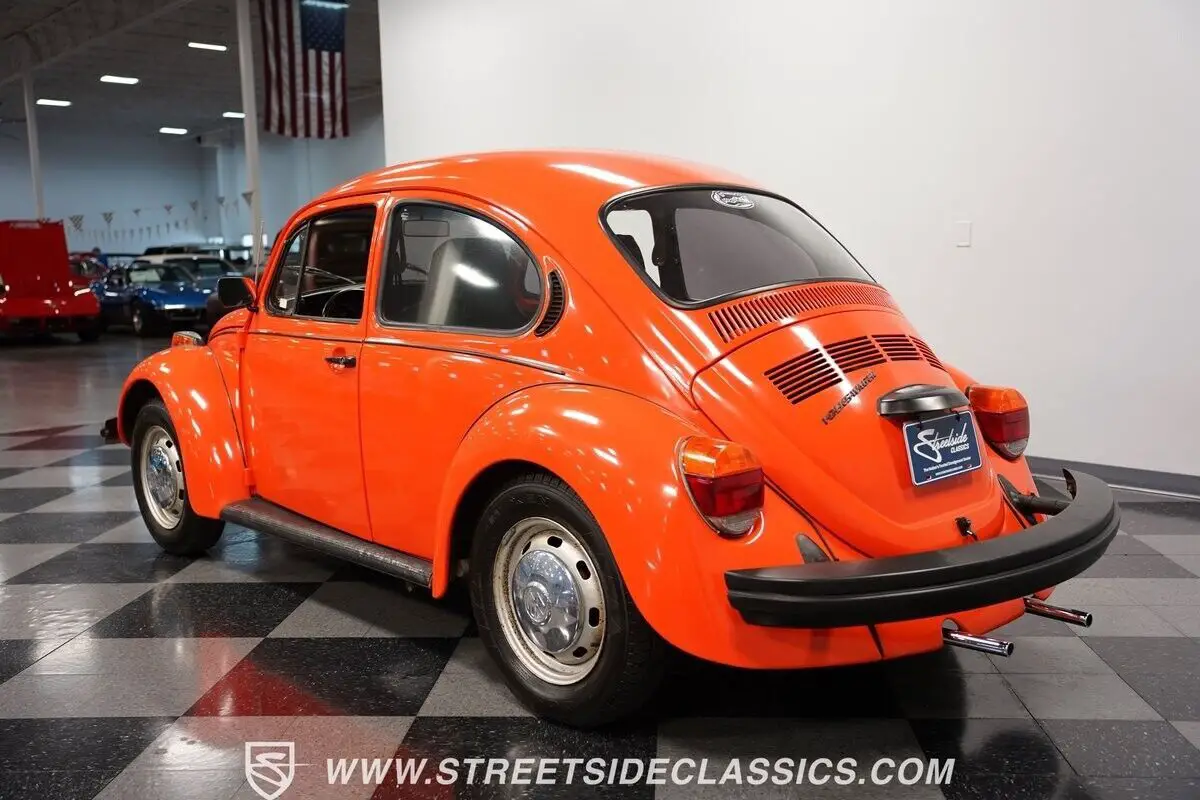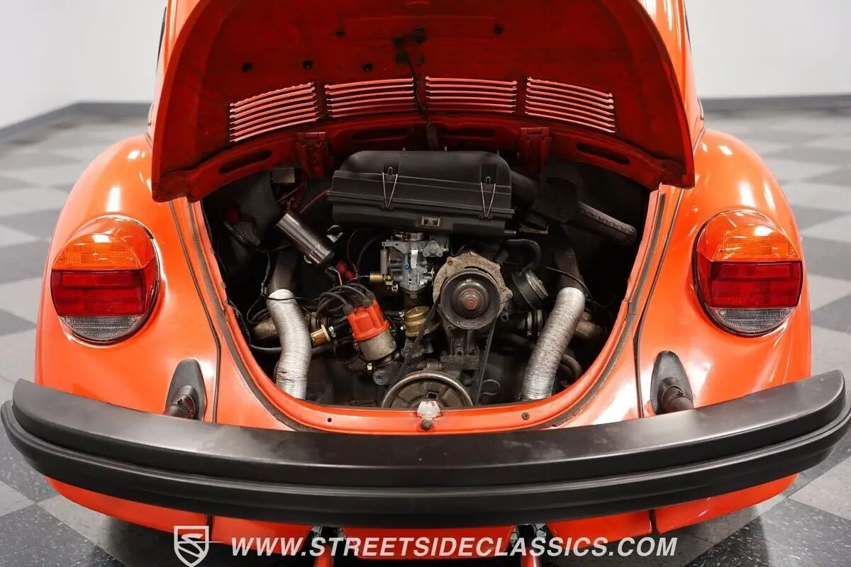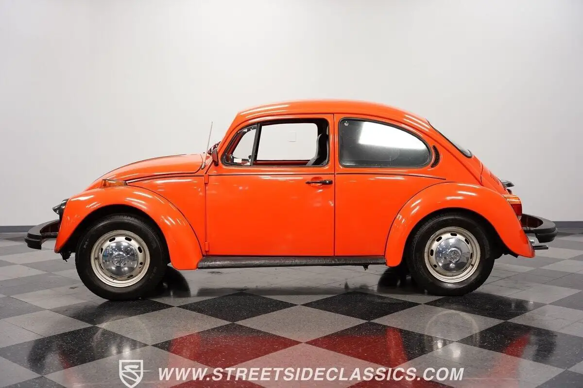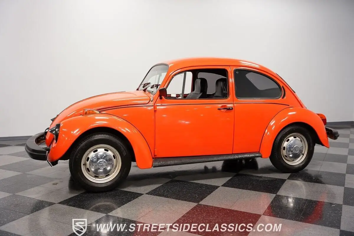 Vehicle Original VIN :844-657-6321This 1974 Volkswagen Beetle captures your gaze with its vibrant orange hue, evoking images of a sun-kissed Californian coast drive. It embodies a palette of nostalgia and adventure on four wheels, boasting a complete repaint that seamlessly merges classic and contemporary aesthetics. Mounted on 15" wheels enveloped in 165/80R15 tires, the Beetle stands with a modest and bold posture. Adding a brightwork blackout package encompassing the bumpers, trim, handles, and the charming touch of headlight eyelids endows this icon with a distinctive flair. Tinted windows further enhance this ensemble, crafting a visual narrative of mystery and intrigue, a notable departure from its original utilitarian origins. Internally, the narrative shifts towards a deliberate preservation of history, showcased by a predominantly black vinyl interior contrasting sharply with its jovial exterior. The bucket seats provide a comforting welcome, while the floor shifter acknowledges the Beetle's engaging driving experience. An AM/FM cassette player is primed to envelop the cabin with melodies from a bygone era, rounding off the interior's homage to simplicity and function. The cabin of the Beetle radiates a personality as profound and vivid as the exterior's color scheme. Beneath the deck lid lies a 1600cc engine, equipped with a carburetor fuel delivery system, serving as the heartbeat of this Volkswagen. It is coupled with a 4-speed manual transmission that delivers tactile feedback with every gear shift, enhanced by drum brakes on all corners. The suspension, a harmonious combination of a torsion arm at the front and IRS torsion with shock at the rear, ensures a ride as smooth as the coastal waves. HIGHLIGHTS: • 1600cc Engine • 4 Speed Manual Transmission • Orange Full Repaint • 15" Wheels • Brightwork Blackout Package (Bumpers, Trim, Handles) • Headlight Eyelids • Tinted Windows • Black Vinyl Bucket Seats • Black Interior Color Scheme • Floor Shifter • AM/FM Cassette Player This 1974 Volkswagen Beetle offers a blend of vintage appeal and easy-to-drive fun. Whether you're a seasoned collector or just looking for a classic that will make you smile, this Beetle is an excellent choice. Call today!