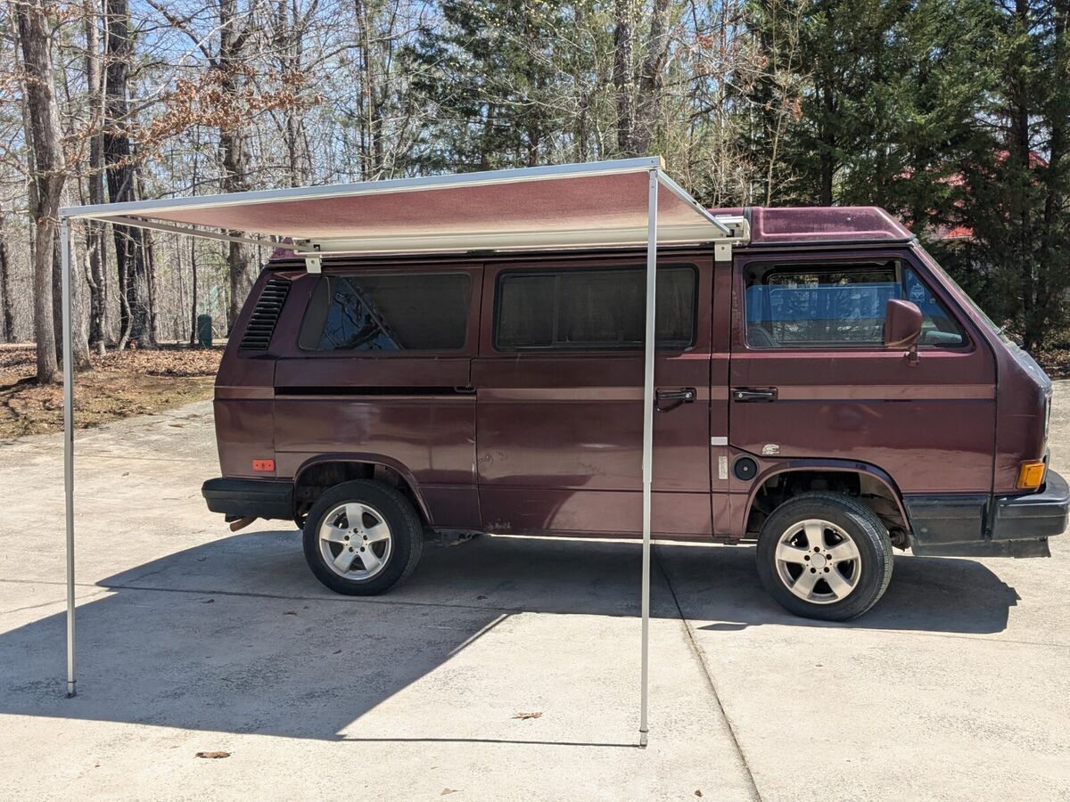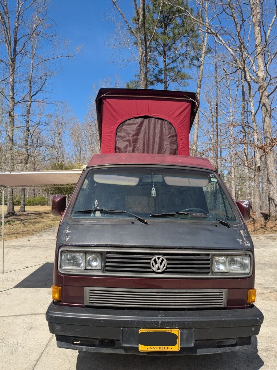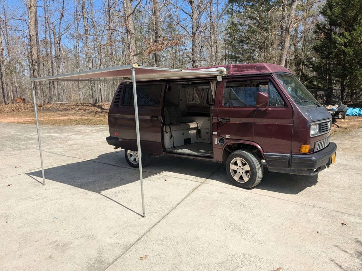 THE GOOD: This Vanagon has less than 8K miles on rebuilt engine ($10k) that has the power of a Subaru swap without being a Subaru swap. The interior is all original except for the tent canvas which is a brand new Sunbrella burgundy canvas ($500). Comes with original curtains, original extra table for behind the driver's seat, a Thule trailer hitch storage box with tail lights (all hooked up), brand new ARB side room with floor ($300) (Never even used, only took out of bag for photo.), bug screens for the back and side, (the sliding door side needs the snaps installed in the van), a brand new battery, brand new windshield, and updated rims. Full camping package with stove, fridge, and sink. I have not used these in a while, but all should be in working order. Sleeps 2 up top and 2 on the pull out bench seat. Lots of storage space. Swivel captain's chairs. I have owned since October of 2020 and had many adventures.