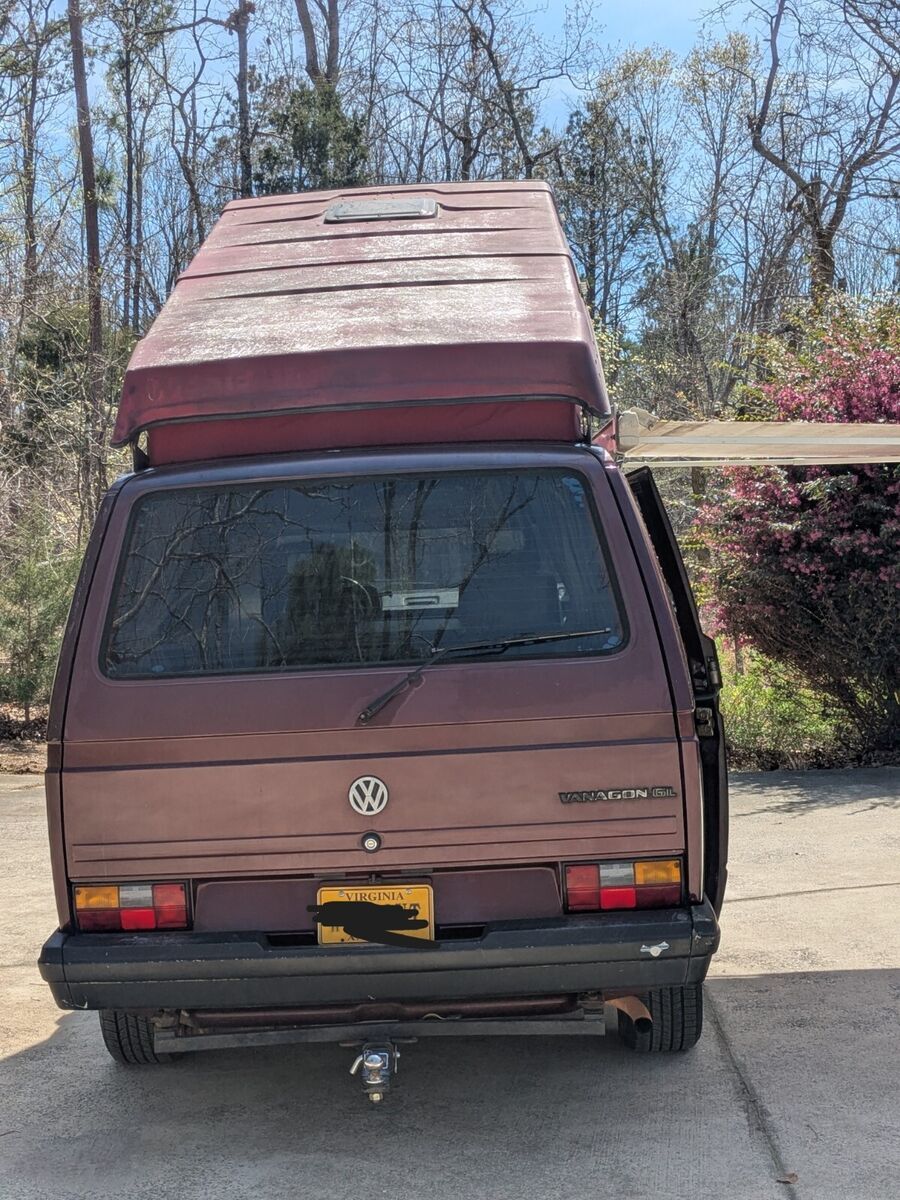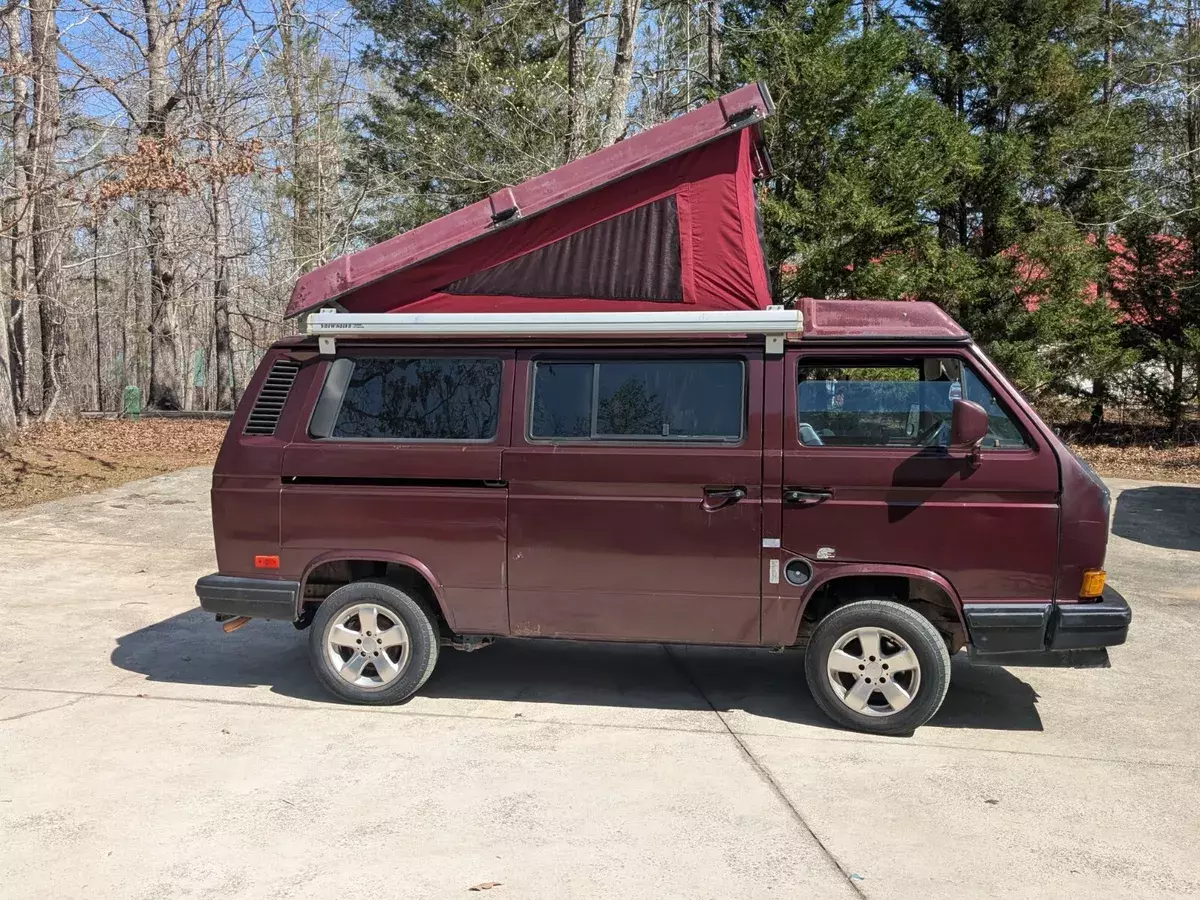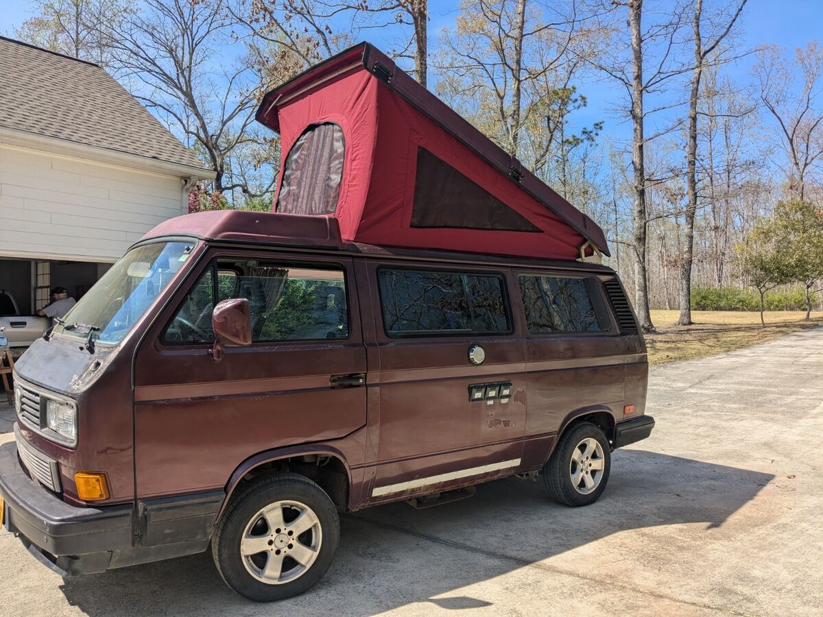 THE GOOD: This Vanagon has less than 8K miles on rebuilt engine ($10k) that has the power of a Subaru swap without being a Subaru swap. The interior is all original except for the tent canvas which is a brand new Sunbrella burgundy canvas ($500). Comes with original curtains, original extra table for behind the driver's seat, a Thule trailer hitch storage box with tail lights (all hooked up), brand new ARB side room with floor ($300) (Never even used, only took out of bag for photo.), bug screens for the back and side, (the sliding door side needs the snaps installed in the van), a brand new battery, brand new windshield, and updated rims. Full camping package with stove, fridge, and sink. I have not used these in a while, but all should be in working order. Sleeps 2 up top and 2 on the pull out bench seat. Lots of storage space. Swivel captain's chairs. I have owned since October of 2020 and had many adventures.