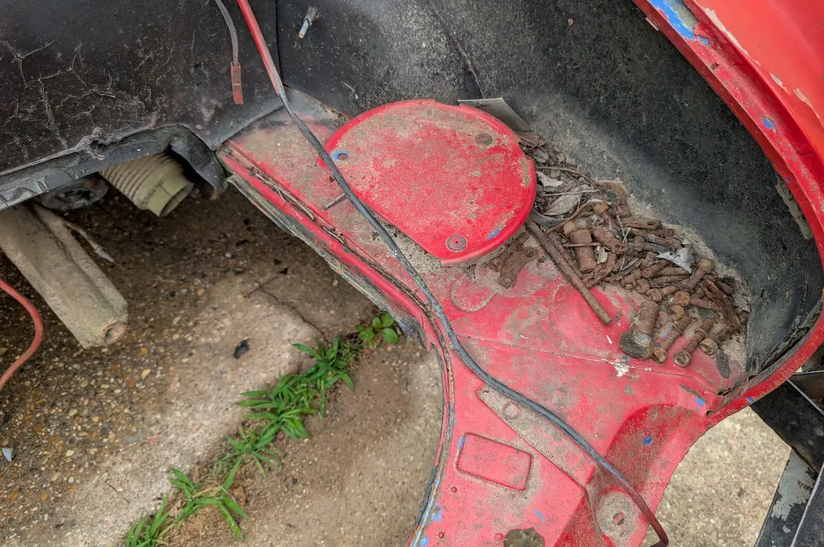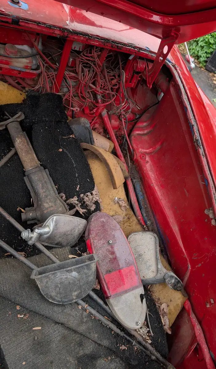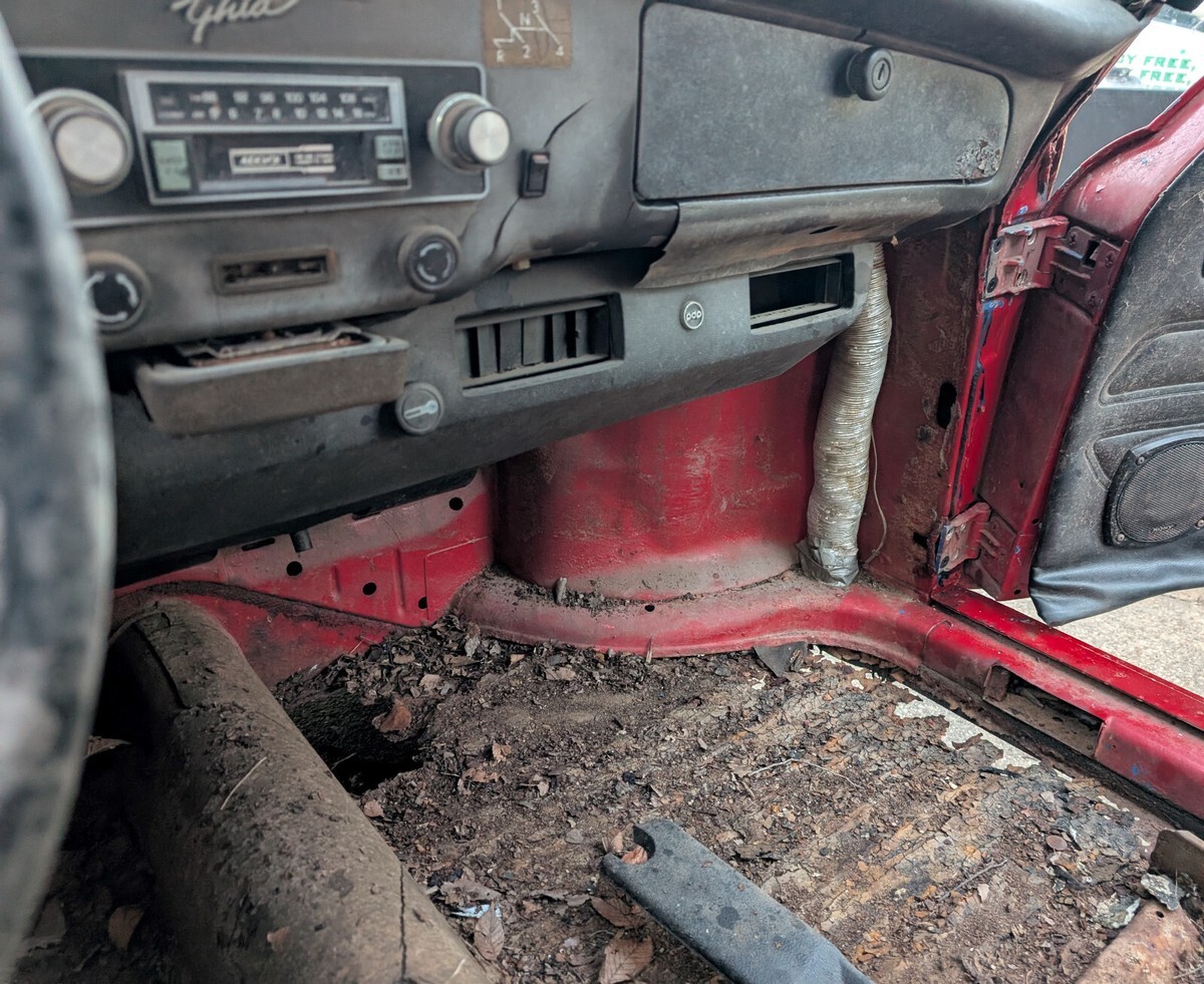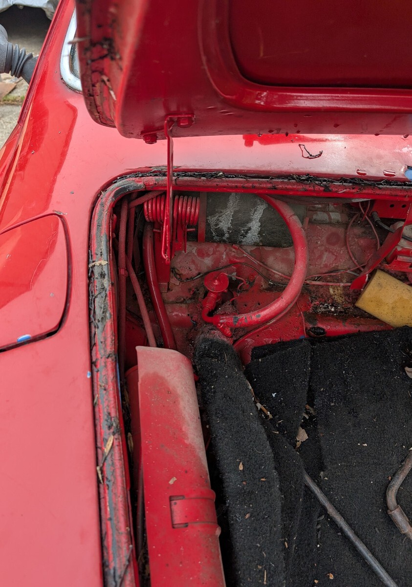 This is a Convertible body that was factory blue. The is no motor of trans axle but I have located someone locally who has both. I do not have any history on the car. There is rust in the pan and or the rear trunk shelf and trunk lid. I have seats. The top is too tight to close down but the rack is complete and does go up and down. The front bow is rotten. The car is located in Monro, La. And I can store it for 30 days. Full payment is expected within 7 days.