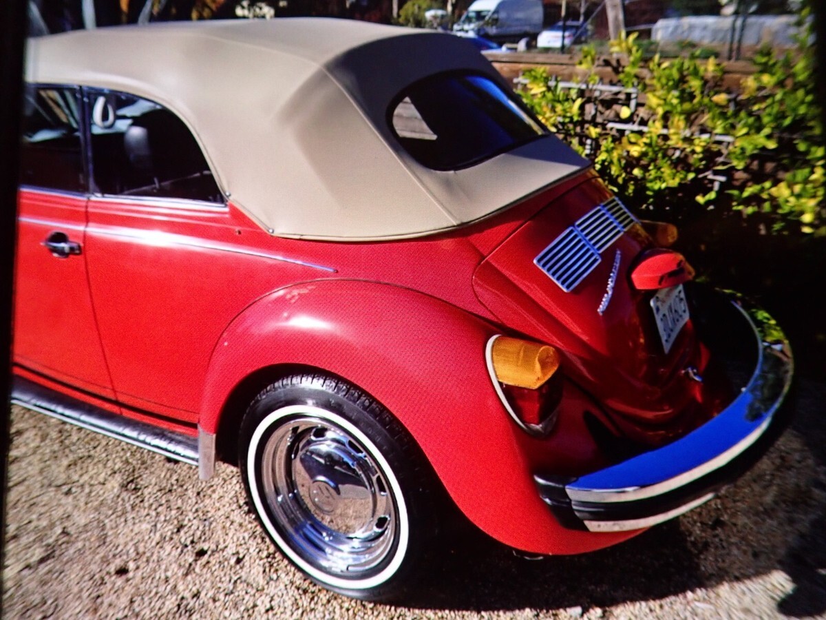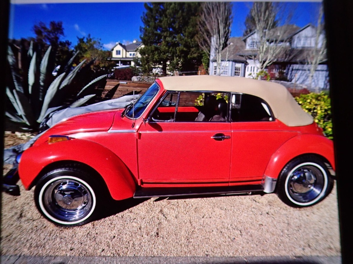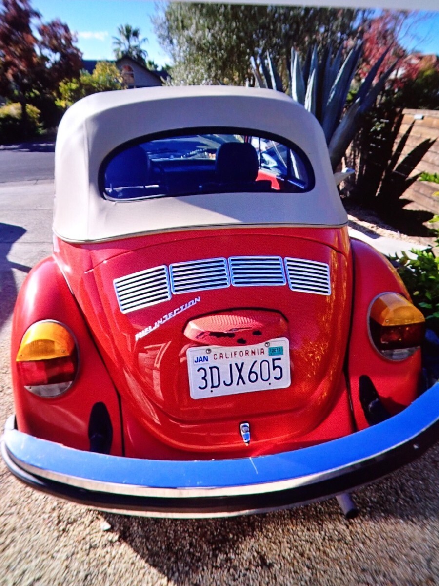 This was a one owner VW until I purchased it in November 2024 this very nice Karmann VW convertible fuel injected from the original owner. I have done a lot of work to the motor all new injectors plugs oil all new hoses and battery gas tank and so much more. The tan top is in great condition with a glass back window. There are very nice VW chrome rim on the VW. This is a fuel injected motor, and it passed smog with flying colors. The VW drives very nice I have had it up to 75 on the freeway and it handled very nice. There are a few scratches here and there in the orange paint. There are a lot of original shop receipts and manuals. The interior is in nice condition, I will say there is a small rip in the driver's seat fabric. I will try to add more photos these are ones I had on my camera.NOTE: I am on crutches at this moment Tore the Quade tended in my knee.NOTE: I did get a chance to add more photos with the top down.NOTE: This VW has always been kept in the original owner's garage.