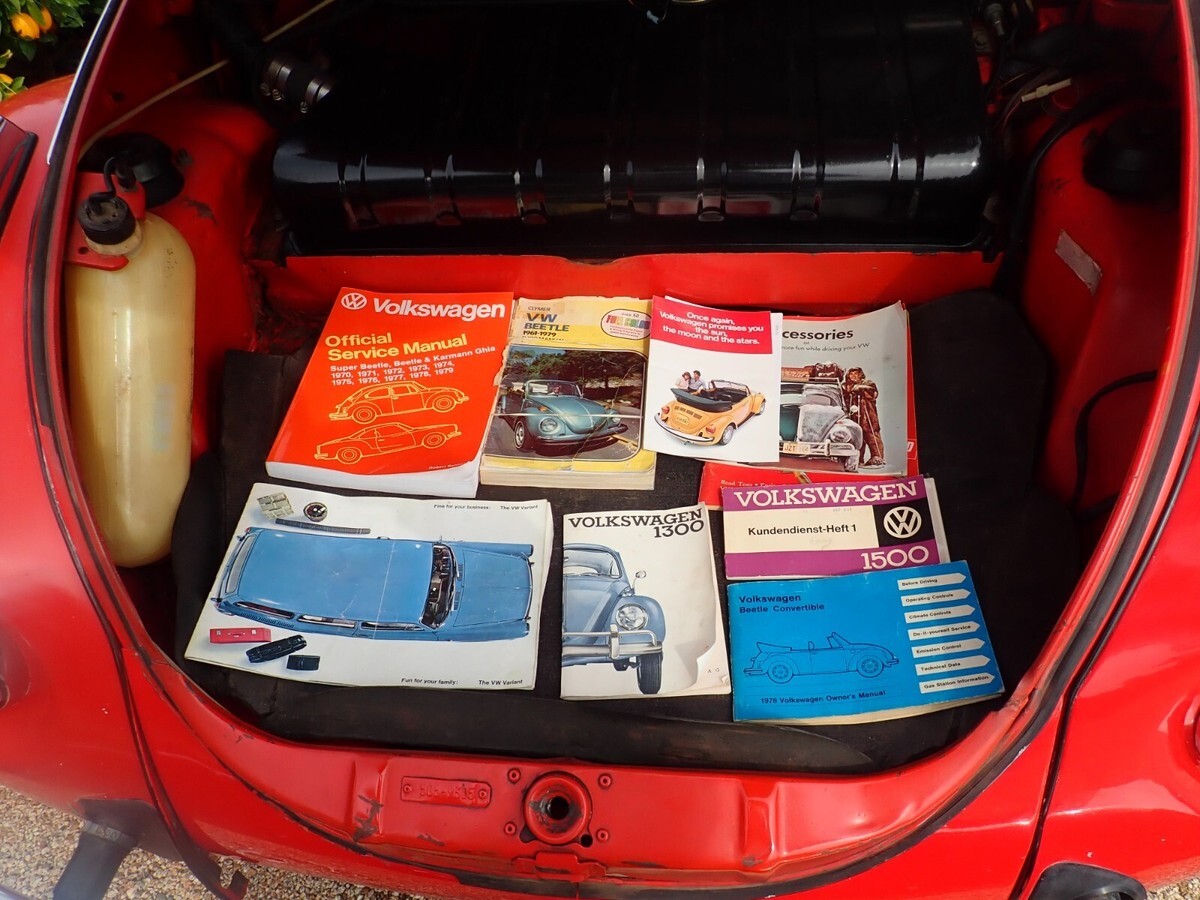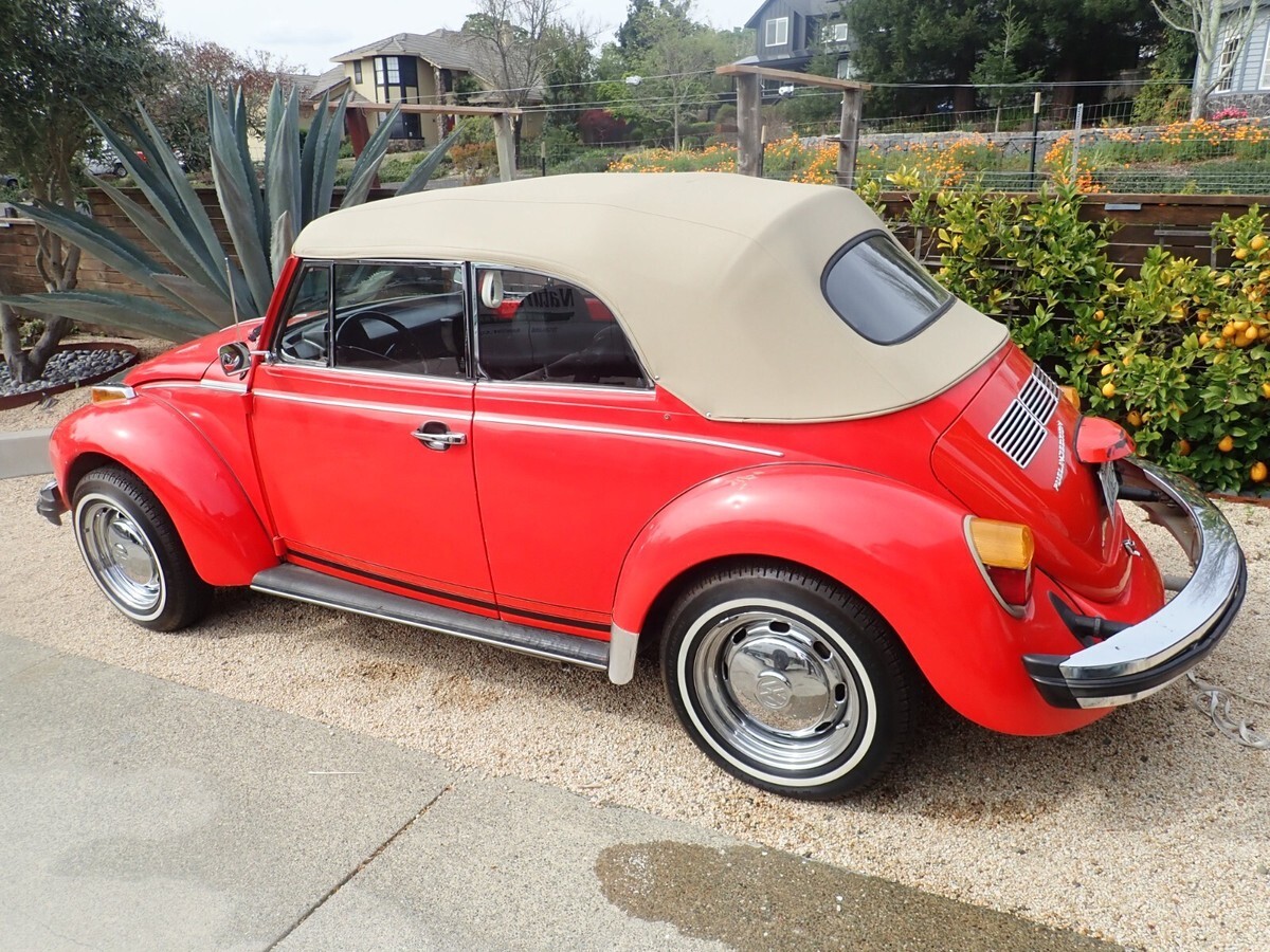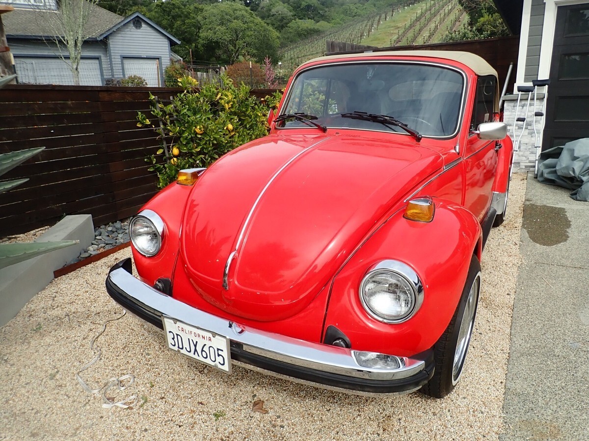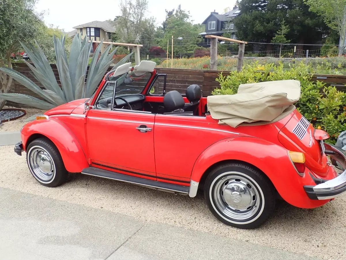 This was a one owner VW until I purchased it in November 2024 this very nice Karmann VW convertible fuel injected from the original owner. I have done a lot of work to the motor all new injectors plugs oil all new hoses and battery gas tank and so much more. The tan top is in great condition with a glass back window. There are very nice VW chrome rim on the VW. This is a fuel injected motor, and it passed smog with flying colors. The VW drives very nice I have had it up to 75 on the freeway and it handled very nice. There are a few scratches here and there in the orange paint. There are a lot of original shop receipts and manuals. The interior is in nice condition, I will say there is a small rip in the driver's seat fabric. I will try to add more photos these are ones I had on my camera.NOTE: I am on crutches at this moment Tore the Quade tended in my knee.NOTE: I did get a chance to add more photos with the top down.NOTE: This VW has always been kept in the original owner's garage.