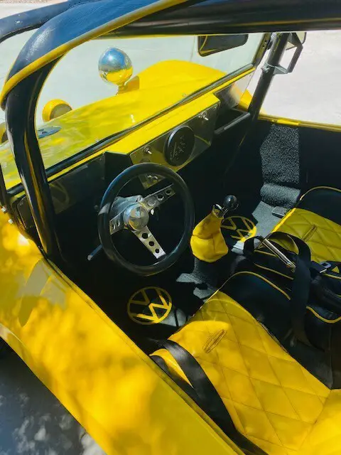 Thanks for looking at my listing for my 1956 Volkswagen Powered Dune Buggy. I have owned the Buggy since 1995. It has provided 30 years of enjoyment and memories. The buggy has always been garaged and pampered. Always serviced at the best VW shops I could find. As you can see in the pictures it's a beauty.Please view the startup video and also scroll down the description section to see lots more pictures. I posted 63 pictures with the listing. I am only selling the buggy as I no longer have the garage space for it.I purchased the buggy back in 1995 in Southern California. Based on the seller's info the buggy was always a California car. I lived in Torrance, California at the time and it was registered there till 2016. I moved to Henderson, Nevada and a new title was issued in Nevada in 2016. The buggy has a Nevada title in my name and current registration.If you need the Buggy shipped, I have no problem assisting the buyer. If you want to get any shipping quotes please use Henderson, NV 89052 as the pick-up location. I am located a few miles away from Las Vegas. Buyer pays for shipping.I accept cash in person or money wires. No checks. I will not ship the buggy unless full payment is made.This is a fiberglass dune buggy on a 1956 VW Bug frame. My understanding the frame was shortened to fit the body and also was lifted to fit the oversize tires.In August of 1996 I took the buggy to another level. I had a company by the name of Buggyworld in Norco Califonrnia do a bunch of work on it. I spent $10,000 with them and have the receipt to prove it. The interior was done. The top. Seat belts added. Chromed the engine. New chrome shocks. They performed mechanical upgrades that later I upgraded even more. The dash and speedo were done by them. It really came out nice.The buggy still has the same paint since the day I purchased it. As you can see in the pictures it looks great. The paint has great shine to it. There are a few nicks here and there, but I never felt that there was a reason to paint this buggy. I receive thumbs up and compliments wherever I take it. The yellow and black combination is stunning.The oversize tires make this buggy special. Front tires are Mickey Thompson Baja Belted H.P> size 27X9.50x15LT 86.5.Rear tires are Mickey Thompson Baja Belted H.P> size 31x15.50-15LT 97.5. They sit on beautiful chrome wheels. The tires are older but have lots of tread left on them.I have posted lots of pictures with the listing so you can see how special this buggy is. Please scroll down and you will see even more pictures.The buggy has many mechanical upgrades since I moved to Henderson, Nevada. All work has been done by the The Beetle Barn in Las Vegas, Nevada. They rebuilt the 1776cc VW motor. They installed the dual carburetors that you see in the pictures. The transmission is rebuilt. Replaced axle boots. Replaced rear transmission mounts. Added a EMPI HD oil pump, Flat Cam. Replaced bowden tube and installed a new clutch. New clutch cable. New Speedo cable. Stainless pushrod tubes. Pressure Booster Kit etc.... The receipts of all the work will be included with the buggy. The buggy has lot's of power and is a blast to drive.All lights work on the buggy.The interior is black and yellow as you can see in the pictures and definitely makes it a real looker. I even had custom floor mats made for it. If you look at the carpeting it is all custom made. You have seat belts front and back. The only stitching that has come loose is in the drivers seat and I attached a picture of it. The interior work was first class and exactly what I asked for.The top was done in the same interior color combination and is in excellent condition. You can remove it easily if you wish. The top is attached with buttons.The buggy has a roll bar.Driver and passenger mirrors.Rear view mirror.I had a smaller steering wheel installed so it makes it easier to get in and out of.The engine runs very strong.Transmission shifts with no problems.The drum brakes work great and I had a newer master cylinder installed.The battery is a year old.I have set a buy it now price that I believe is more than fair for the buggy. It's a lot less then what I have in it but that is how it goes. I have also added the best offer option.The buggy is sold as is with no warranties.If you have any question's, please feel free to ask.Please scroll down this screen to see over 60 pictures. Thank you.