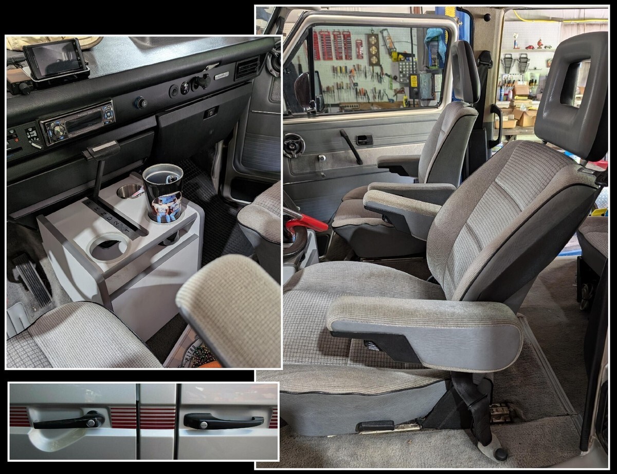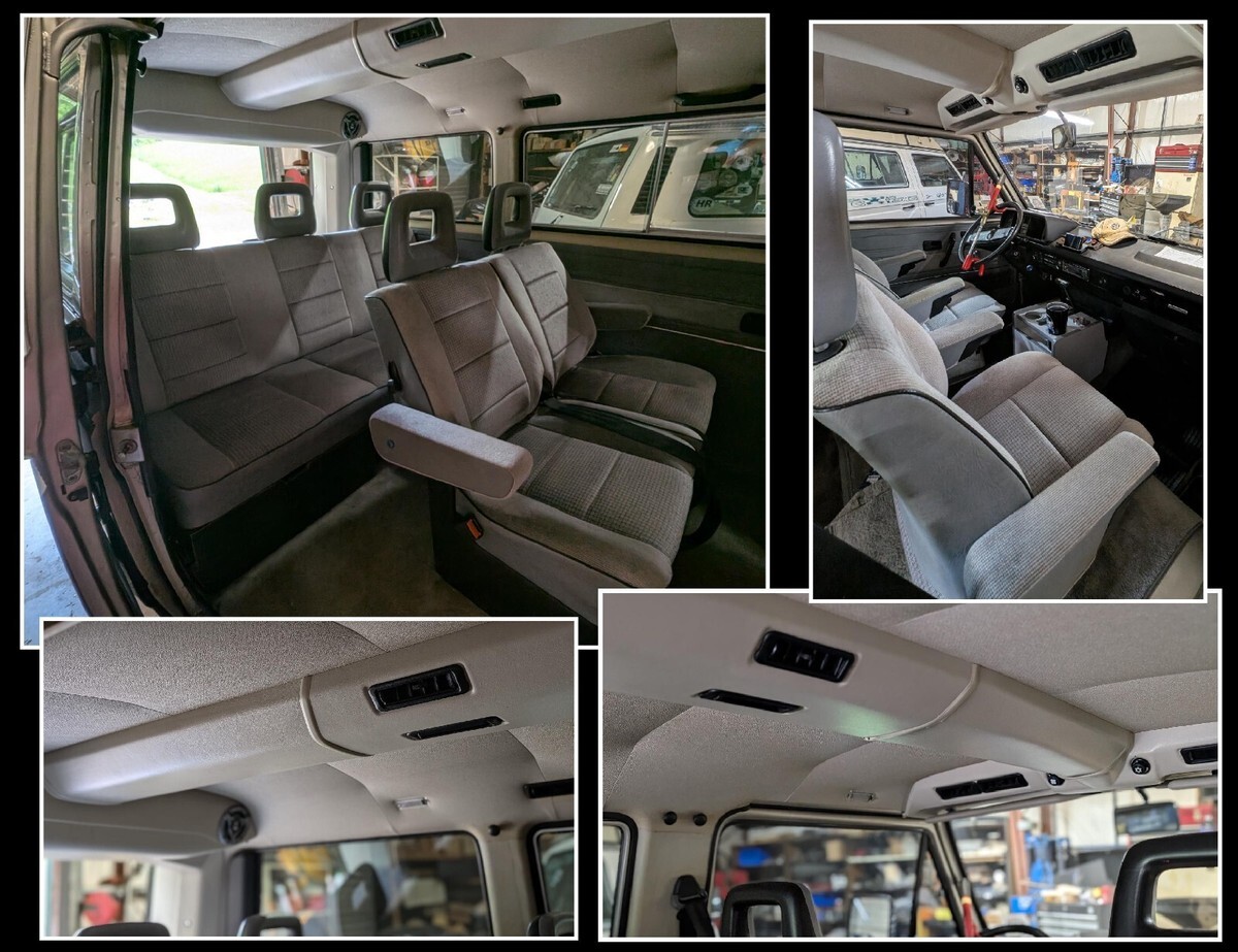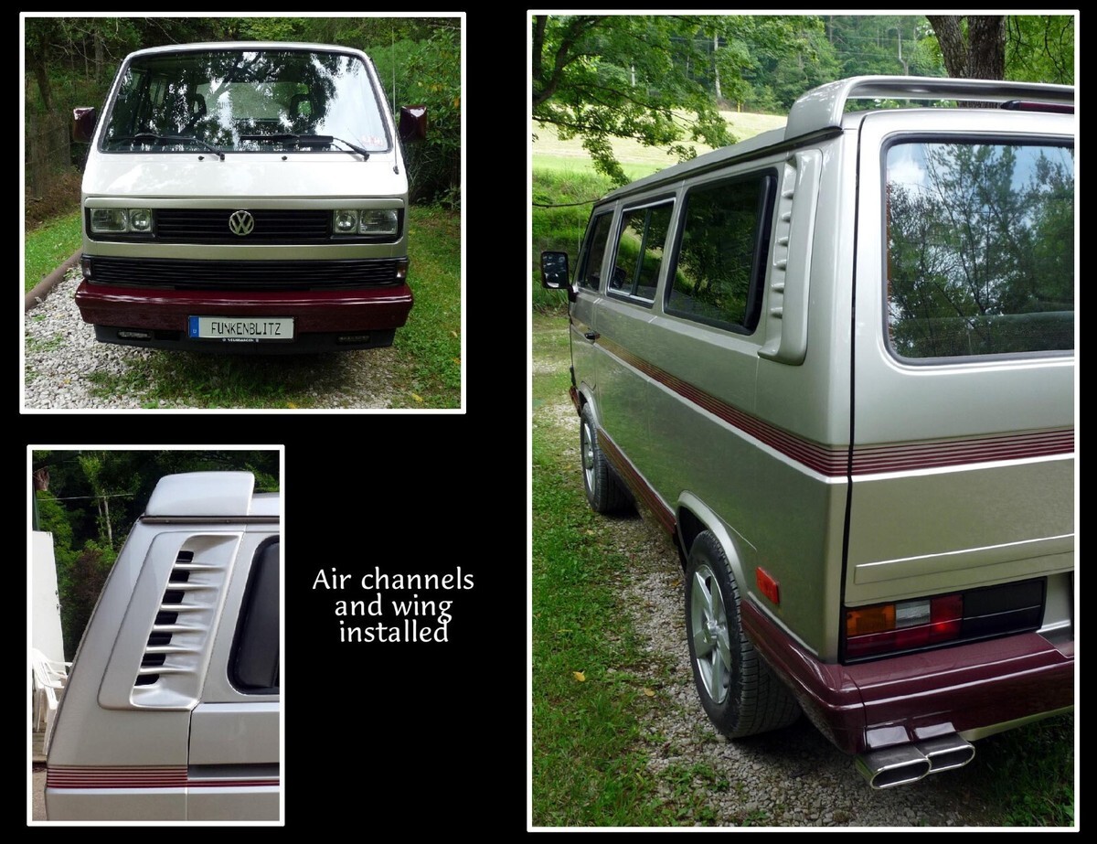 • 1988 Vanagon GL Wolfsburg Edition - priced at $14,900• Garaged since 2000; immaculate; little rust (I found 2 tiny places under a window)• Condition: Excellent - All body work, mechanical work, maintenance done by owner• Exterior and paint: In 2013 all windows and trim removed; seams sand blasted to eliminate rust; prepped and primered - then completely repainted in silver grey with burgundy accents by the owner• Interior: Velour grey seats with adjustable arm rests• Panasonic radio + CD player with Kenwood speakers front and back• Removable face plate for radio• External mirror position control on driver door• Defroster on rear hatch; rear wiper• Transmission: Automatic• Engine 2.1L w/ power steering• See through headrests• Has won several awards at local car shows• Mileage: 260,450• New air channels, wing and tail light trim brought from Germany and installed in 2013• Faux chrome exhaust tips• Custom button & tuft sideliner both sides in the rear• Fully functional AC & heater• Regular oil changes and maintenance• Crank windows, interior spotless• Bench folds down to make a bed• Third brake light plus extra backup light bar below license plate installed 2013• Behind grill lights / headlight reflectors installed 2013• 'BlazeCut' automatic fire suppression system installed over engine