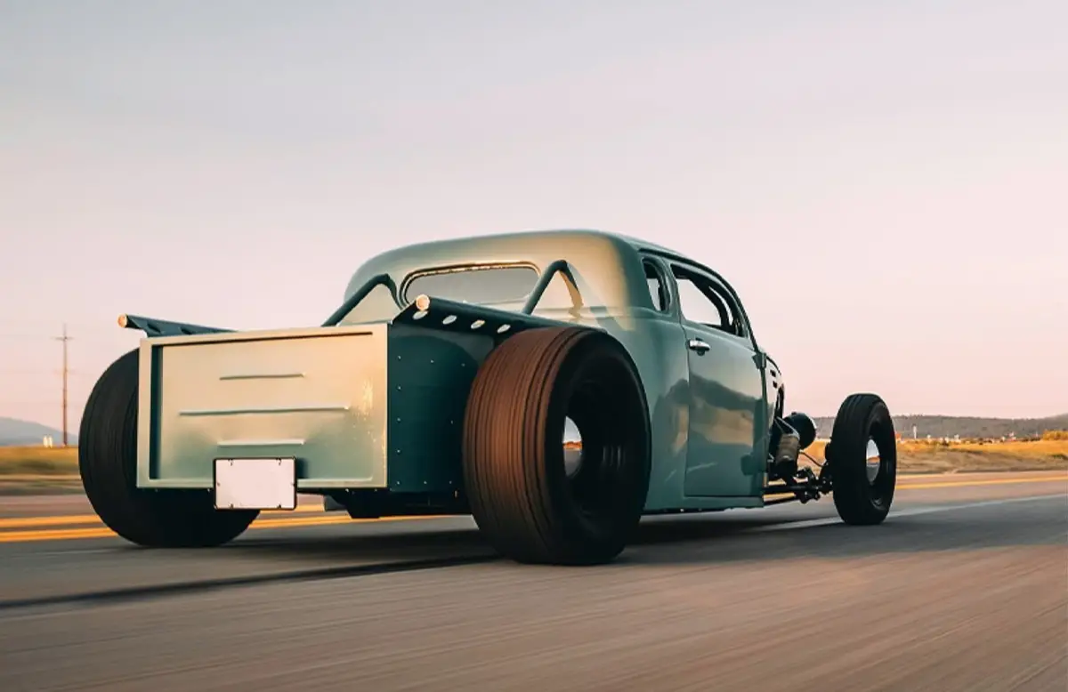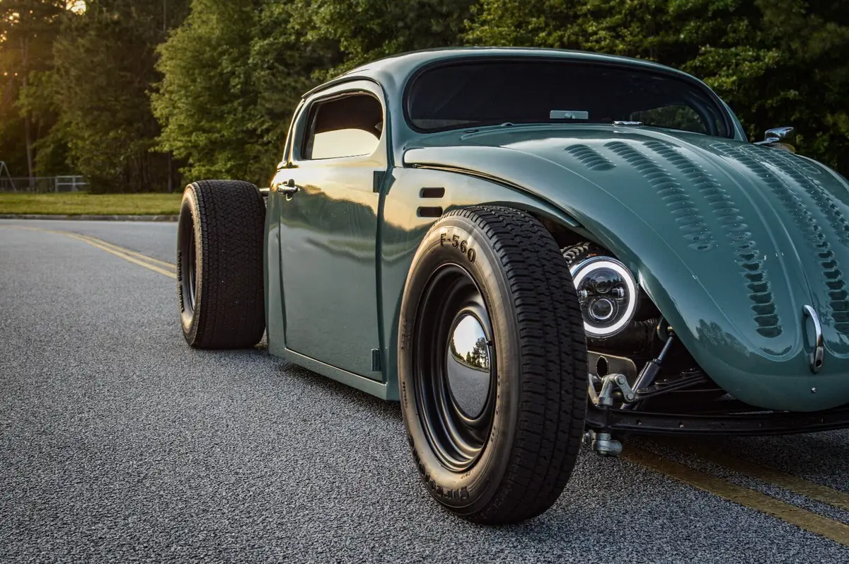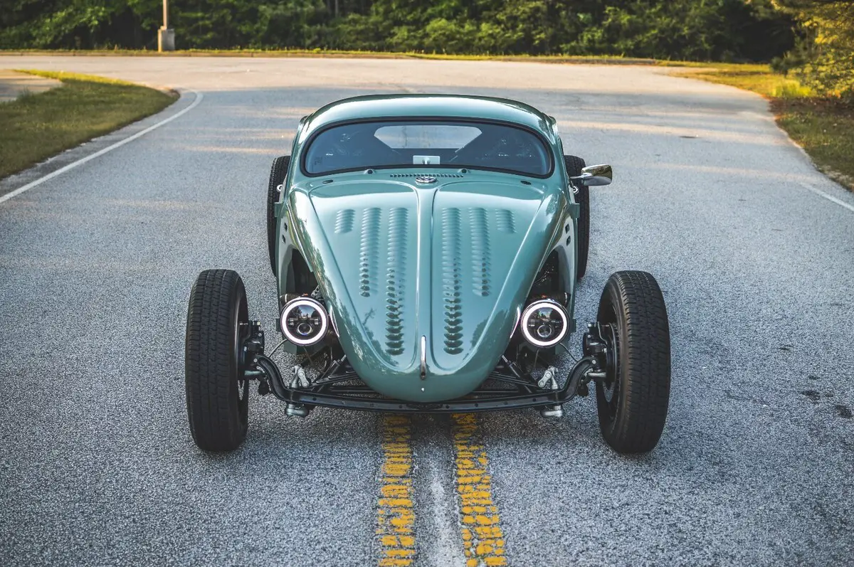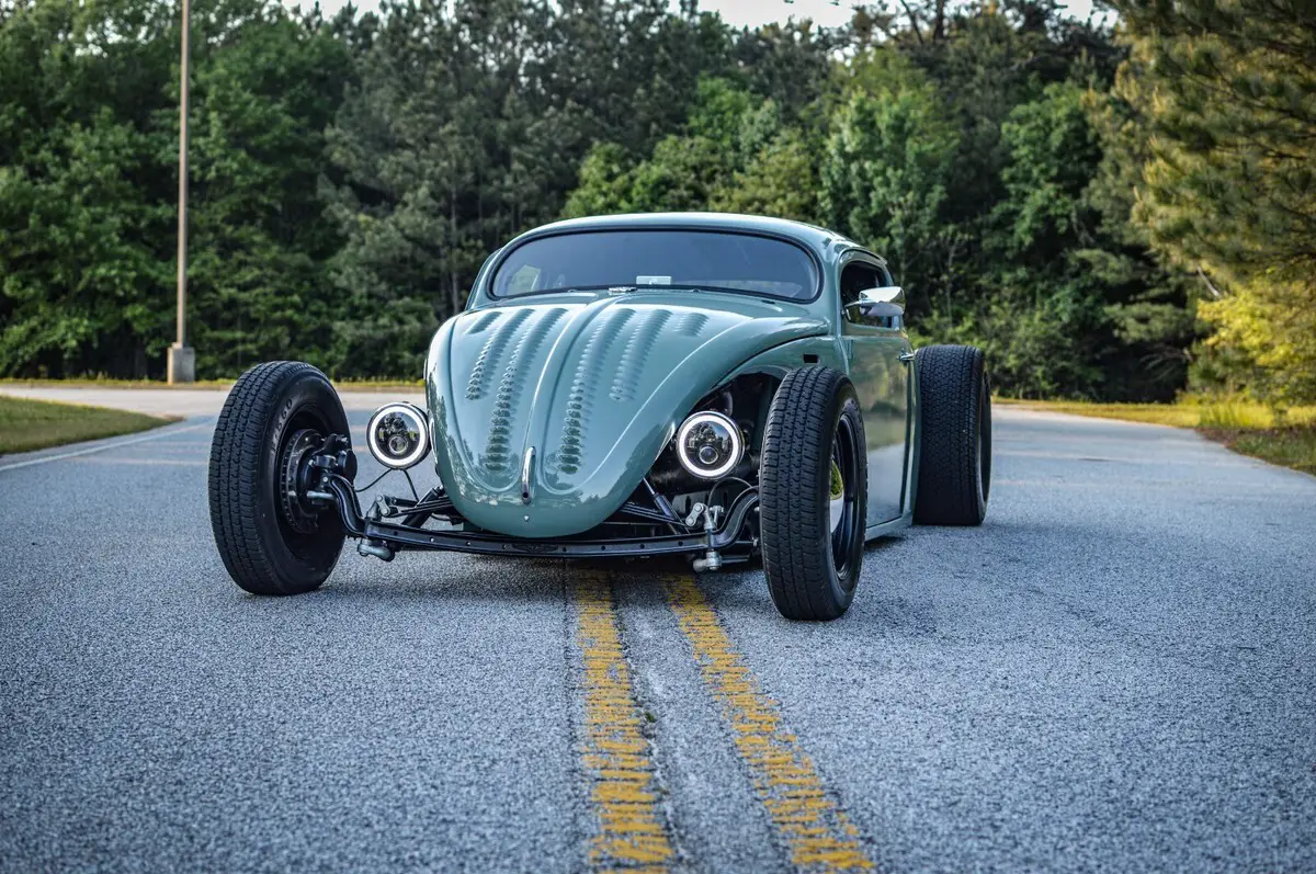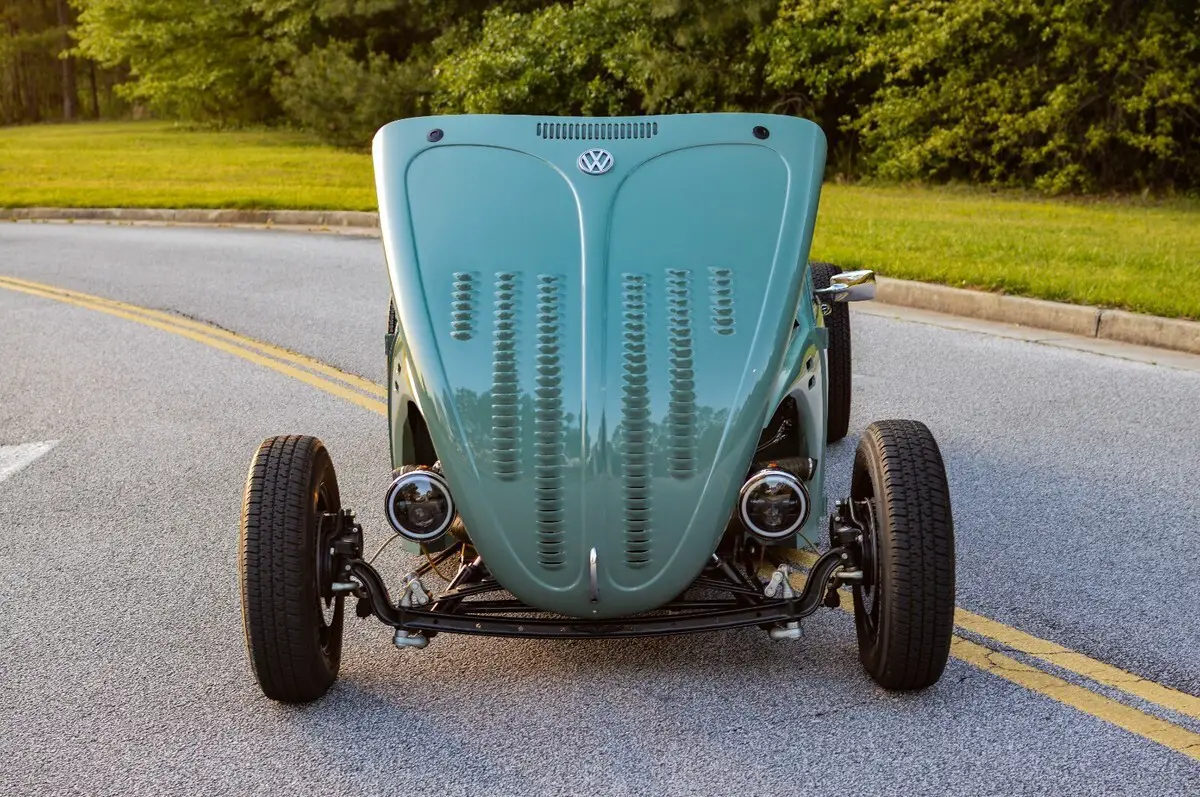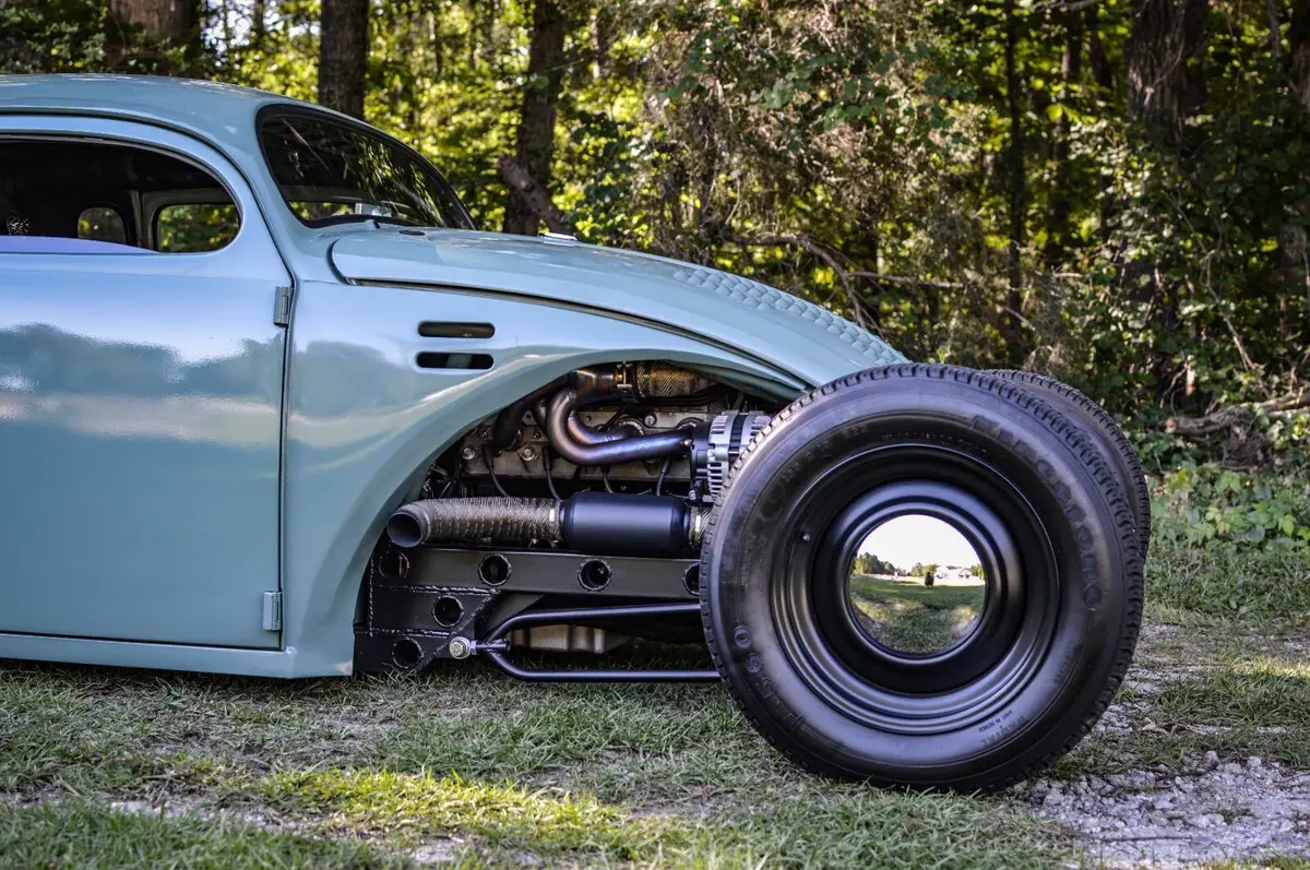 Chopped, channeled, and powered by a 5.3L V8, it blends a Beetle body with a ’49 Chevy cab, a custom-built bed, and a fully hand-fabricated frame with integrated roll cage.