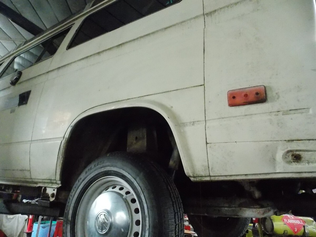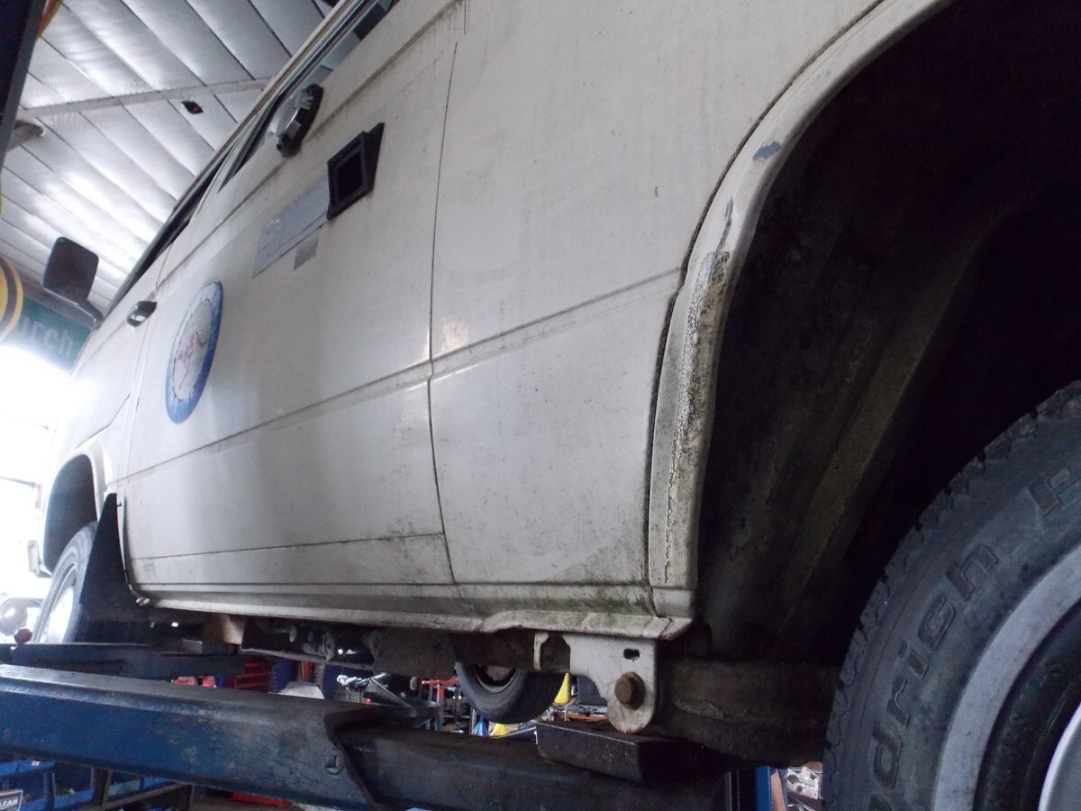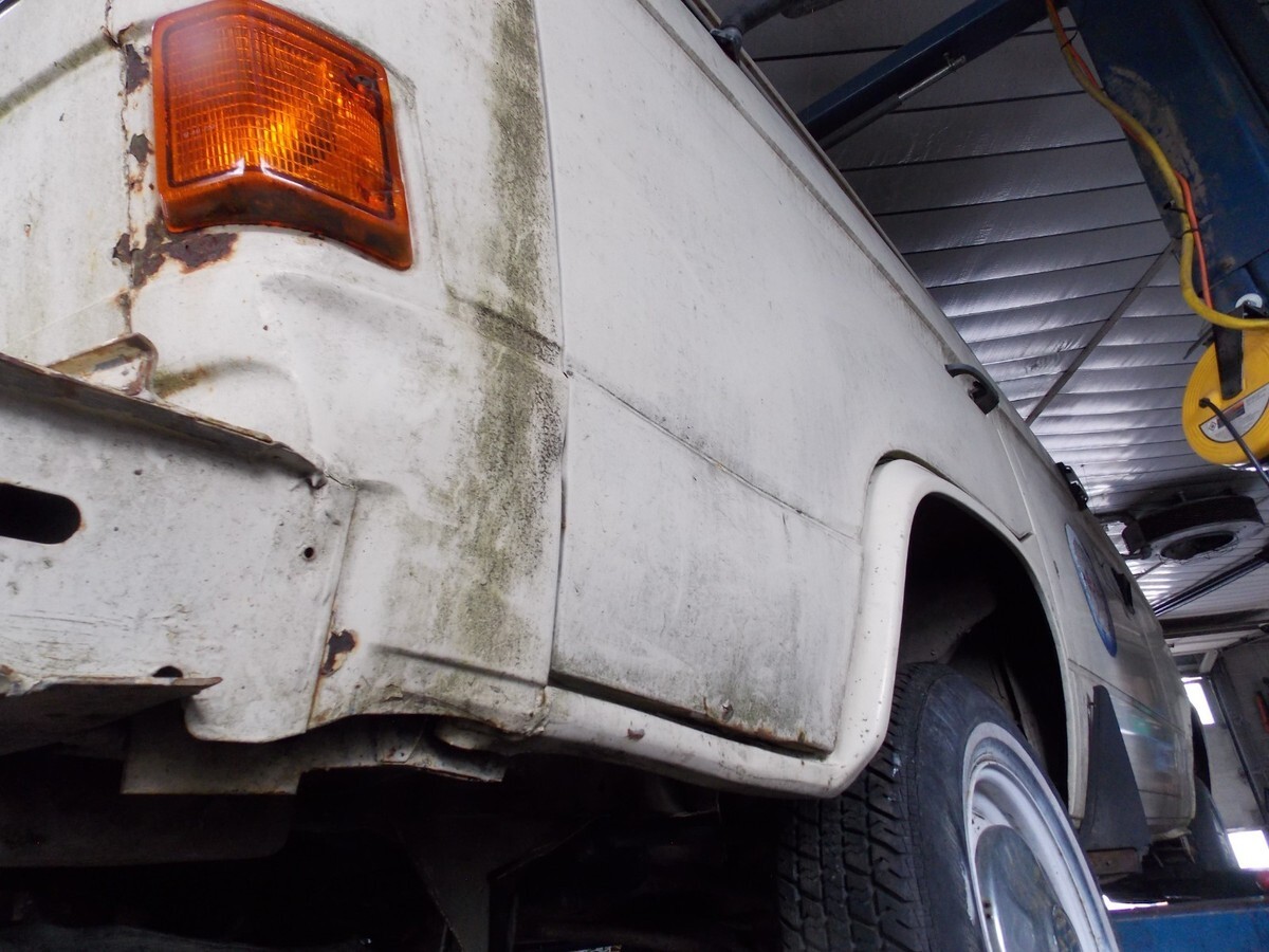 Body has minor rust; bottom of sliding door, two front steps have pin holes and below windshield.