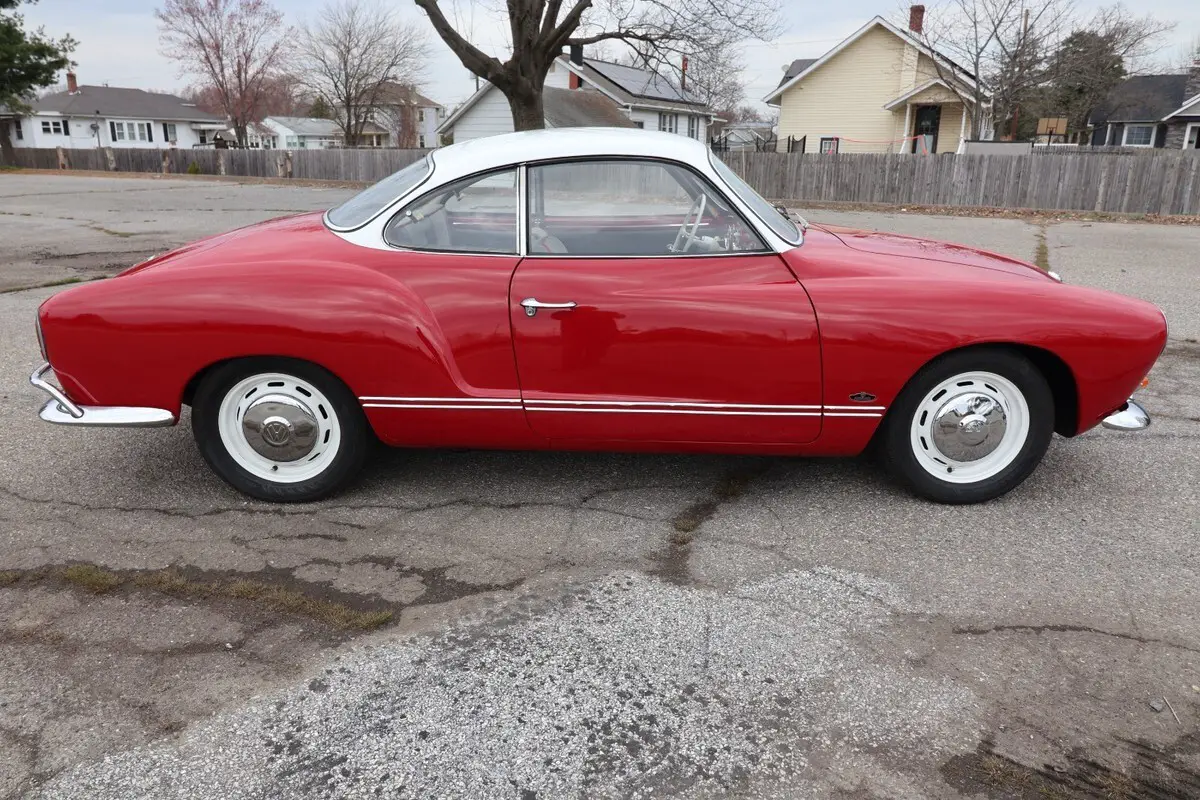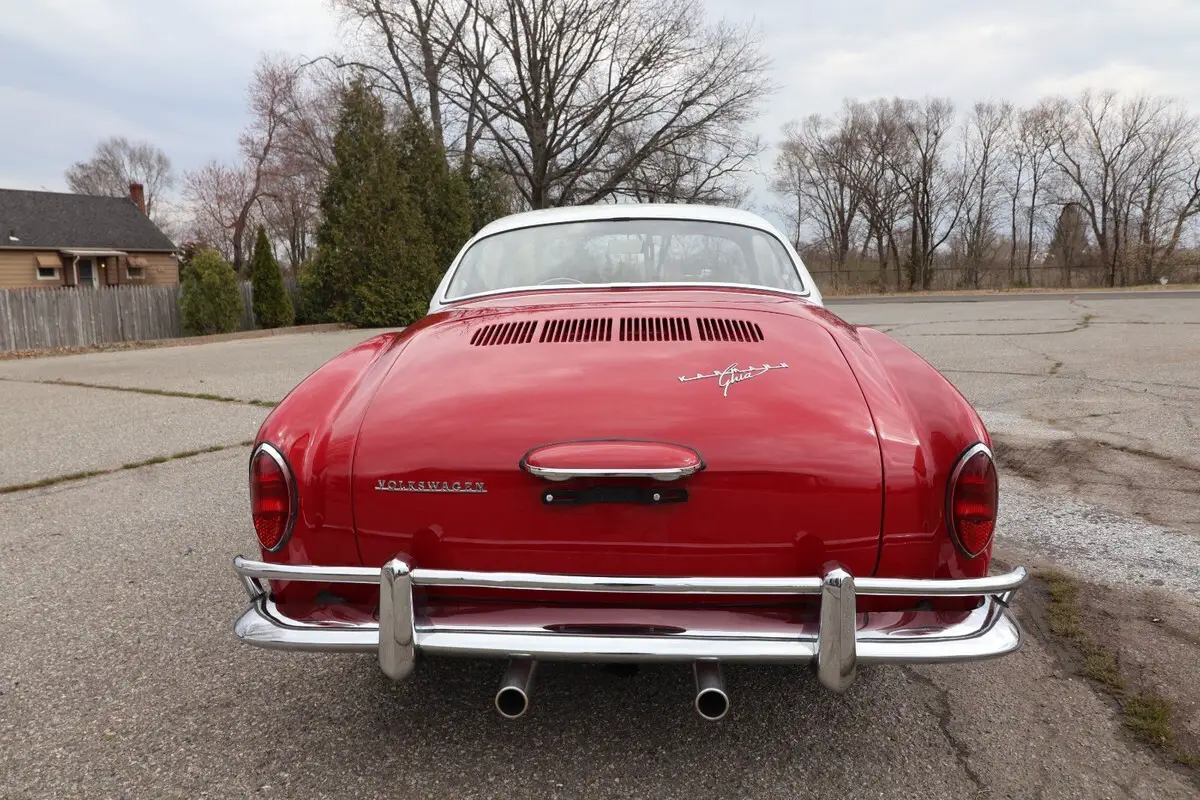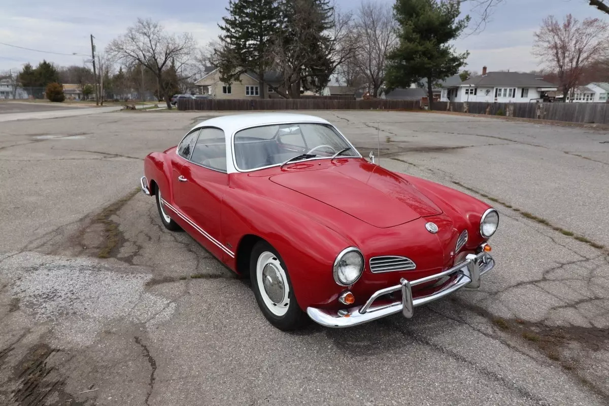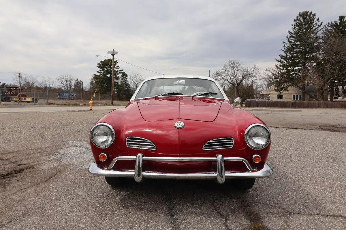 Most classic cars, including VW Karmann Ghias, will have some issues unless they are in perfect condition. Common to find imperfections in these cars, even if they are well-maintained. As you’ll see, the paint on this Karmann Ghia for sale is beautiful. The car has an upgraded cloth interior with red piping. The engine is actually a later model 1500 cc single port. This VW Karmann Ghia for sale is a nice little unit. It tracks straight and brakes well with the original drum brakes. It shifts nicely, and the clutch is nice and tight. This Karmann Ghia car is a nice driver-quality example that’s stunningly pretty.
