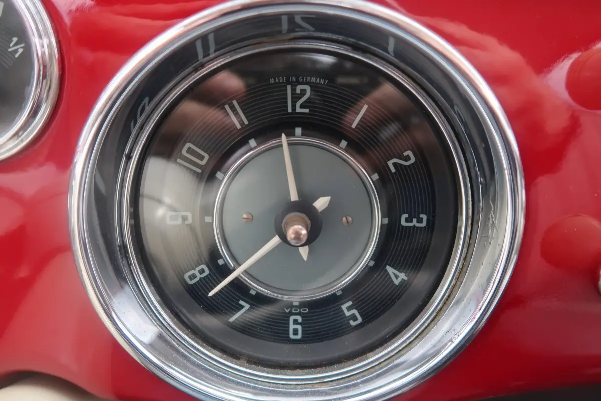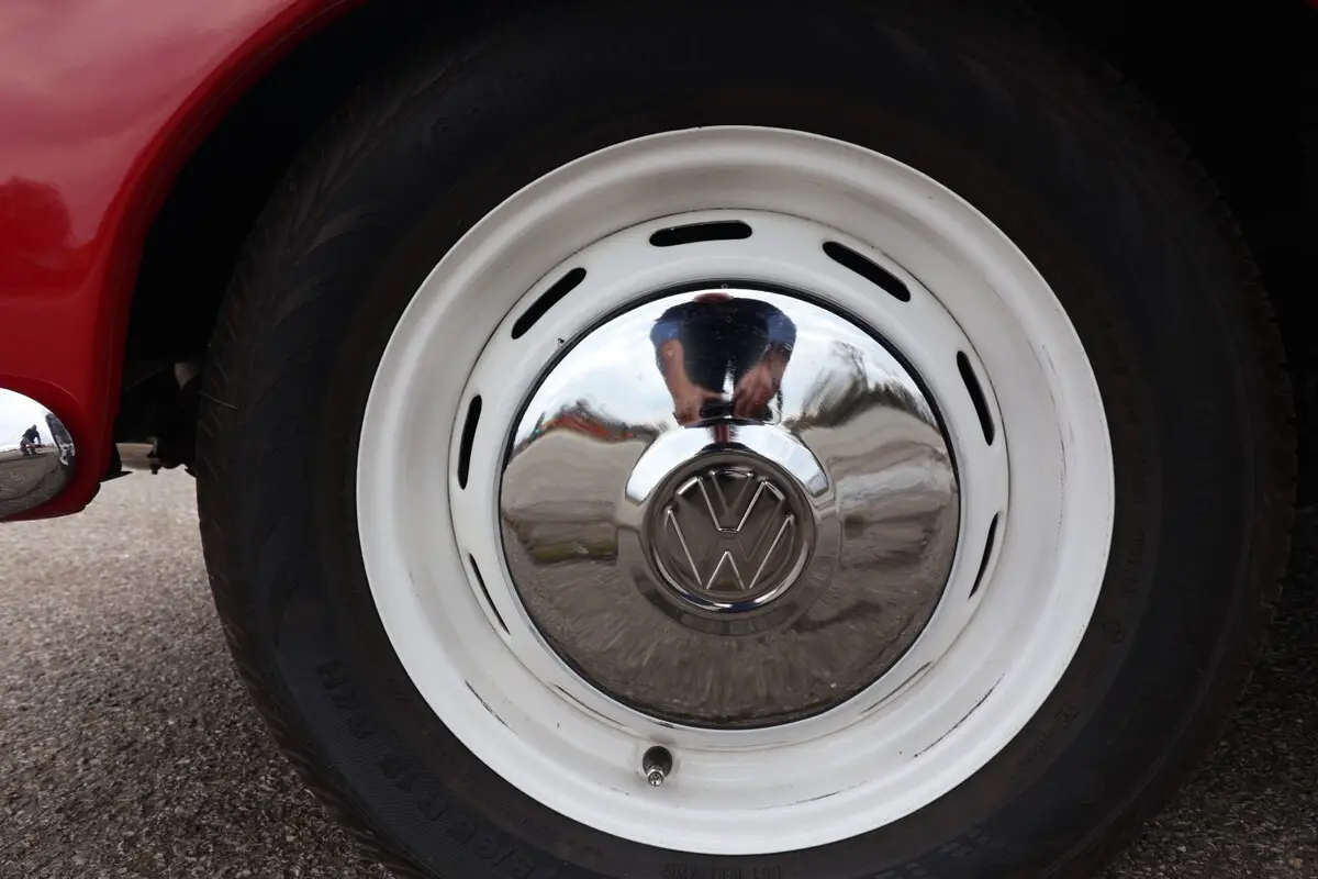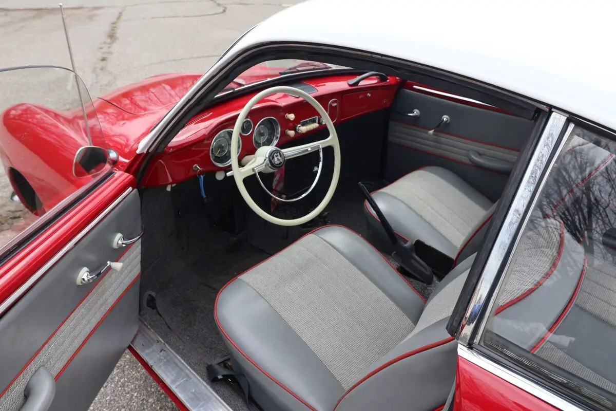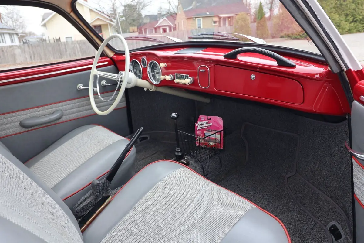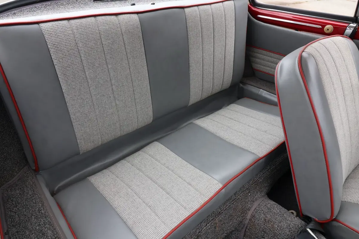Karmann made both coupes and convertibles for sale. Some call it the “Karmann Ghia Company,” but the German builder also made Volkswagen Beetle convertibles for sale. The most recent owner of this 1963 Volkswagen Karmann Ghia car for sale purchased the car twelve years ago. Shortly after their purchase, they commissioned a restoration of the car that, up to that point, had spent most of its life in Georgia. The restoration relied on a bare metal car repainted in bright red with a contrasting white roof. The restoration used modern gray cloth upholstery instead of black vinyl. It features bright red piping for a stylish look. They upgraded the old AM radio. It now has new technology and includes an FM band. Passengers can enjoy listening to it through the modern dual cone speaker set into this Karmann Ghia’s dash space. They replaced the old 36-horsepower engine with a newer 1500cc one, which should produce about 50 horsepower. They also upgraded the electrical system of the Karmann Ghia to 12 volts.