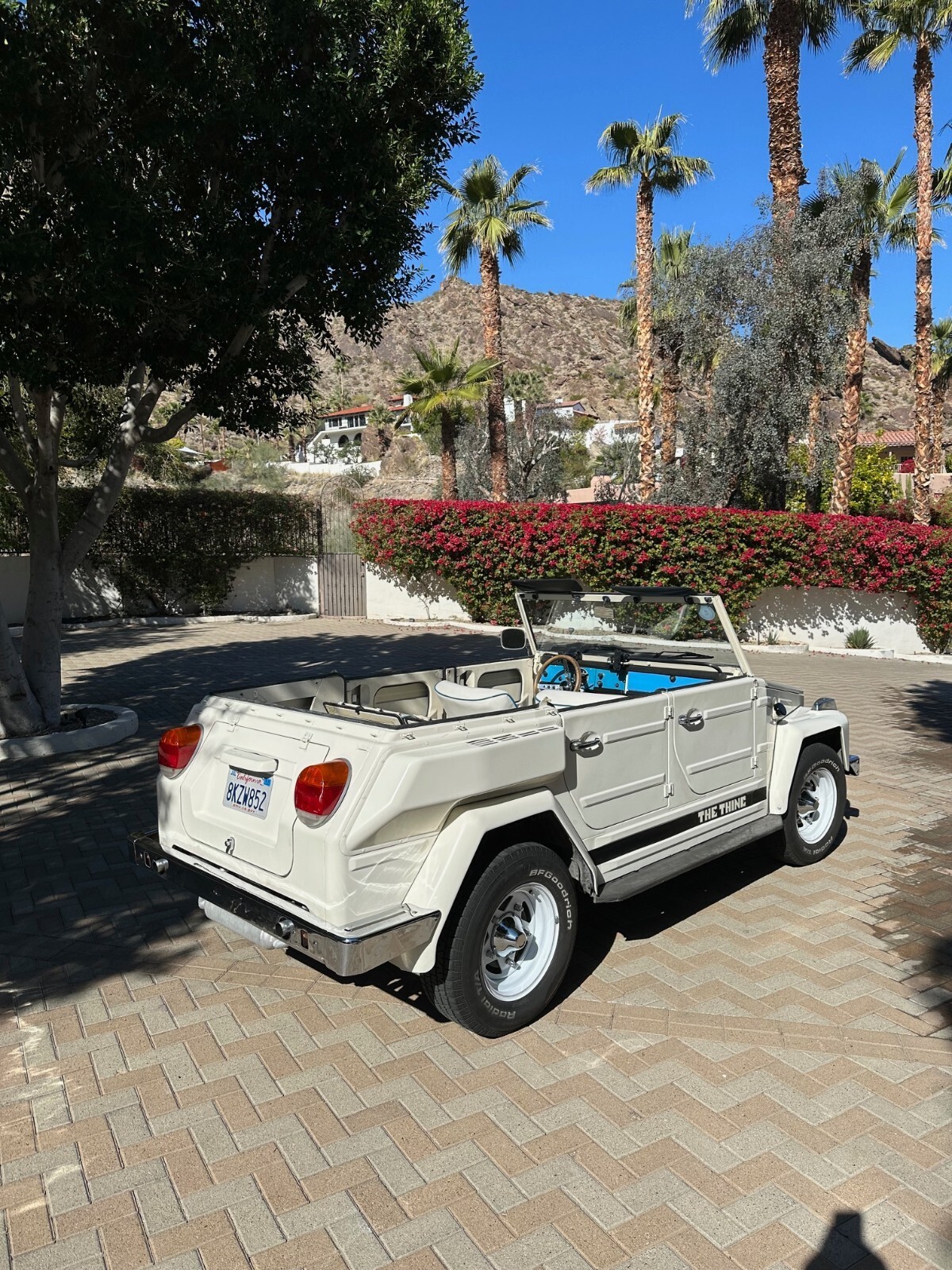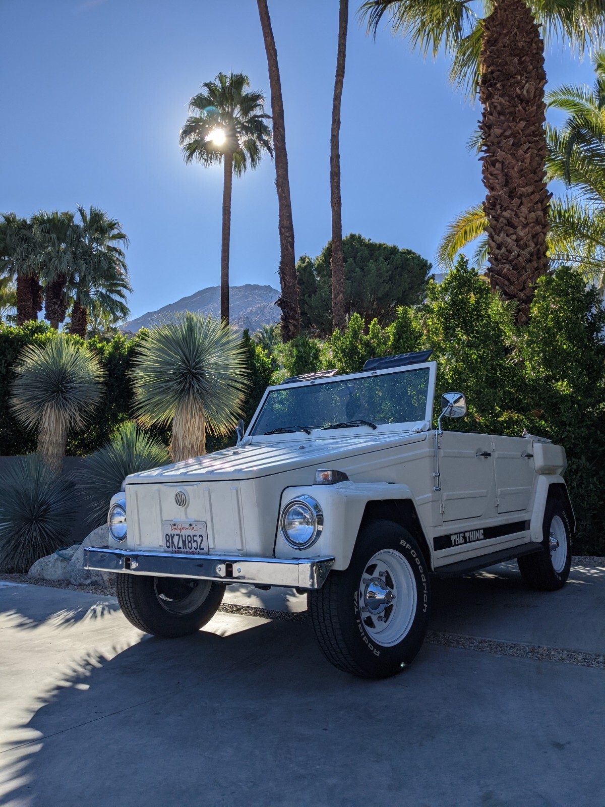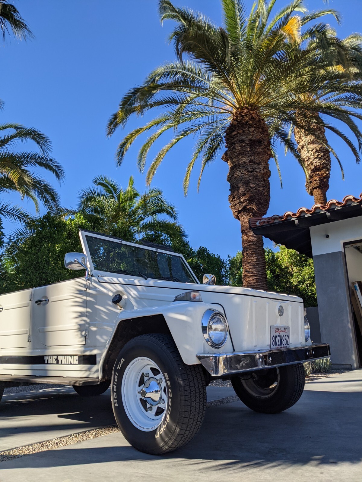 I bought my 1974 VW Thing in 2019 and shipped it from a car Museum in St. Louis, MO to Palm Springs, CA where it has been ever since. I was told that it was owned by a Major League Hockey player with the St. Louis Blues who was downsizing his collection and placed it with them on consignment.