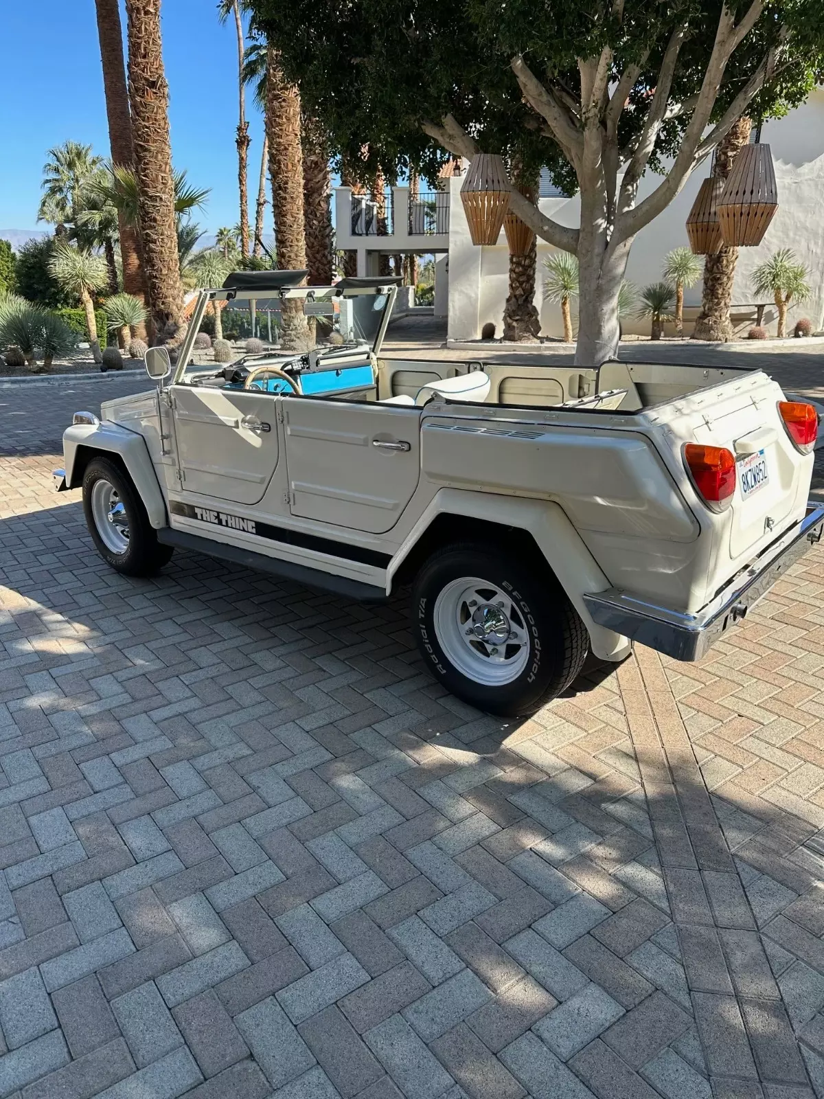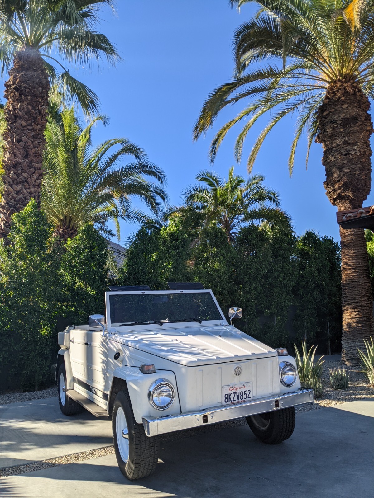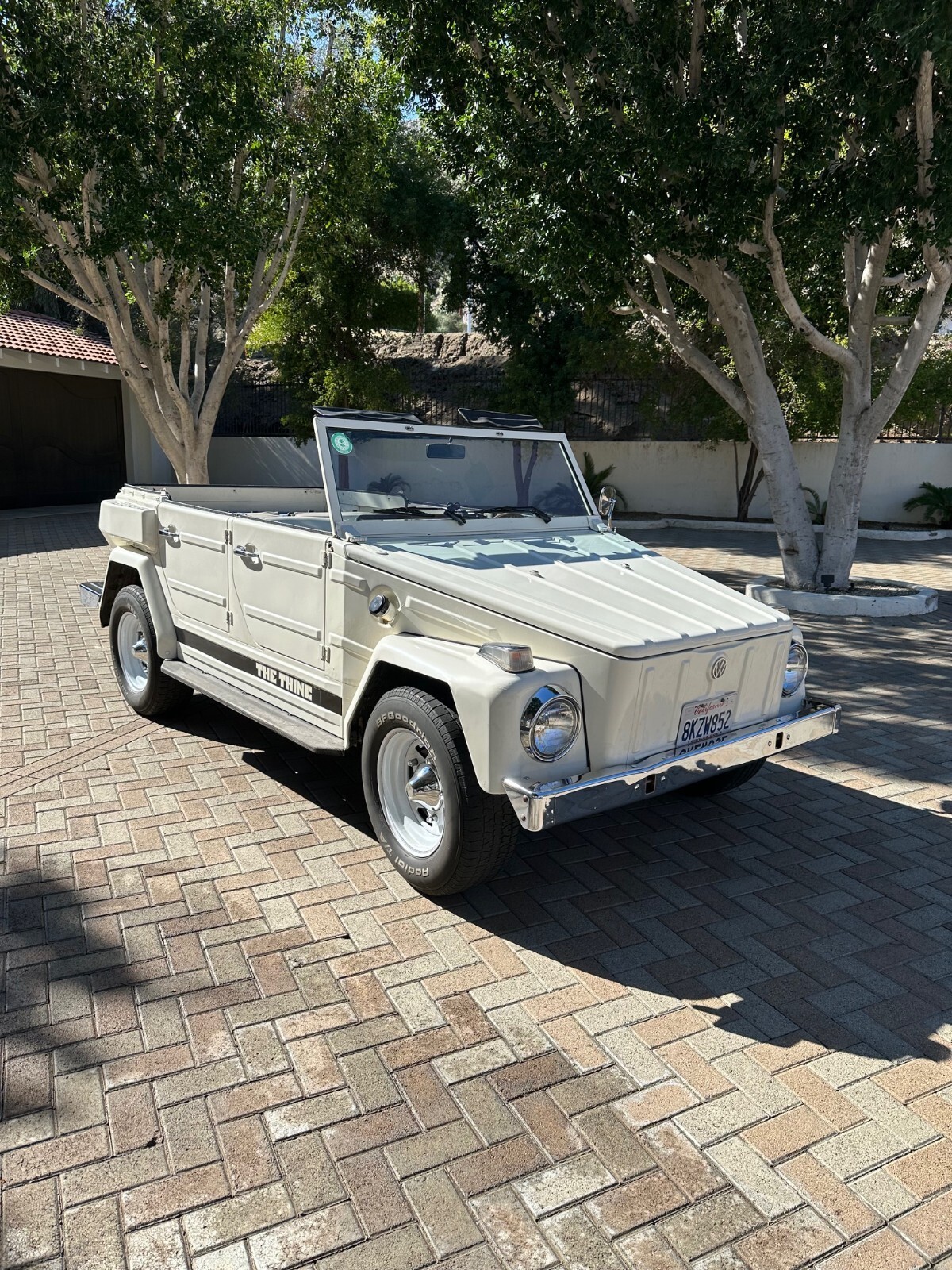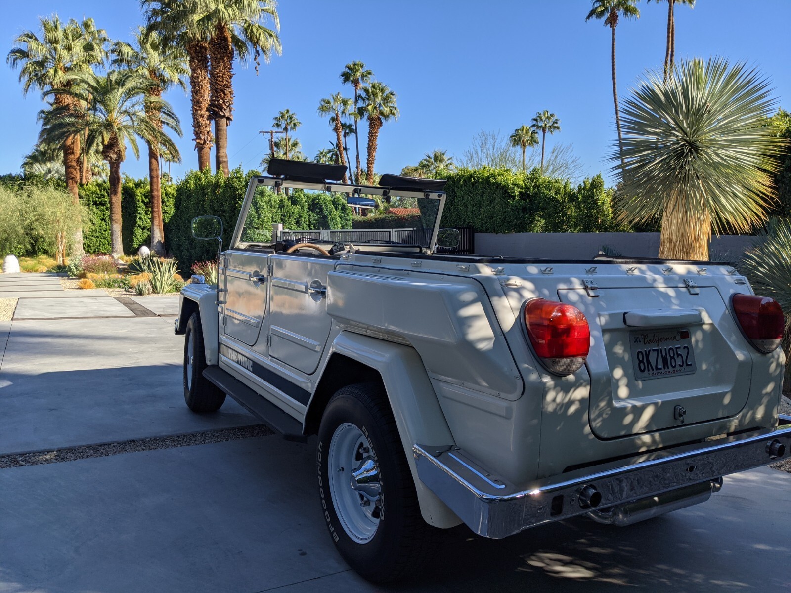 I bought my 1974 VW Thing in 2019 and shipped it from a car Museum in St. Louis, MO to Palm Springs, CA where it has been ever since. I was told that it was owned by a Major League Hockey player with the St. Louis Blues who was downsizing his collection and placed it with them on consignment.