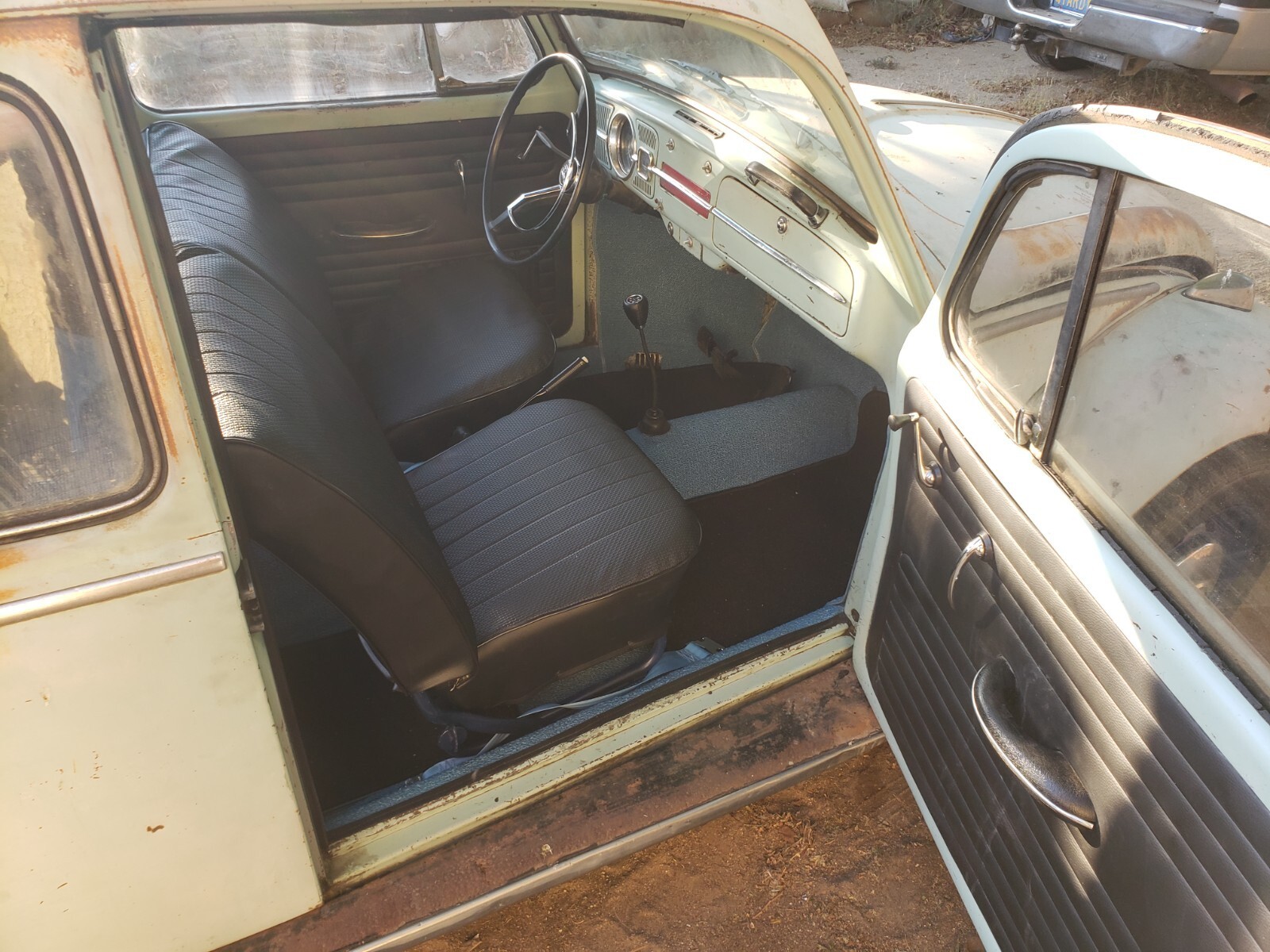 Regarding the interior, the car has new "tar boards" under the carpet, new carpeting throughout, new front seat covers and new front seat cushions. (Please note, the front driver's seat seemed a little wobbly, and I identified a small piece of metal missing at the bottom of the seat. The seat appears to work fine, but the new owner may want to address this. (I will point it out once we meet). New visors, new door panels, new seat belts, a new back seat cushion and back panel. The rear seat has a small "ripped and glued" area near the front edge. Nothing too bad, just wanted to point it out. I have a set of new rear seat covers, that I will include with the purchase, so the new owner can replace the cover, (if so desired). Rear backrest is not bolted in yet, but I have included the bolts required to do so (should be in glove box). The headliner is a little worn but nothing too distracting. The glass is all intact, but the driver's window, although easily lowers, has a hard time going back up. It seems like the gears are slipping or something, and you may need to help it a little to get it closed. I'm sure an easy fix, I just didn't get around to fixing that yet. Also, one of the "wing window latches" is missing. I have placed two new ones in the glove box, so all the new owner needs to do is drill out the rivets on the old ones and replace the new ones with screws.