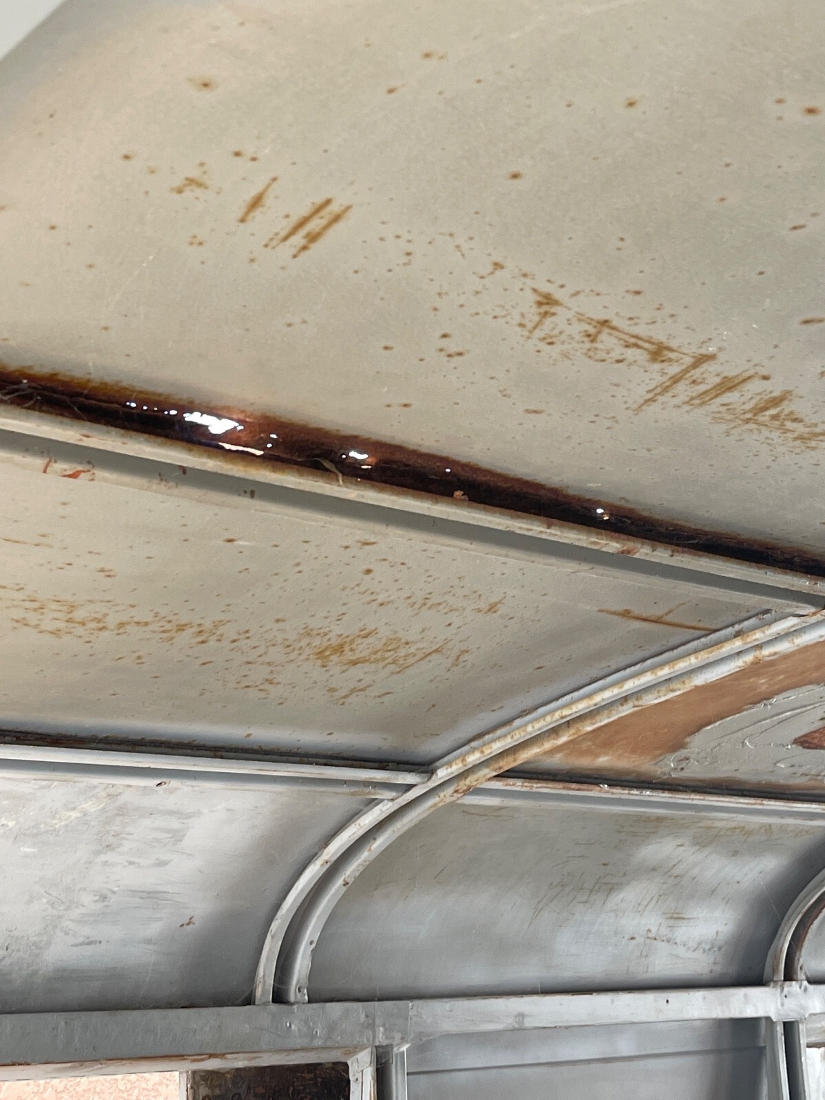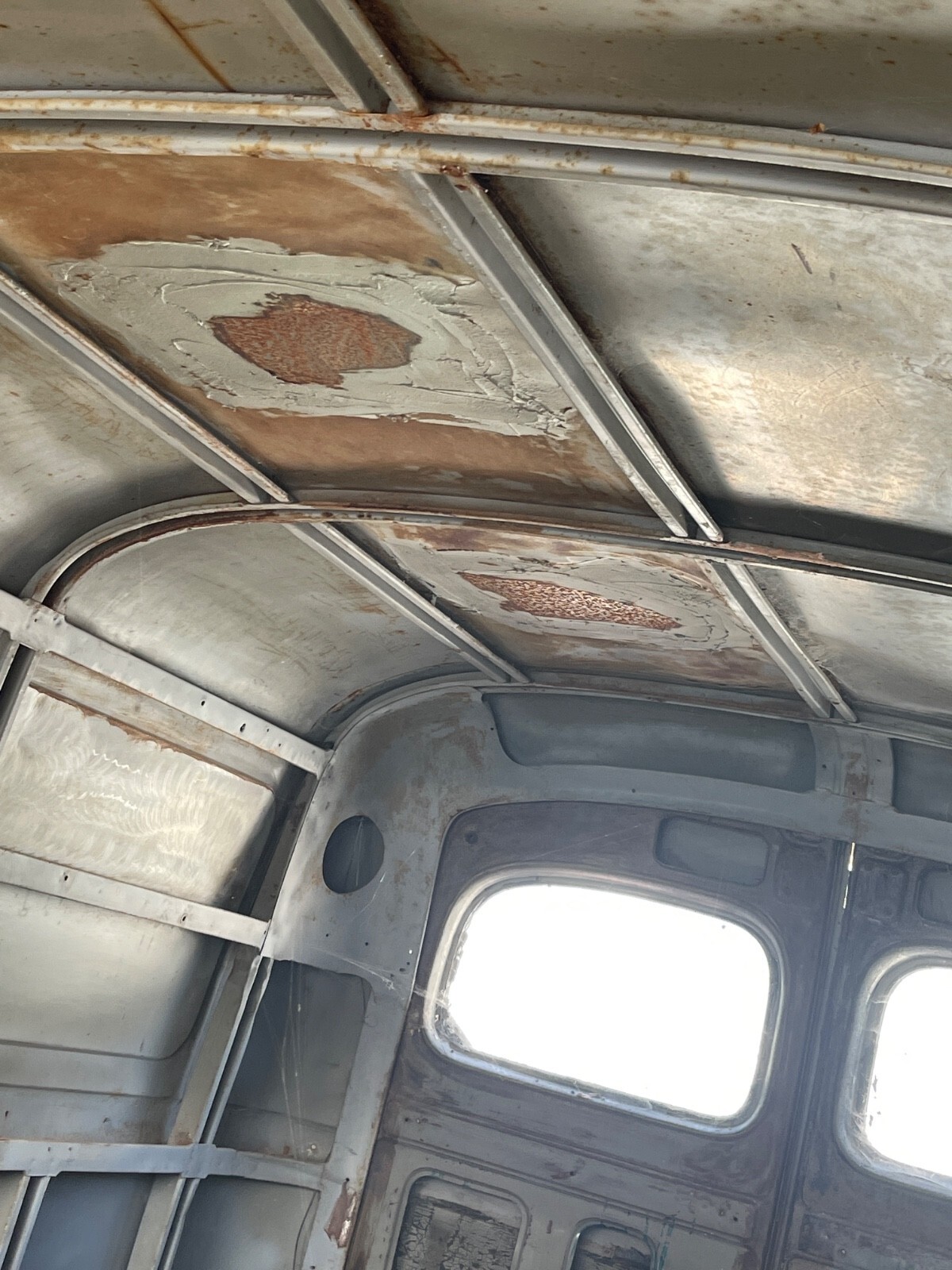 It is pretty straight just a few dents and dings, normal bumps and bruises and probably 98% rest free There is a little spot in the roof in the center along a rib support that has some rustBut all the floors and everything else are really nice