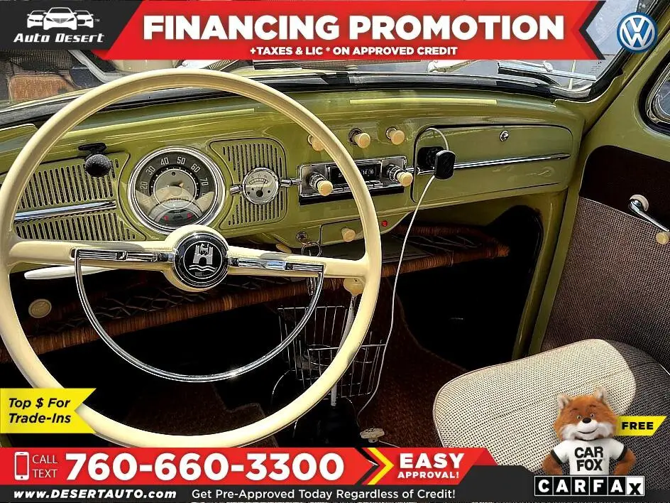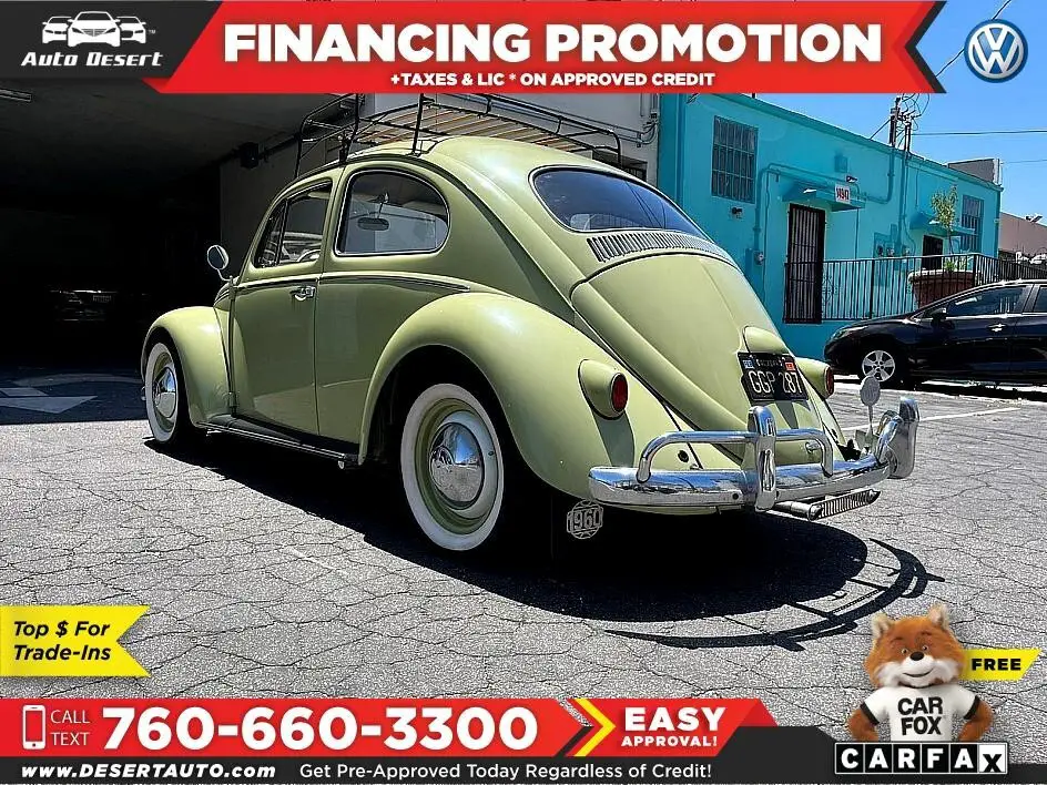 1960 VW Beetle. This 1960 Iconic Beetle is a true example of the 60s master piece engineering. Impeccably restored| this car is a true one of a kind in outstanding condition. Attention to detail in the restoration inside and out it also has a custom sound blue tooth ratio designed after the original radio looks with amplifier| 4 speakers and a subwoofer.. Free of any cancerous rust| this VW Beetle is slathered in a gorgeous Beryl Green| and a roof rack with wood slats sits atop the roof. Chrome wheels with center caps wrapped with BFG whitewall rubber.. Powering this beauty is an aluminum case engine equipped with big valve cylinder heads. Shifting is provided by a smooth 4-speed manual transmission.. This Vehicle is in our other store located at 14961 Ventura Blvd| Sherman Oaks| CA| 91403... Read the full description on our Website at: