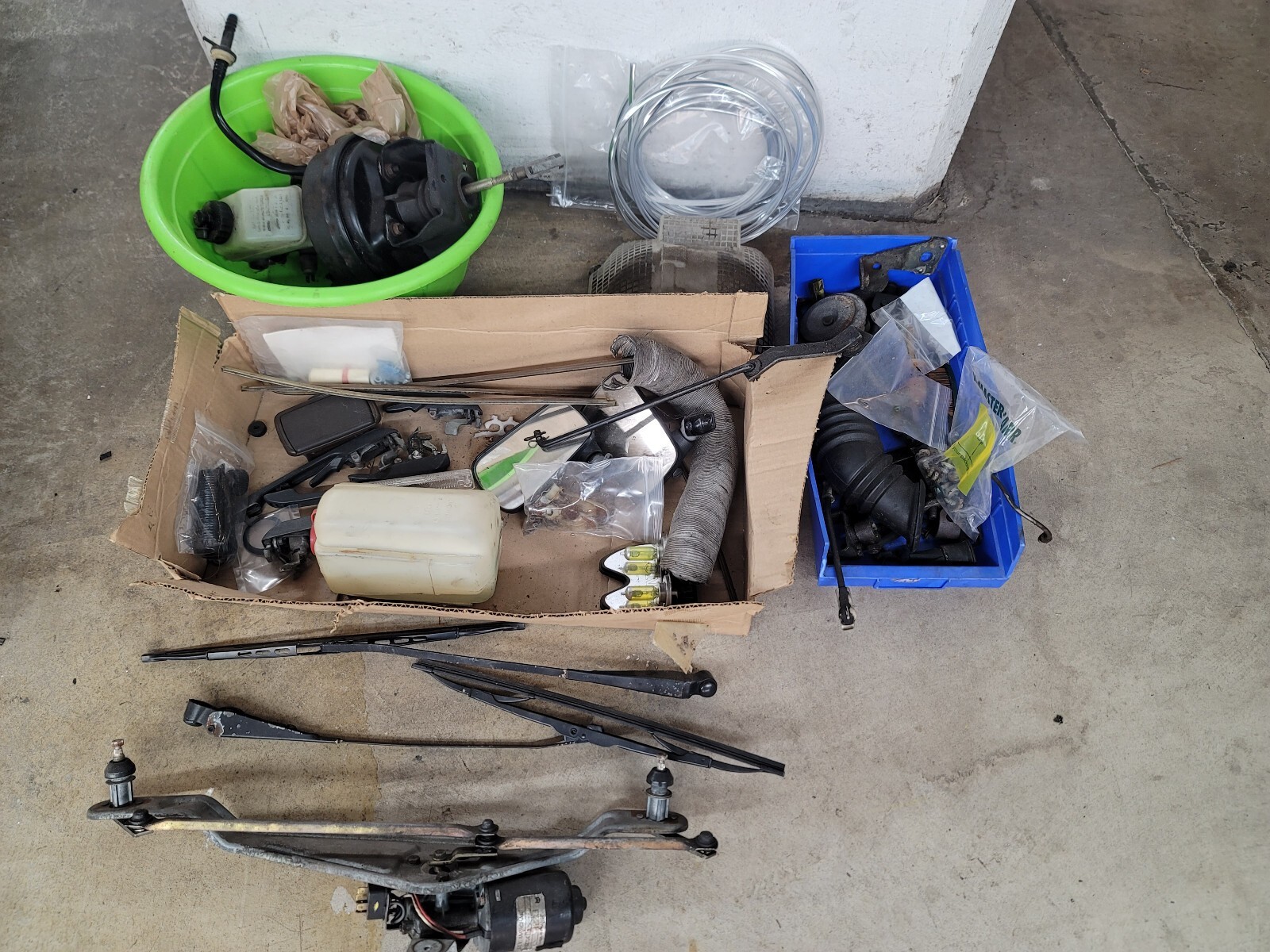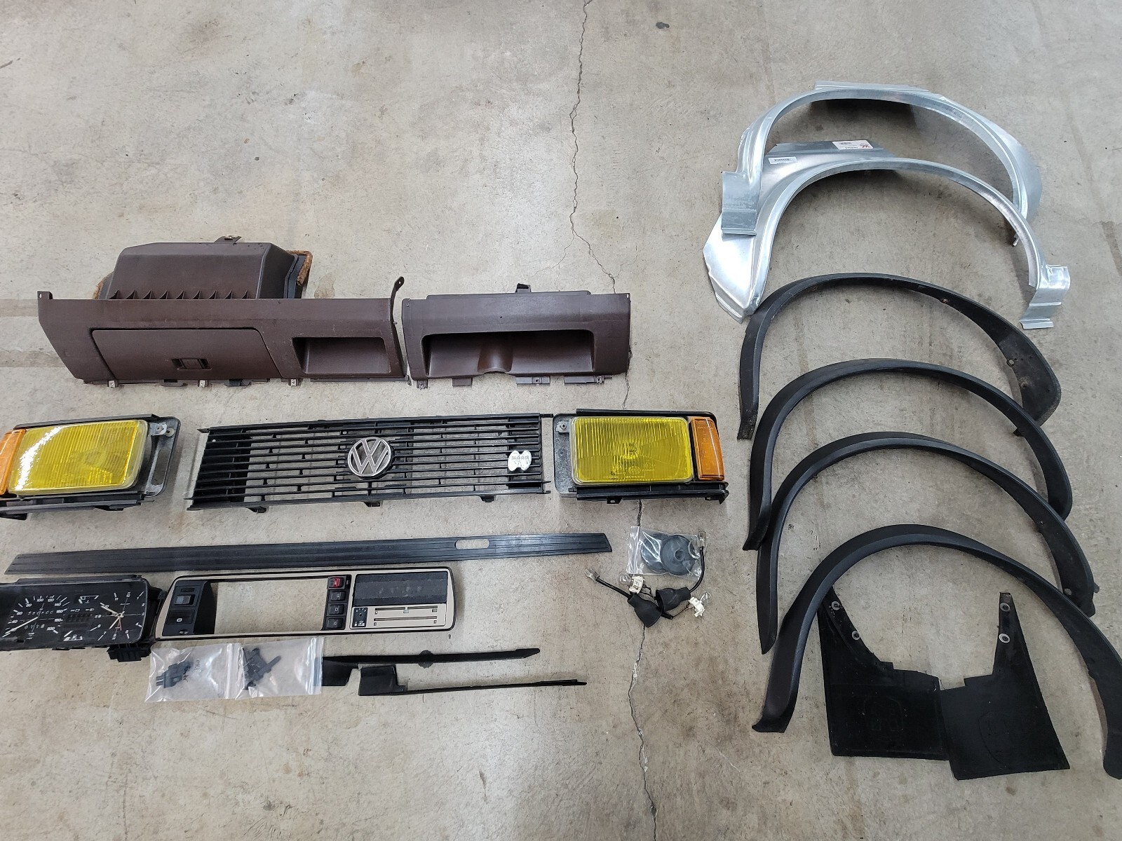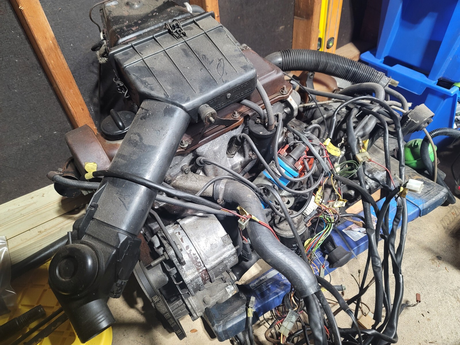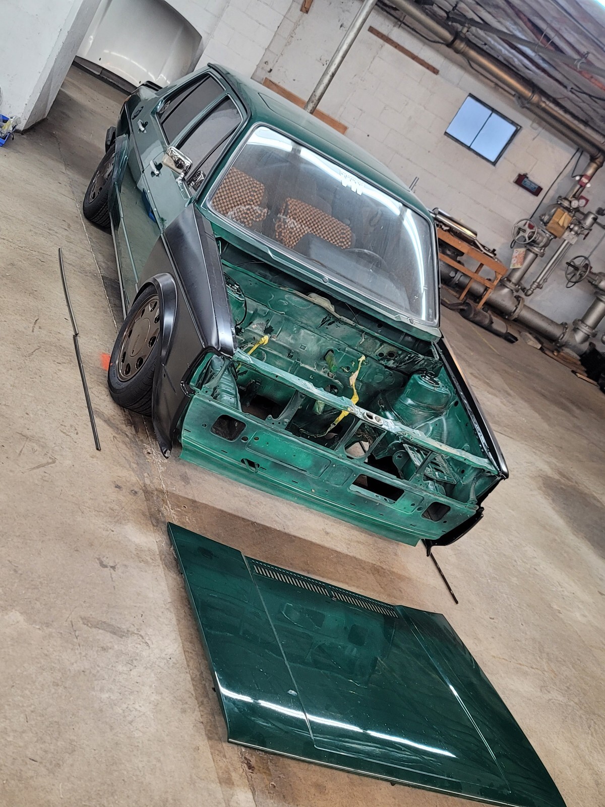 The car was taken apart around 2021 with the plan of painting the engine bay, fitting new fenders, and addressing some minor rust areas. Some rust developed under the rear plastic arches and some rust near the trunk latch. New rear arches and a new trunk latch area from a donor included for the rust repair (The new front fenders just have two bolts in them and are not properly fitted in the photos so they are sticking out quite a bit). No other rust issues underneath or otherwise. Ran and drove fine before the teardown, original motor and transmission would be included. I intended to swap to a newer motor but I kept the wiring harnesses and accessories all in tact when it was removed. The motor is a carbureted1.6l and manual 4 speed transmission.