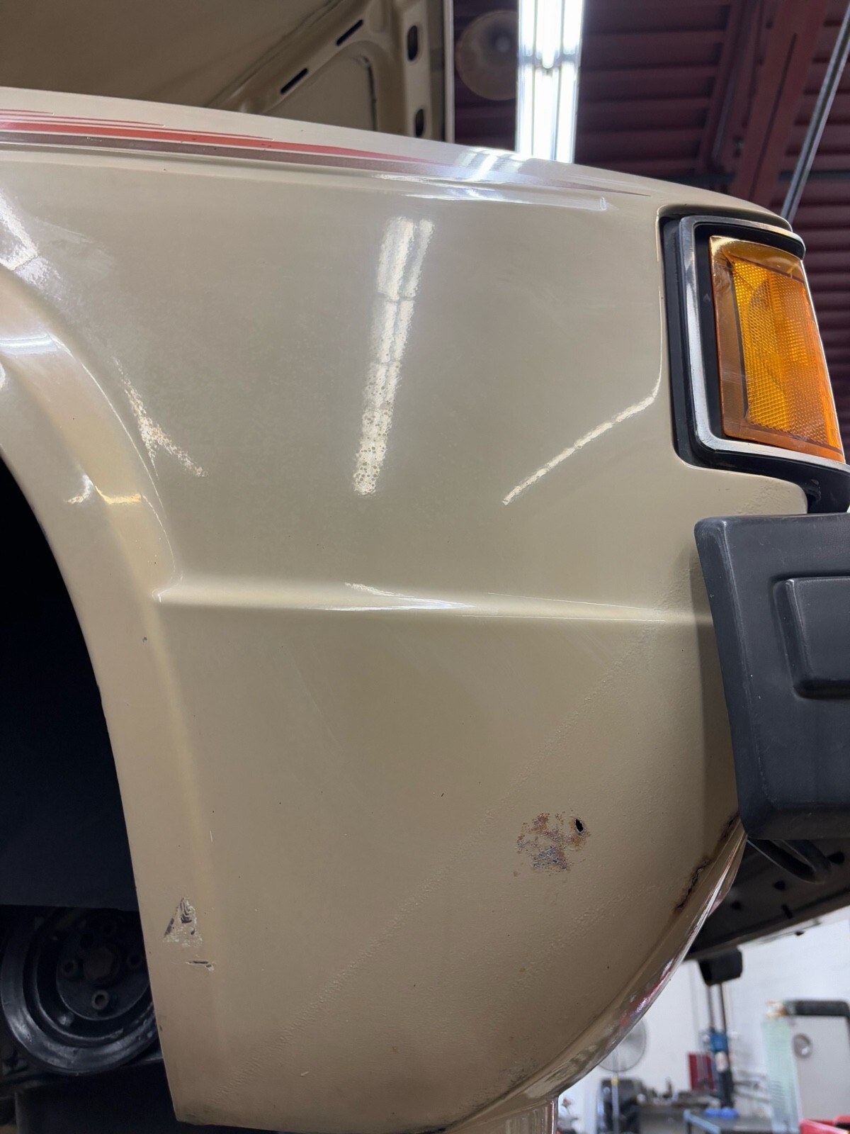 Originally titled in Maryland, it came to PA in 1987. This original truck has a 1.7l gas engine and a 4 speed manual transmission. It has power brakes and does not have a/c or power steering. Recently (within the last year) replaced parts included Bosch fuel pump, Bosch fuel accumulator, fuel filter, front complete Sachs struts and spring assemblies, rear KYB shock absorbers, rear brakes and hardware, right front inner tie rod and rack boot, ignition switch, all CV boots, front engine mount, turn signal switch, and 4 Hankook tires. Known problems with this vehicle are; Thermo-time switch is faulty causing cold start valve to not operate, fuel pickup in tank is faulty causing engine to lose power on right hand turns when fuel level is below 1/4, fuel pump relay has been replaced with a 30 amp load relay due to original relay not available, and the front brake backing plates are rusting.