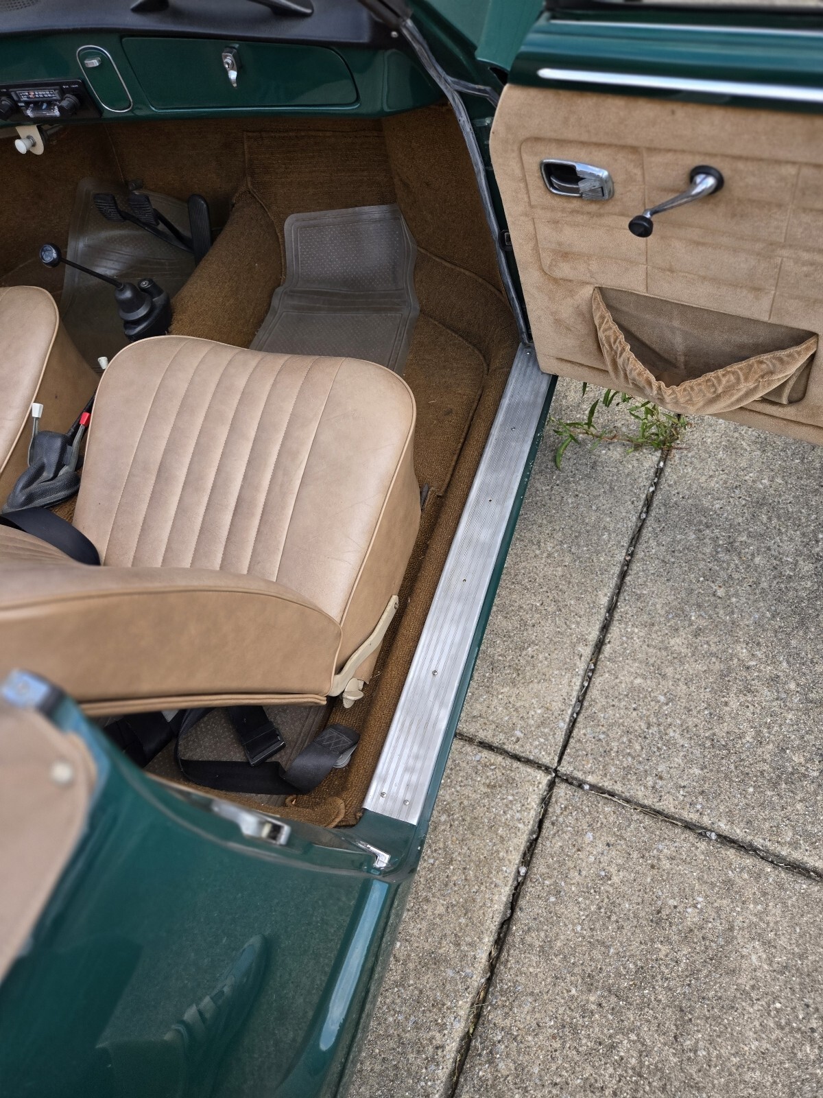 The ghia wss purchased from a restoration icon oyt of Washington state. He customized the car basicly by removing most of its chrome moldings. He wanted to show its true lines of the body itself. He painted it British raceing green. An British leland color. Then put in leather tan interior. The engine was gone thru. Further to prove it would be reosd worthy He drove thr car to its new owner located in Indiana. The past owner has owned it since 1990. And it wss her baby. A 35 year love affair. She kept all maintenence up to date and drove it 25 miles to my shop. It runs and drives as good as it looks. It does have a couple small paint blemishes, but nothing major. The car it ready to drive wherever.