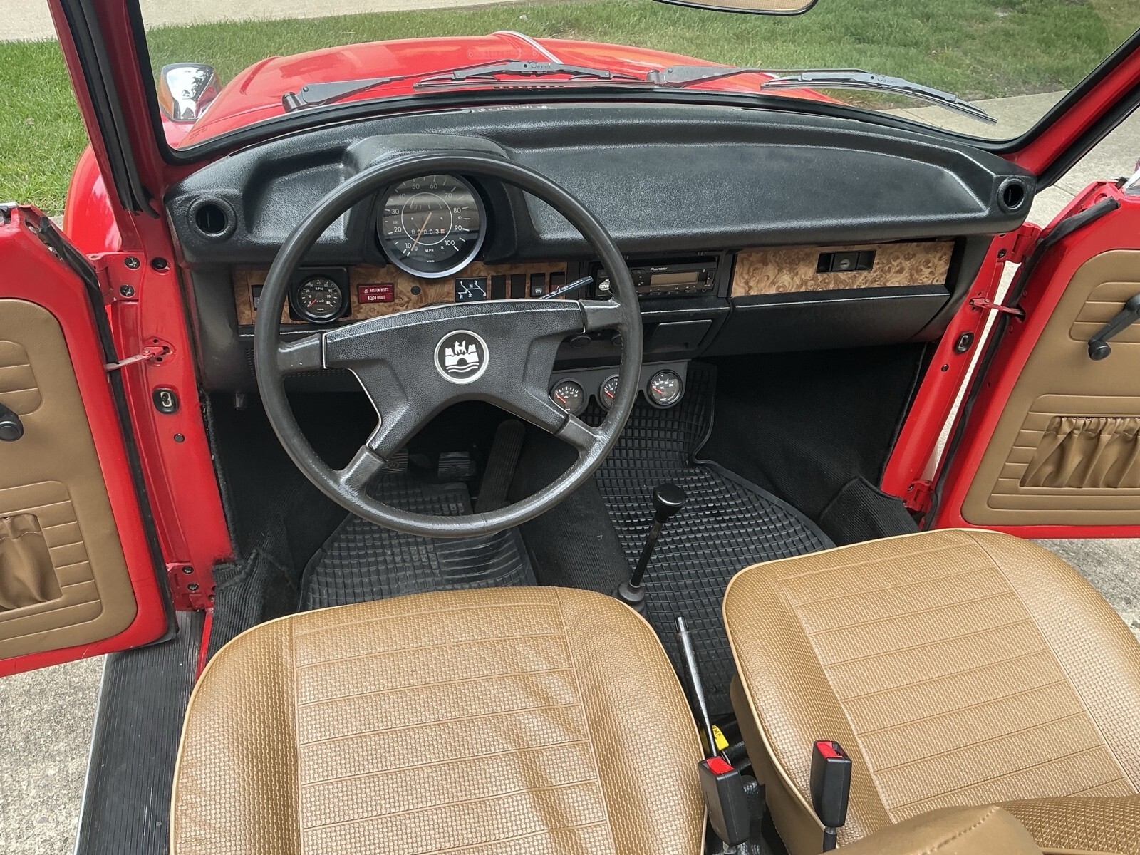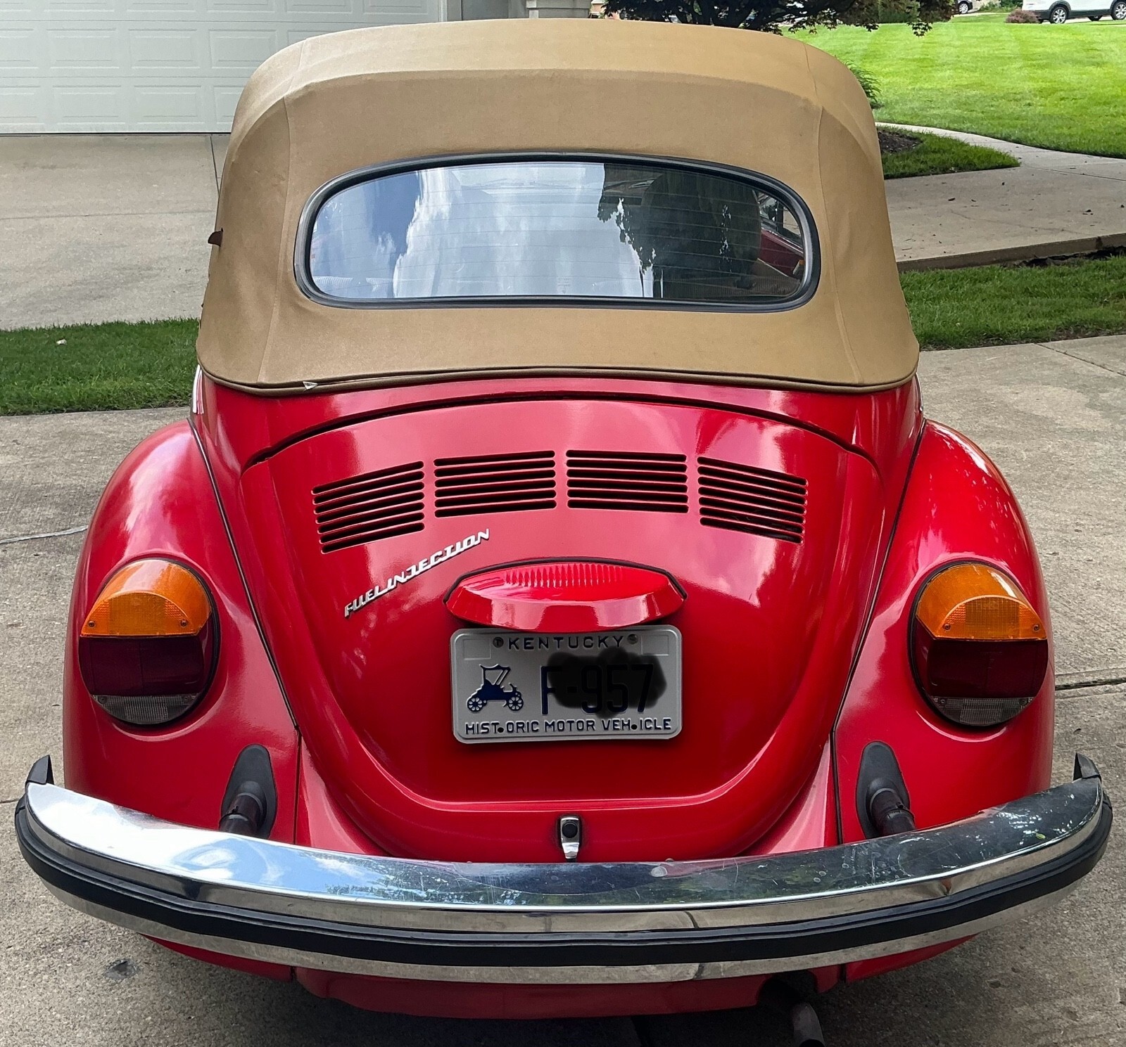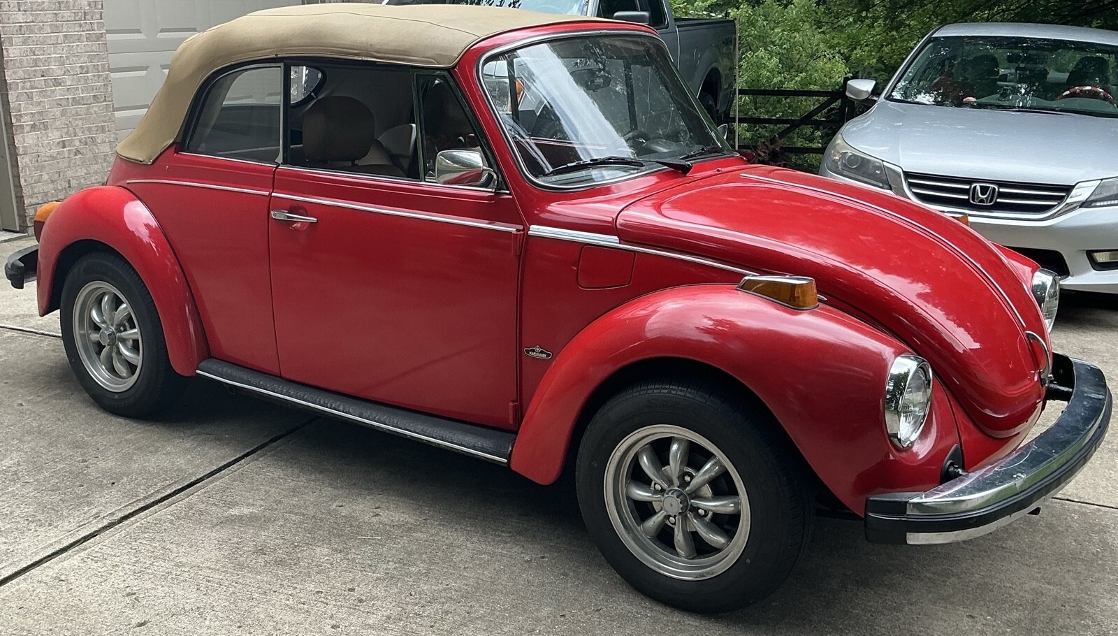VW Super Beetle in red with tan interior. The car body, paint and floors were restored around 10 years ago, and the interior recently with new seat covers, carpet, door panels, etc. The car was originally yellow but the color was changed to red. The tan top has a small tear but I am including a new uninstalled white top which can replace the tan top. The car has been well maintained and had recent new clutch, pressure plate and several new gaskets while the engine was out. Also installed were new heads as the original heads and valves needed upgraded and new fuel pump, injectors, pertronix ignition. Also the front end suspension and steering have had new seals and bushings installed and then aligned. The interior has installed tach, voltage, temperature, oil pressure gauges and am/fm radio. The heat system has been repaired and useable as this feature is not always working in several older Beetles I have observed so you can drive it year round. Very fun to drive and easily keeps up with traffic 65 mph and under on back 2 lane roads where I have driven it the most. I am also including a new rear drivers fender as a deer ran into the side and current fender is repaired by average at best. Probably other upgrades that are slipping my mind. Item is sold “as is”. Will assist for transport and car is located only 1 mile off I75 in Northern Ky.