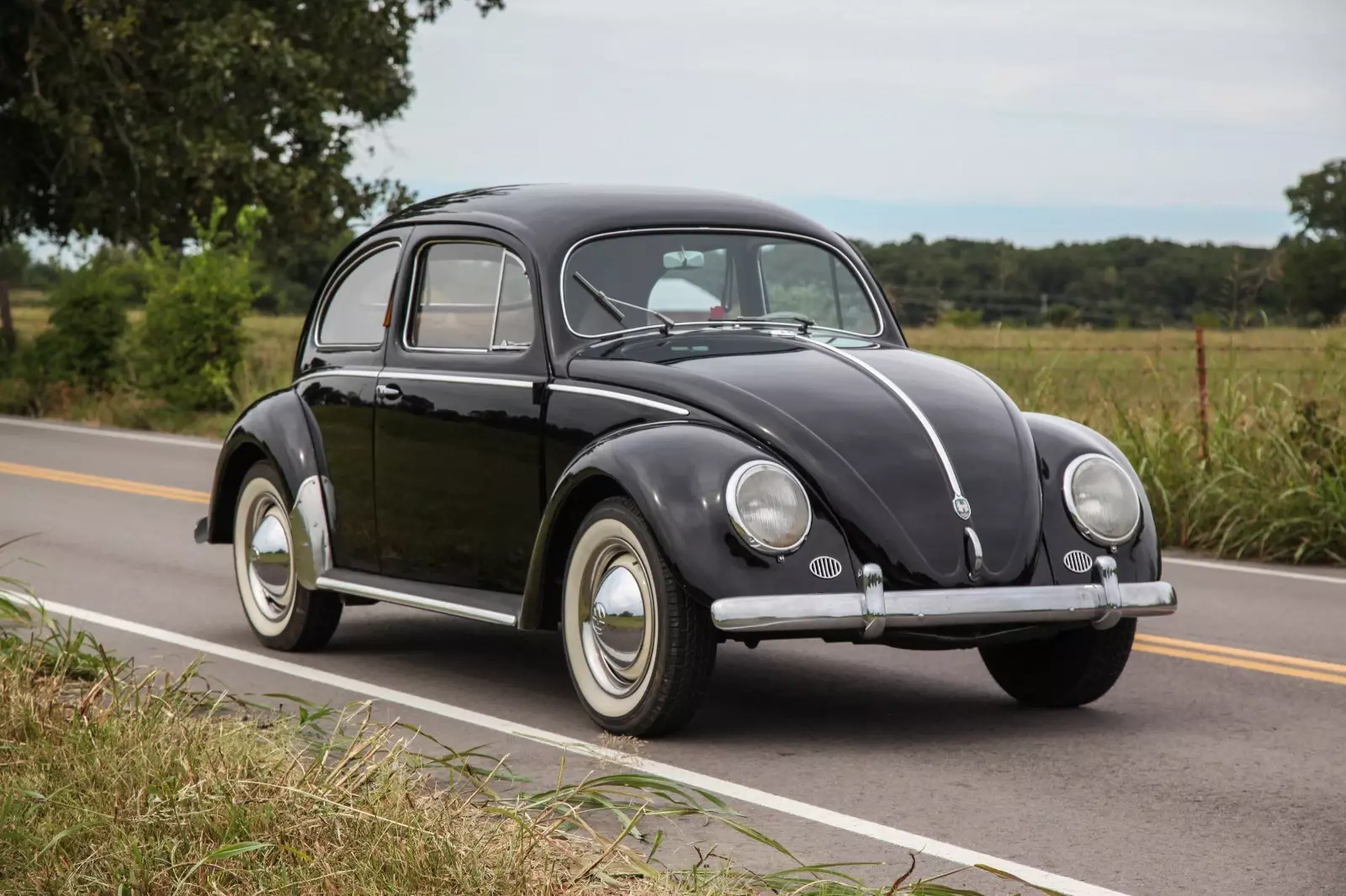 Up for sale is this beautiful January 1955 European Beetle Sedan. This Beetle was delivered new in Sweden and has all the proper European features such as fluted headlights, semaphore turn signals, and a KPH Speedometer. This 55’, although wearing an older re-spray, features a nearly 100% original interior! When we received this car, the door panels were red and when we went to remove them we discovered the original door panel material perfectly preserved under the red vinyl! Needless to say, we were very excited about this discovery. The seatbelts appear to have been added early in the cars life, possibly even in the 1950’s. They are stamped “Made in Sweden”. One other unique detail is a small plaque that is mounted to the drivers side inner front fender era (pictured) and it states the original owners name as “Karl Fagerström” from Norrköping Sweden.