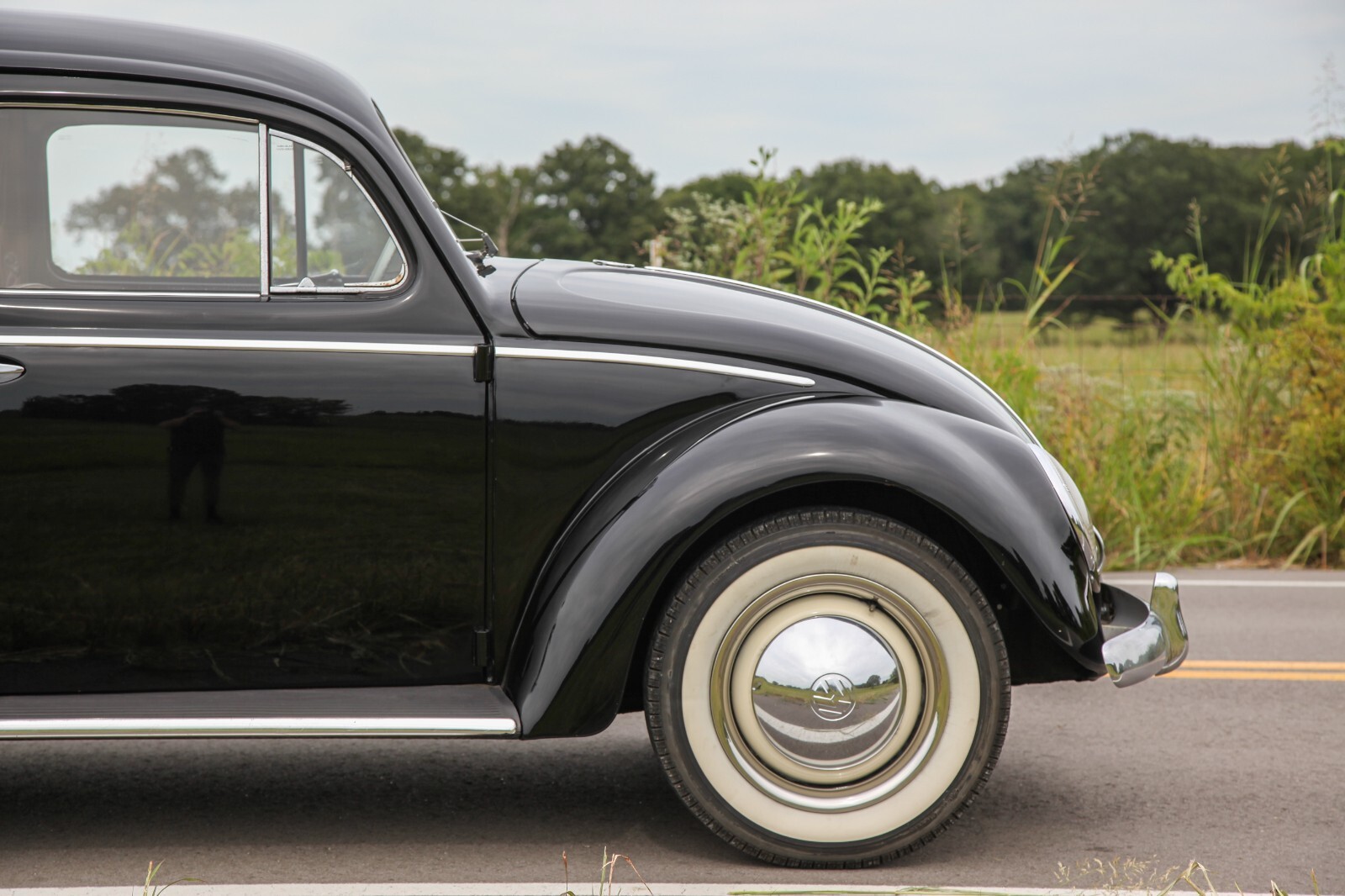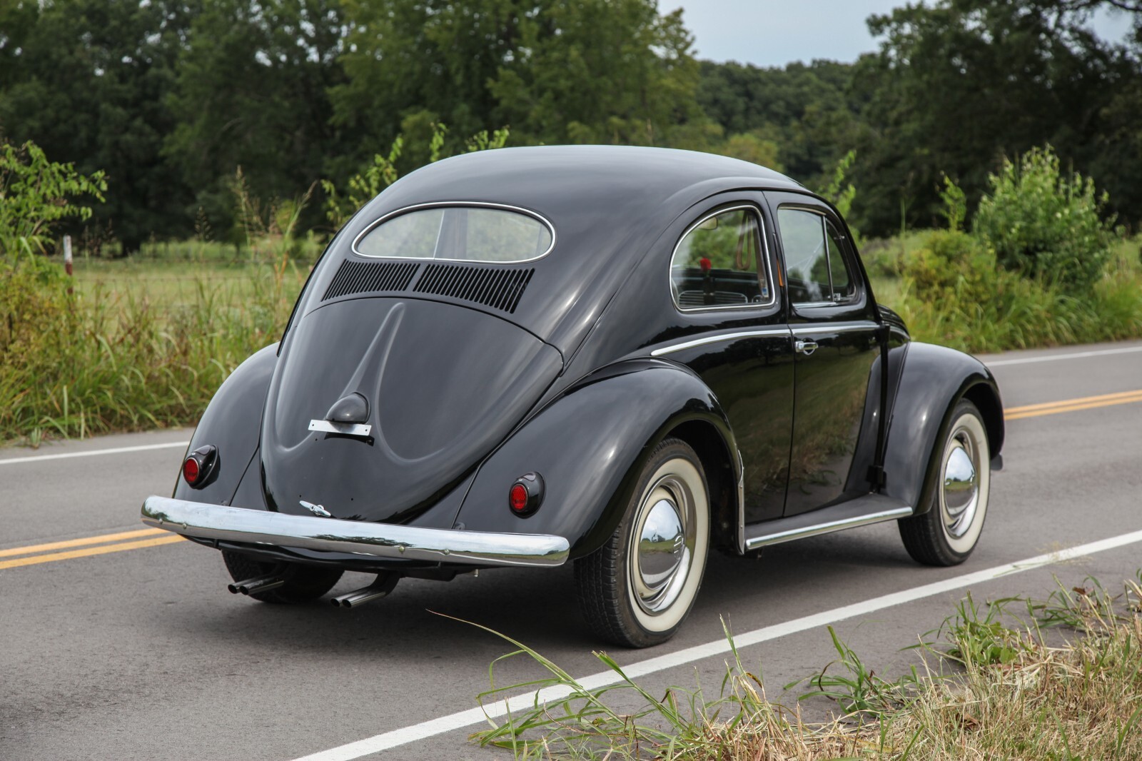 This 1955 Beetle features a numbers matching body and pan that have never been separated. The current engine in the car is a 36hp with a Big Bore kit and Abarth style muffler that was built by Joe Ruiz, Mr. Okrasa, and it is absolutely dialed in! (original engine INCLUDED in the sale, but needs rebuilt) Everything on the motor has been rebuilt or restored. No expense was spared! Starts easy, revs smooth and pulls VERY hard….for a 36hp. The original split case transmission is still in the car are shifts exceptionally well. I have driven many 36hp/split case trans cars over the years and this one drives the best, hands down! No grinds. No crunches…even on the down shifts! Aside from the motor and transmission, the brakes have been completely gone through with all new master cylinder, german wheel cylinders, soft lines, shoes, hardware, etc. The tires are new Coker radials. The shocks are new. The king and link pins have all been rebuilt. All new tie rods. New steering box. New gas tank. Fresh alignment. Every things work as it should from the dome light, to the horn, semaphores, lights, wipers, etc! The only item not working is the very cool early washer system with SWF plastic tank.