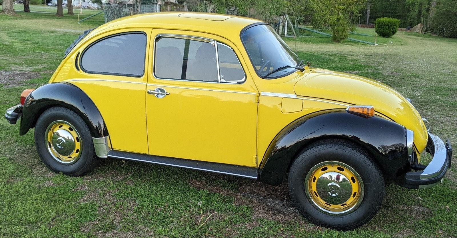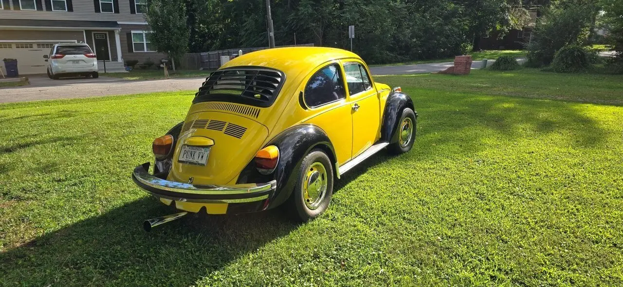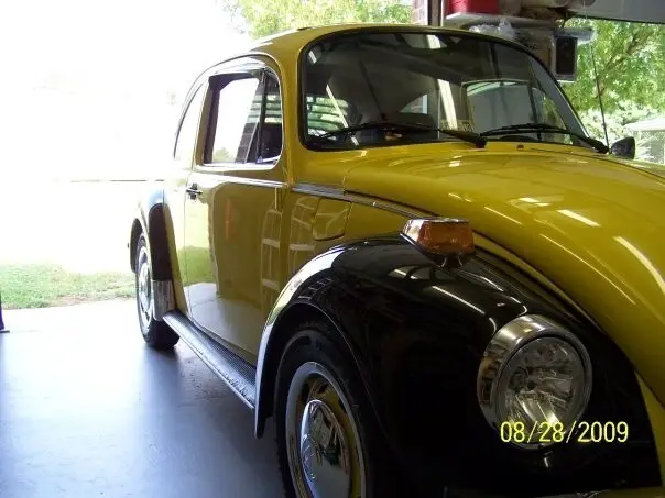 1974 Super Beetle. Yellow with Black fenders. The odometer stopped working shortly after we purchased it. Did not bother to get it fixed, no reason other than we didn't want no one to pull steering out. New transmission (with highway gear). Black felt ProCar Scat racing seats front & back. Front disc brakes. Factory Sunroof (no leaks). New struts. New Battery. Speed shifter. Stinger exhaust. Orig vw hubcaps. Tires good. 1600cc. New inspection. Lots of extras included. Radio stopped working years ago, Not sure why. 2 dr sedan. More info or pics, call HT 804-914-5885.