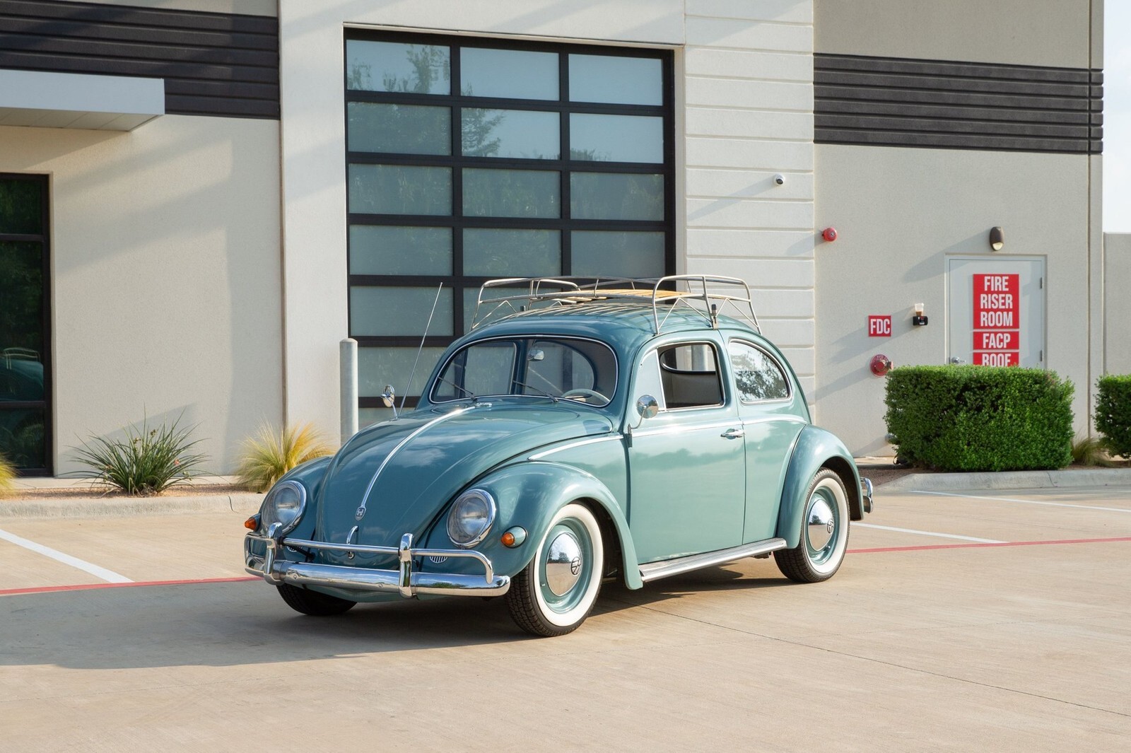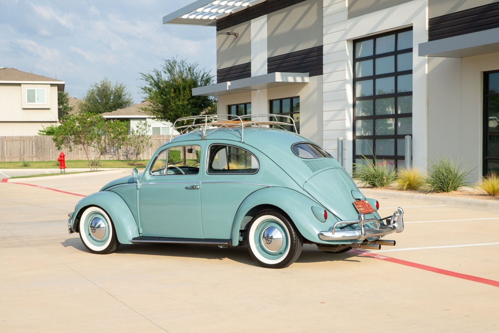 This 1957 Volkswagen Beetle Type 1 is a final-year Oval Window example that has been rebuilt and customized by Chirco Performance & Restoration in Tucson, Arizona. Finished in its original Horizon Blue with chrome trim and a roof rack, it combines period-correct styling with modern drivability through an upgraded 2276cc engine, suspension and disc brakes. A long-time Arizona car with just two owners, it is offered with extensive documentation and desirable upgrades throughout.