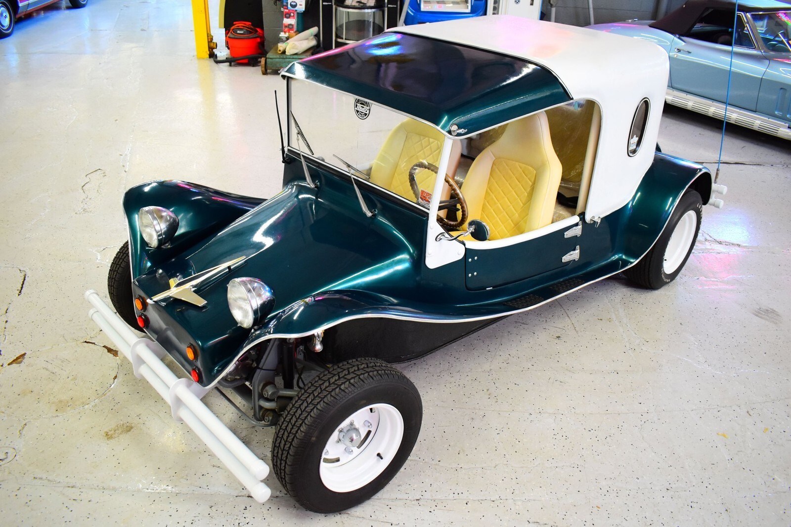 Offered for sale is a beautifully restored 1964 Volkswagen Dune Buggy Roadster, freshly completed and showing like new in every way. Finished in an eye-catching dark green paint with a white removable vinyl top, this buggy combines vintage style with modern craftsmanship and reliability.
