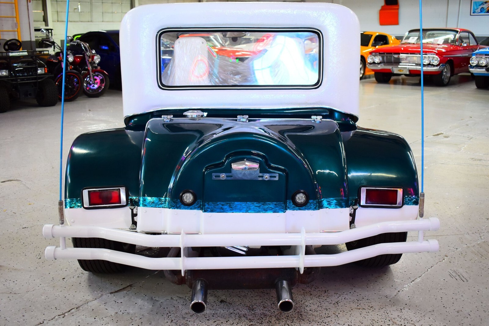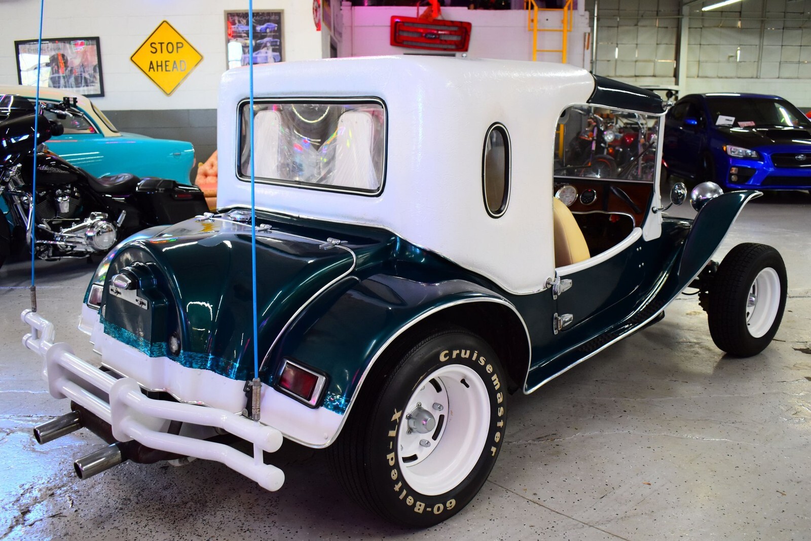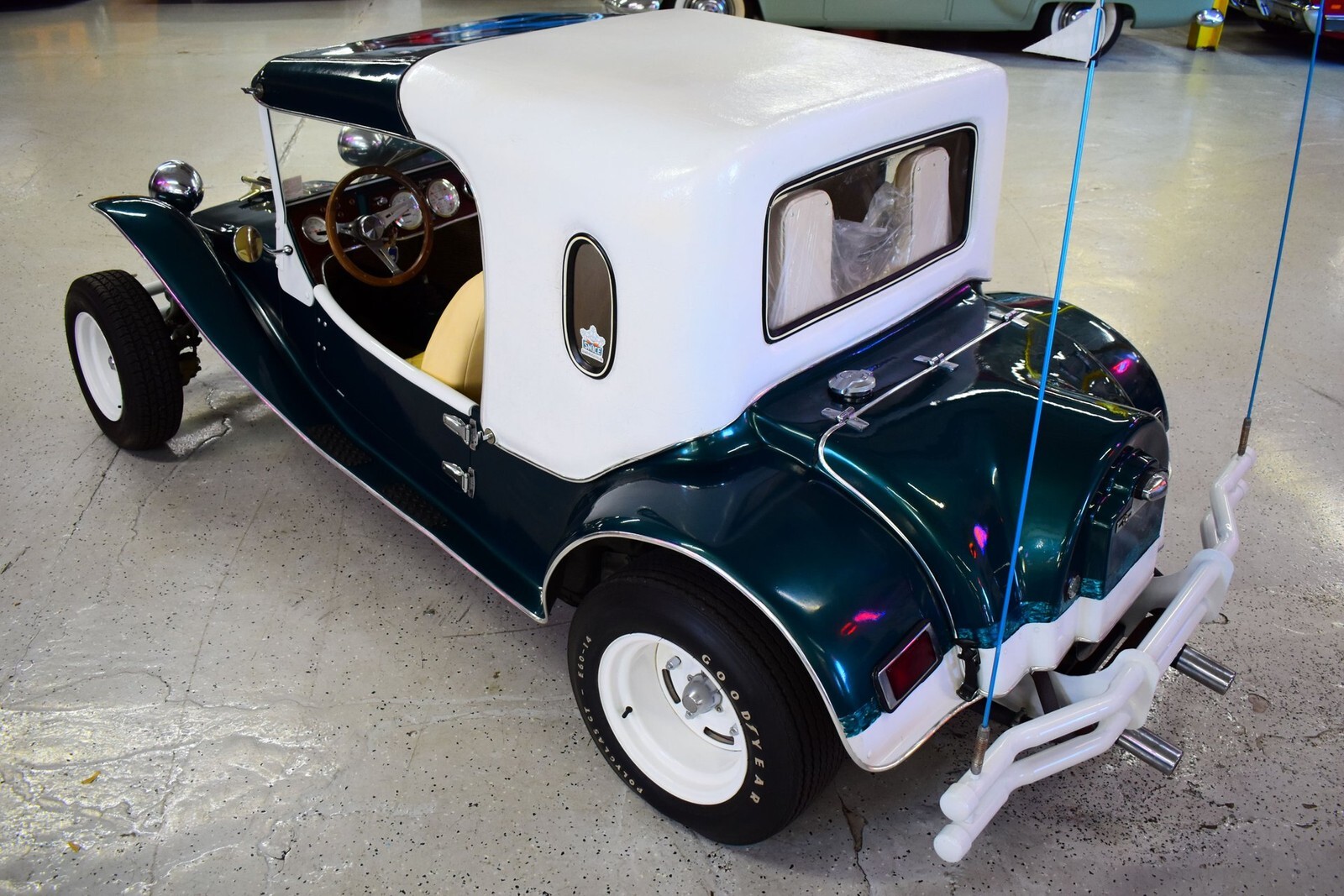 Inside, the freshly reupholstered white deer-hide leather bucket seats create a clean, vintage look. The interior features Dolphin gauges, mahogany wood dash plate, under-dash LED lighting, and an upgraded Boss head-unit stereo with premium speakers for modern convenience. A roll bar adds both safety and style, while a charging port in the rear seat area allows easy battery maintenance.