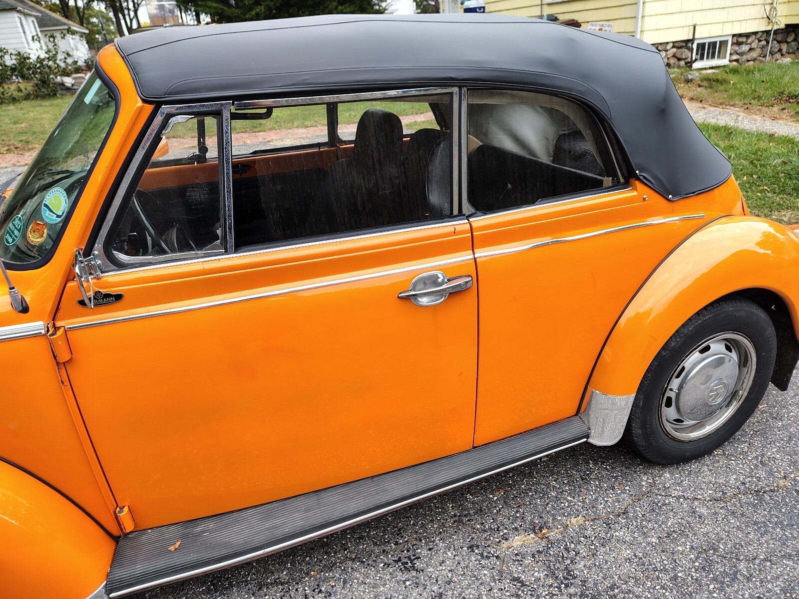 1974 Volkswagen super beetle . Runs and drives as it should. Brand new 2800 dollar top. Good tires. Runs and shifts well. Rebuilt motor about 8 years ago. Floors and pans in good shape. No major rust or rot. Great driver that turns heads where ever she goes. Only bad is the paint burn that happened about 8 years ago. Hate to sell but I don't have a place to keep for winter ... Comes with extras.. car cover,bra, convertible boot. Paperwor, manuals and tow dolly with mounts already installed!!!