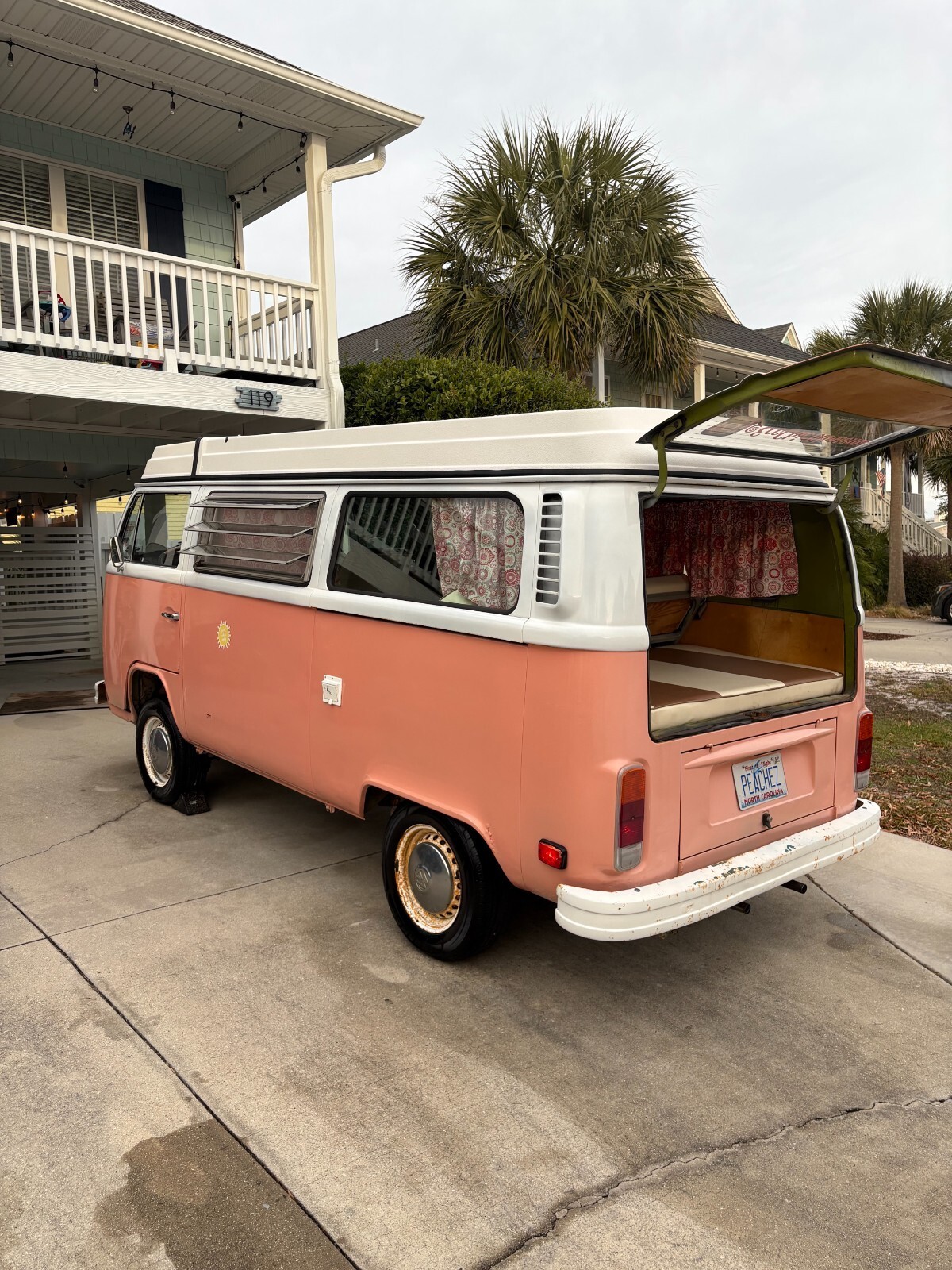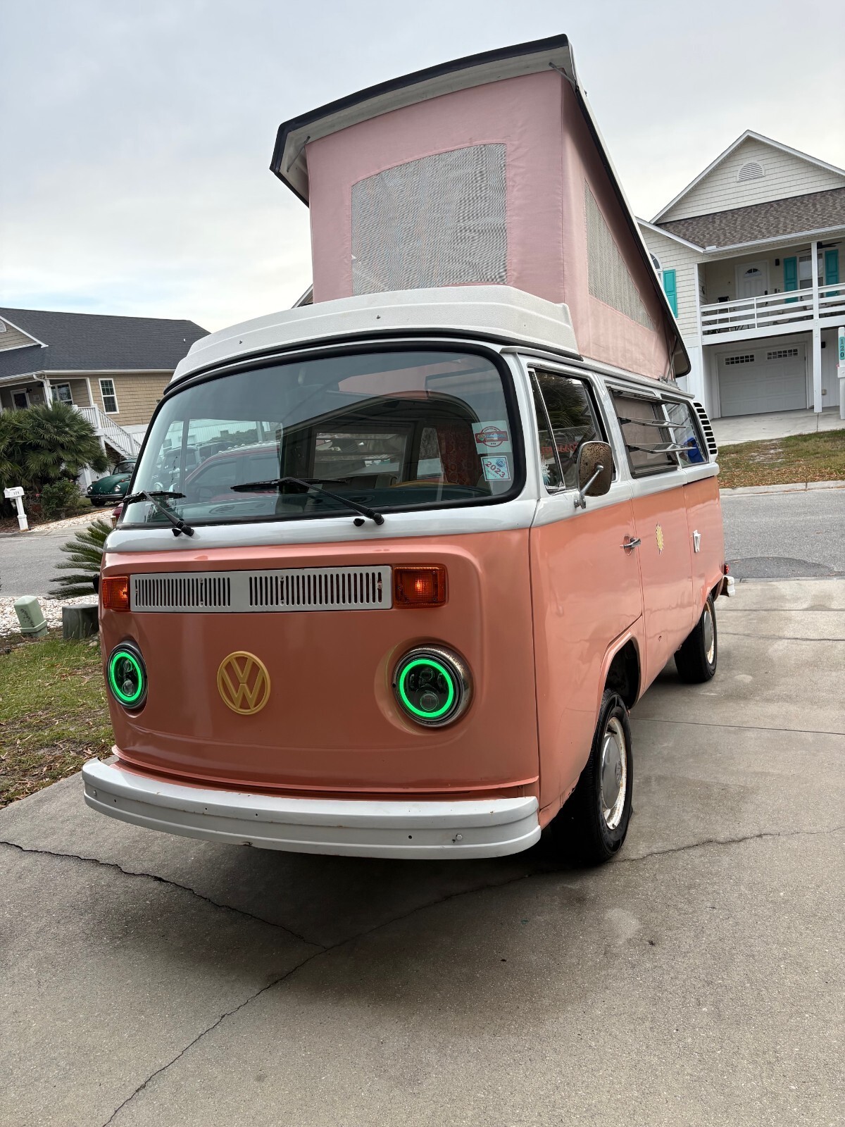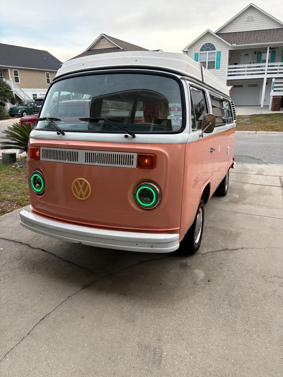 1978 VW Bus Campmobile Westy Type II. Peach exterior with green interior. <1K miles on Replaced engine and transmission Sept 2024 with new EMPI 1600 magnesium long block and rebuilt transmission from RANCHO. I've owned it since 2019. I kept routine maintenance, I.e oil change every year or thousand miles by a certified VW mechanic. Log as follows: