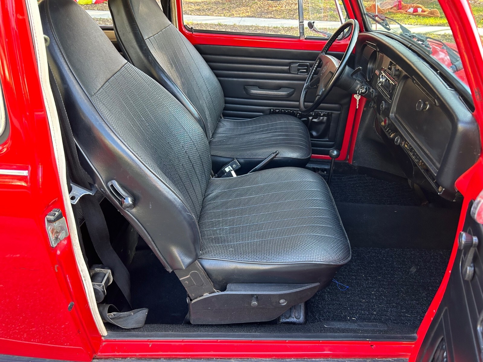 1973 VOLKSWAGEN BEETLE CLASSIC ABSOLUTELY GORGEOUS EXCELLENT CONDITION INSIDE AND OUT. THIS IS ONE EXCEPTIONAL CAR. VERY METICULOUSLY OWNED CAR. ALWAYS GARAGED AND HAD THE BEST OF CARE BEAUTIFUL COLOR COMBINATION BRIGHT RED WITH BLACK INTERIOR WHAT A BEAUTY ! This is just a car you have to see this car is very nice and very, very clean. The body and paint are in excellent condition. The paint has a great glossy shine and shows very nice. All the trim is in great condition. The interior is very clean and very nice. The engine compartment is very clean. The underneath is clean. It has the chrome wheels and the tires are in excellent condition with lots of tread on them. This Beetle starts right up and is a blast to drive a pure pleasure to drive and very reliable mechanically sound car previous owner kept up on everything. It has new air cleaner and new air filter. New hood handle seals new back pop out windows new pop out windowsills new front door panels new pressure plate clutch disc and release bearing rear main seal new motor mounts clutch return spring intake manifold gaskets. New rear gas, shocks, new tail pipes and clamps drained and refill transmission fluid change the rip shocks new headlight switch new antique manifold, new fuel line and new vacuum line. The carburetor was rebuild. This car has been very well maintained and will be a very reliable car.it is so much fun. This would make a great car to take to car shows and show off or a great weekend fun Car or you could even use it as a daily drive, Cars like this are hard to find in this condition It has a great radio in it, and it is Bluetooth accessible. Even the horn still works in this car. This car is available to view and inspect at any time before purchase like all classic cars. This car is sold as is no warranty. This is sure a beauty. I have a great buy it now price on this car. It is priced to sell and best of all it will be delivered Free of charge. Yes! FREE DELIVERY ! I will keep you informed throughout the whole transaction until the car is delivered in your driveway. There is a $500 nonrefundable deposit at time of purchase This ca is ready for its new home.