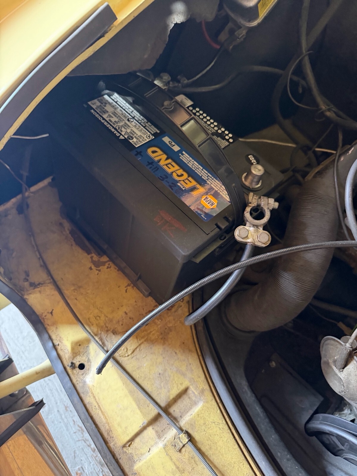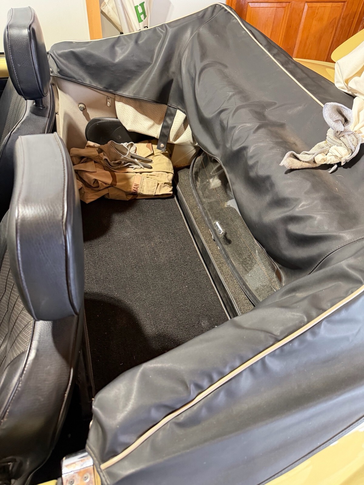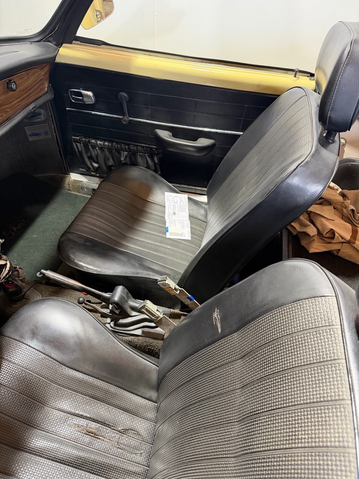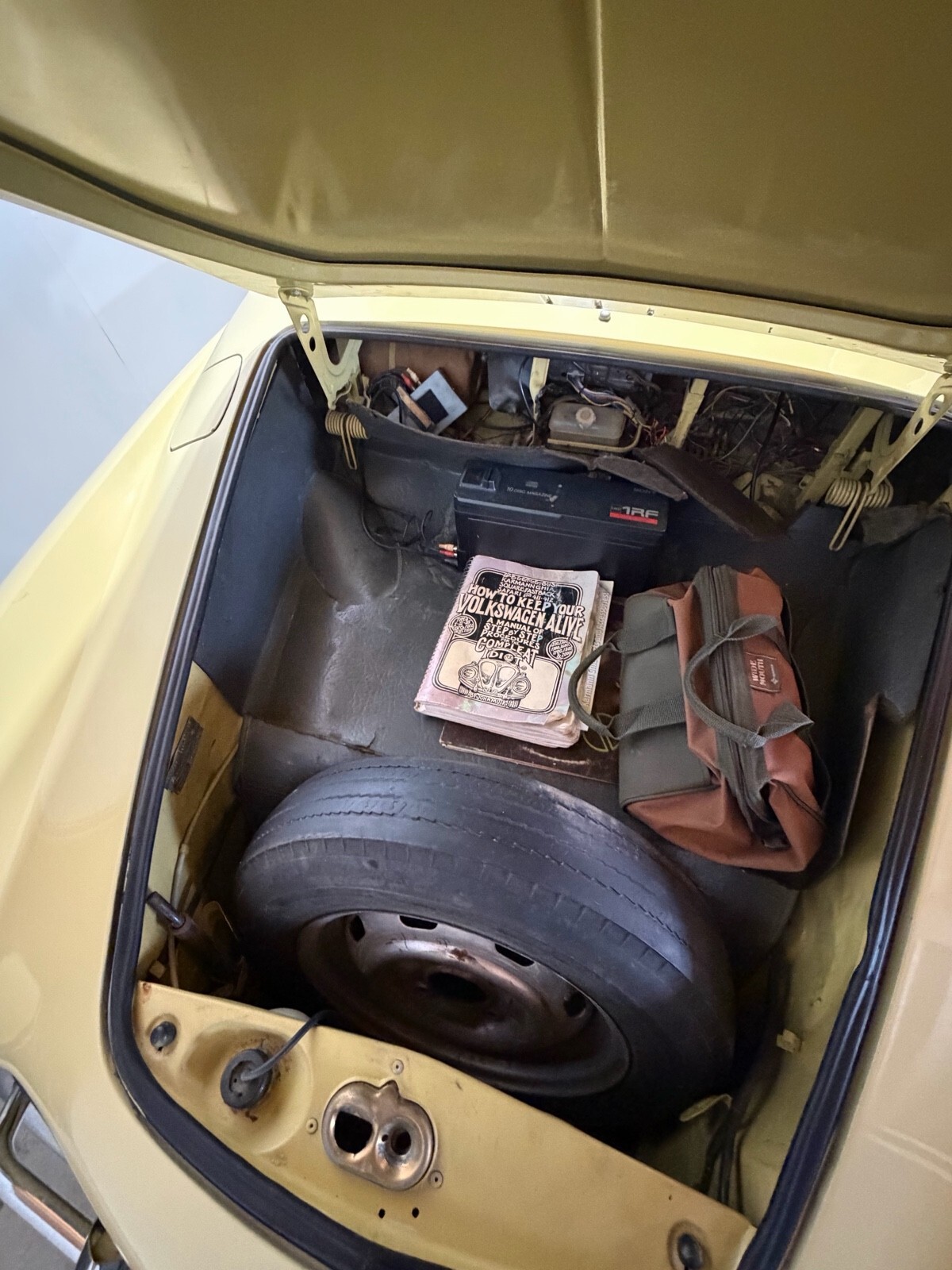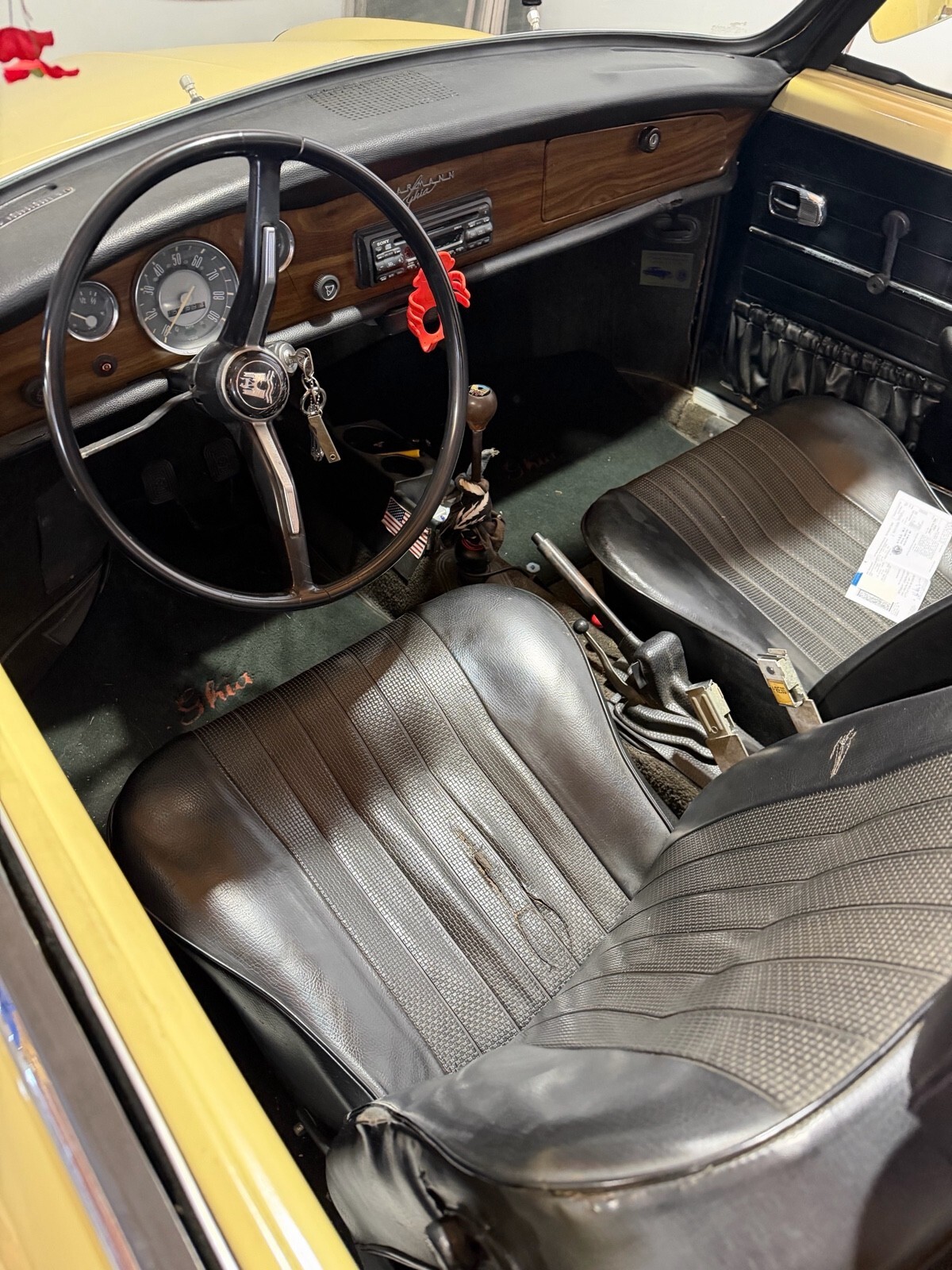 A 1970 Volkswagen Karmann Ghia in hippie yellow. Had it garaged over 20 years and the vehicle is very drivable and not hardly driven. Maybe I’ve driven it 250 miles in 20 years… 99% rust free, a gem, 95% original. Repainted original color. Ragtop super. Interior nice. Replaced radio and installed 2 speakers. Mileage unsure but original engine. All numbers match. Super duper man! One solid machine ready for the road! Nicest on the East Coast I bet! As close as a barn find! A few minor things-Driver side window doesn’t go up but I think I have all the parts. Gas gauge, mileage gauge, fuel gauge broken.