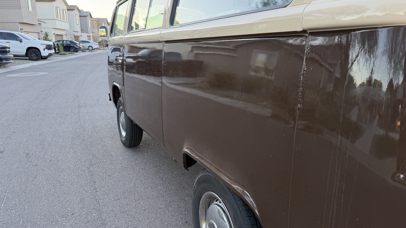 Purchased just over 5 years ago. Senior, adult, female non-smoker owned. It was repainted the original colors prior to purchase and looks great! Interior is in great shape with no rips, tears, or funky smells. Starts, runs, and drives great! Tires are newer as well as the battery.