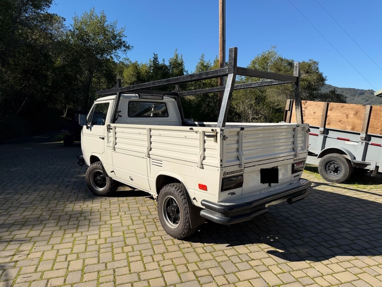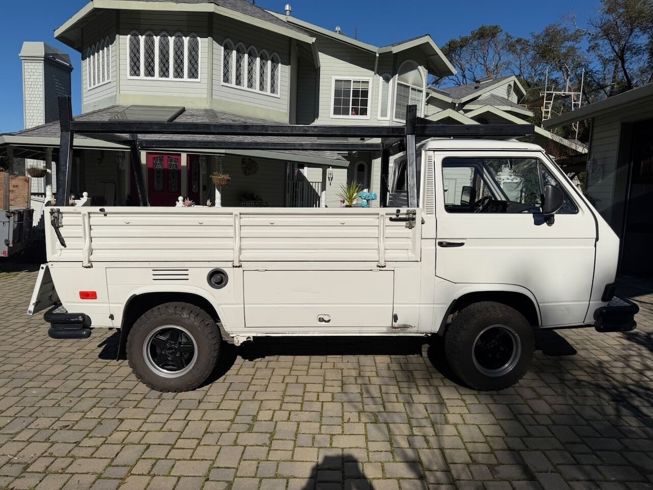 This is a rare 1986 Volkswagen Single-Cab Transporter Pickup. Not many were made in this configuration. It was a highly-innovative vehicle, with sides that come down for easy access to loads, as pictured. It runs great and is in excellent condition, having been well-loved and well-taken care of by the original owner. It has spent most of its life in a garage with moderate California weather. It has a 5-speed manual transmission plus a crawl gear.