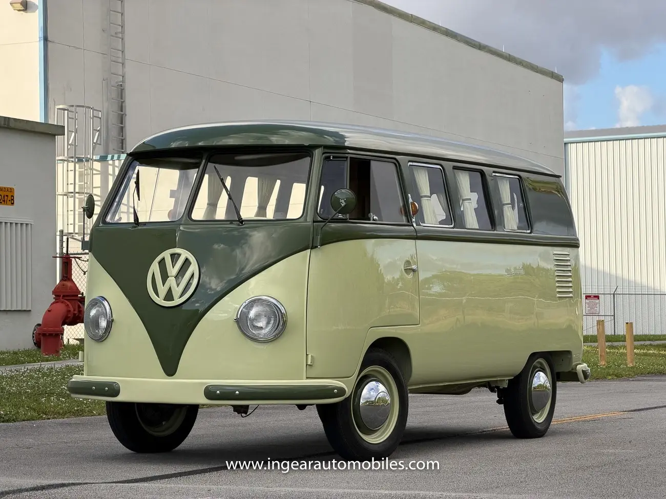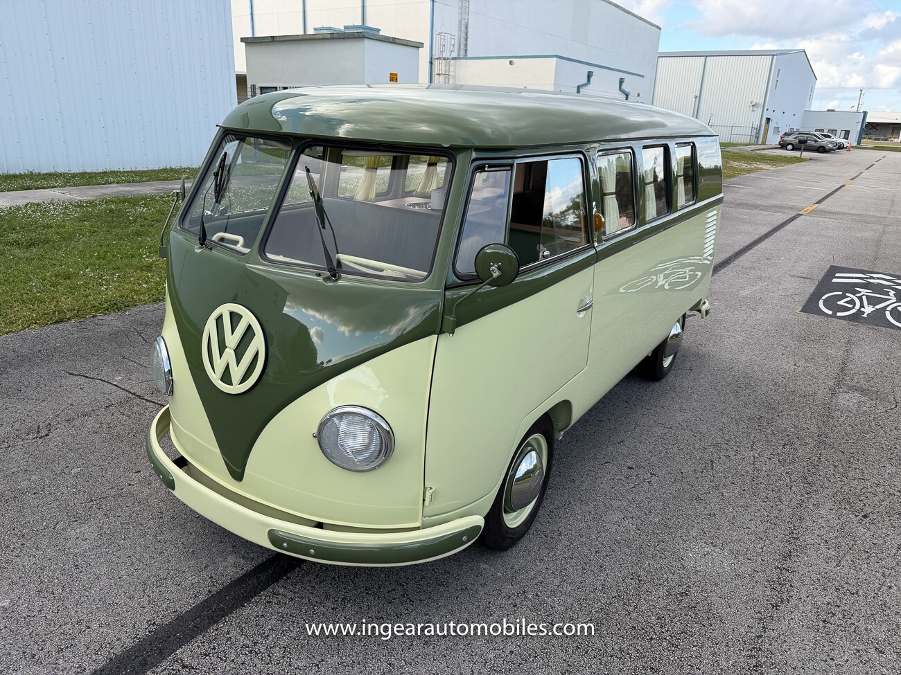 Call me 305-542-5662. Up for sale is a restored early-model 1963 split window Volkswagen Bus Deluxe microbus! Small tailight model! Side chrome turn signals blinker option! All restored! Finished in a very rare two tone color green & off white. Full build out interior with table, and fold down seat. Matching Curtain Set! Get tons of attention.