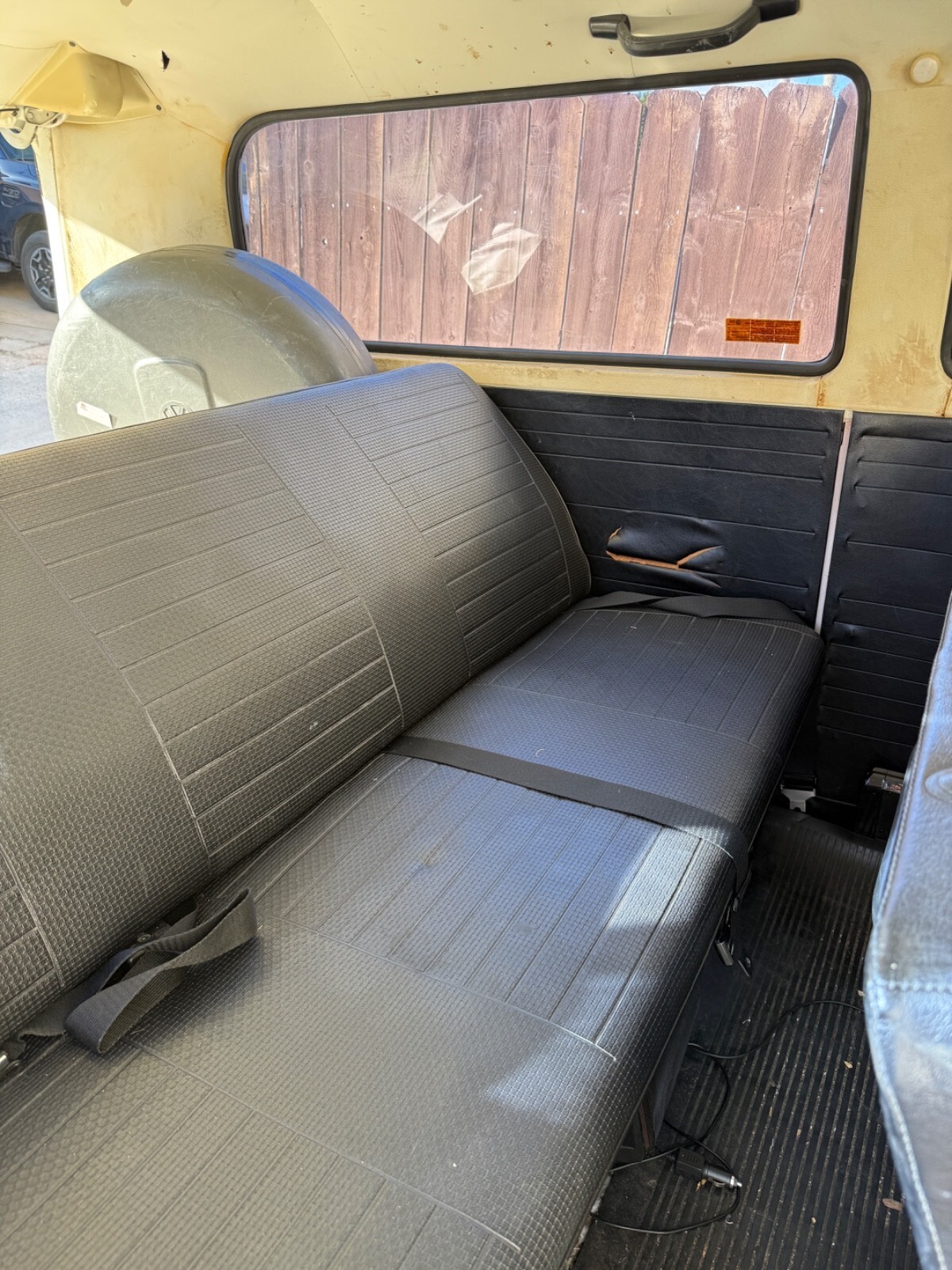 The interior is practical and set up for real use, not just display. The fold-down rear seat makes it easy to camp in, and the upgraded stereo makes long drives much more enjoyable. This bus has been driven, camped in, and appreciated .